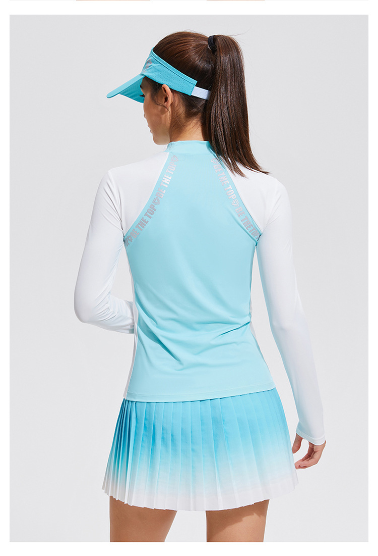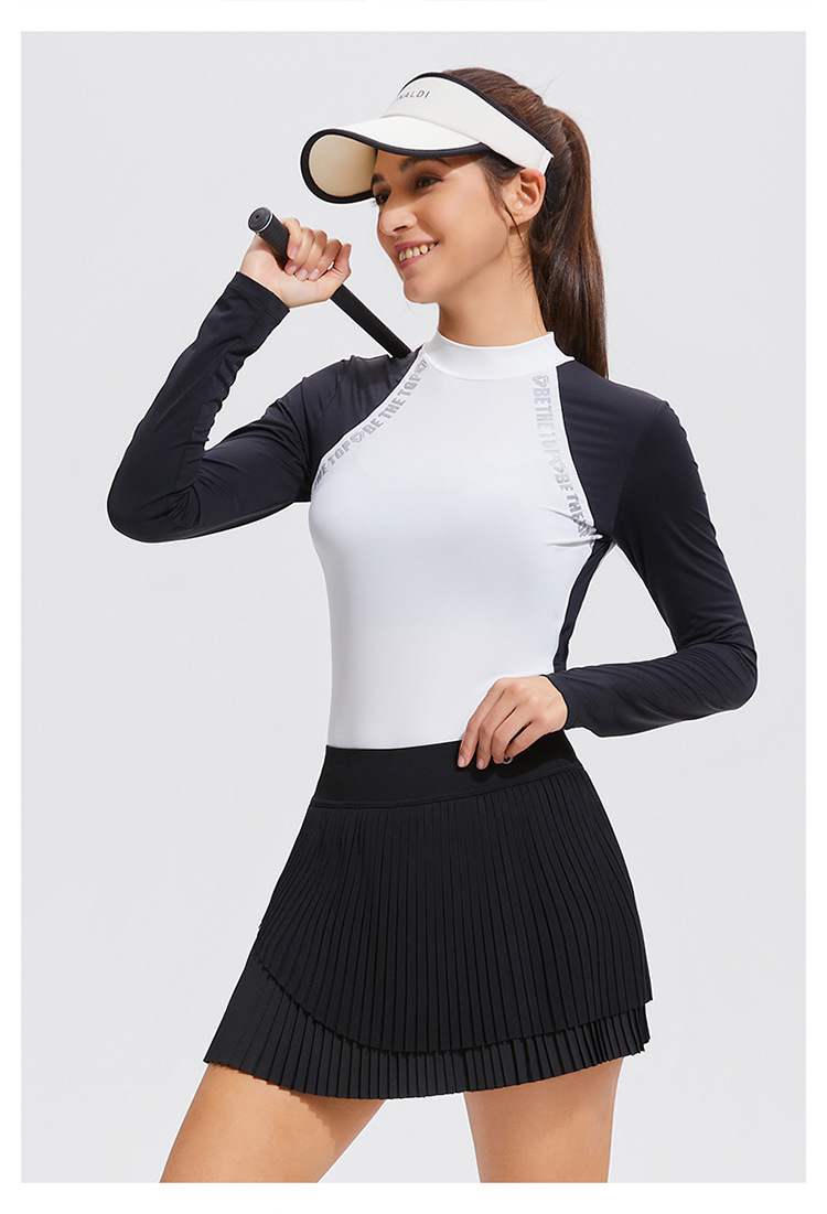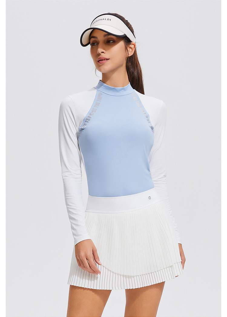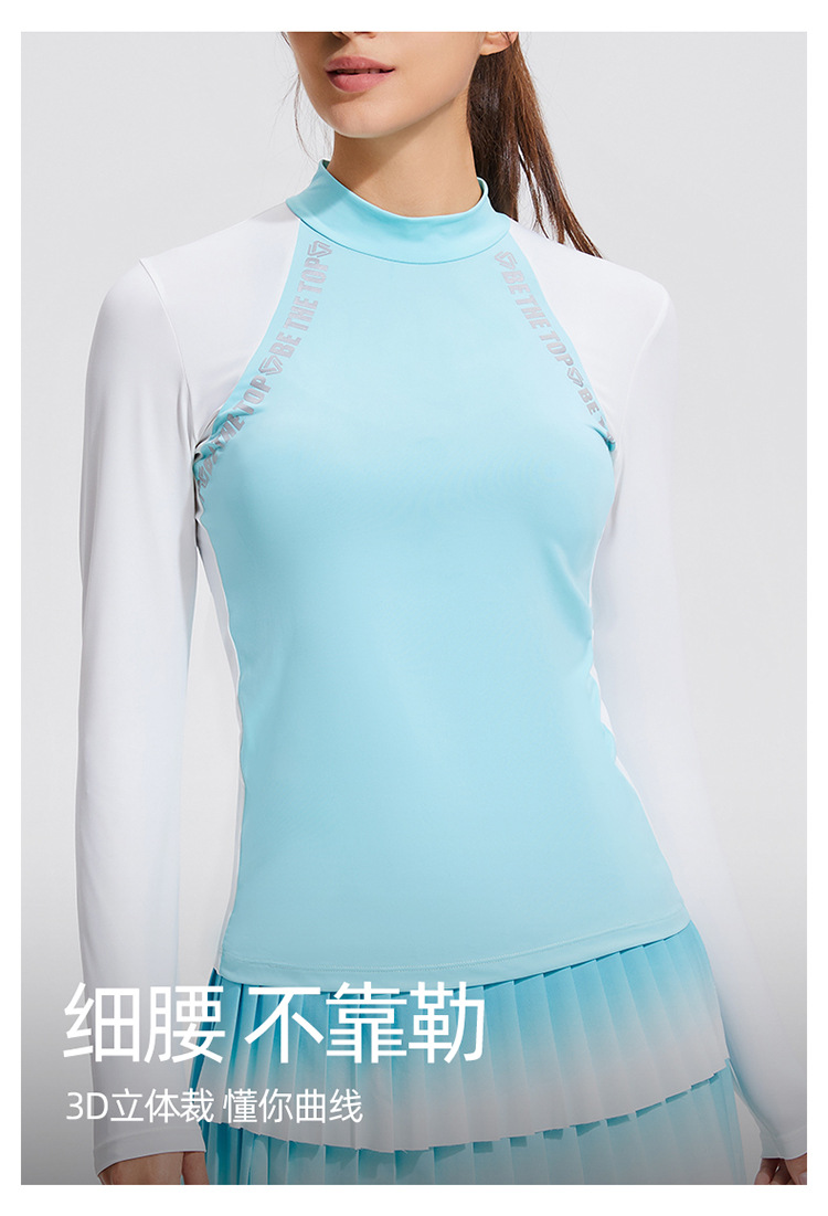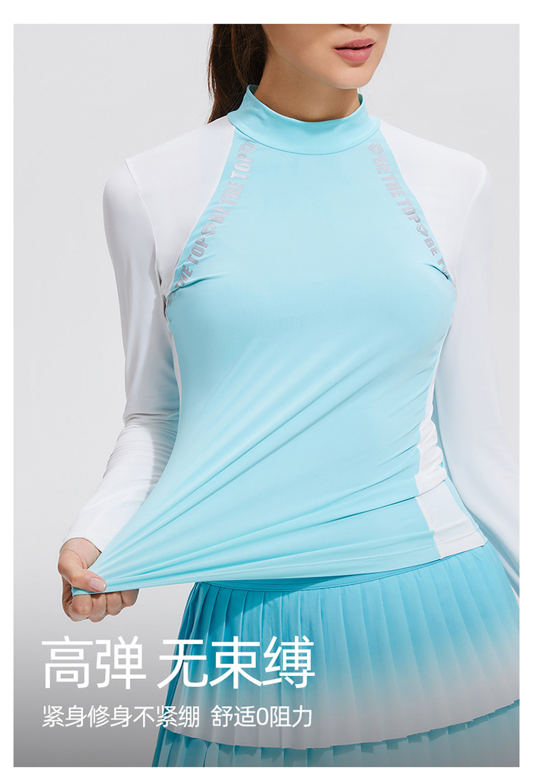 Temperamento camiseta deportiva de golf de cuello medio alto de mangas largas de tenis delgado running elástico color matching chaqueta al aire libre