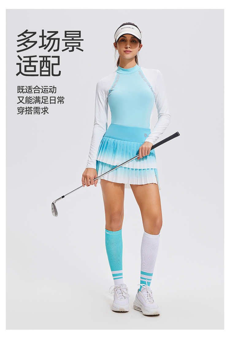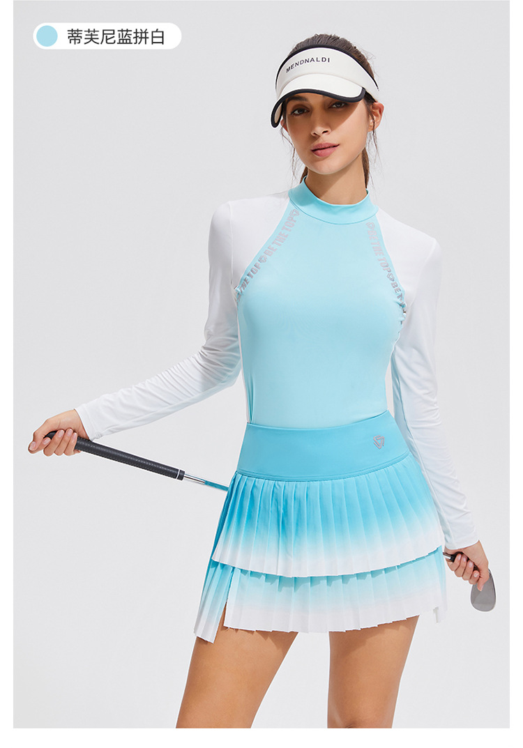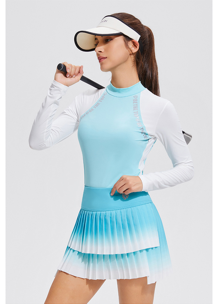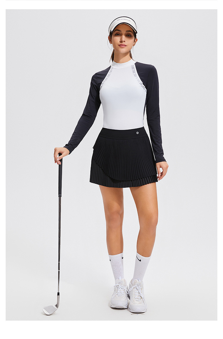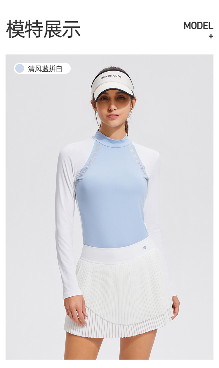Temperamento camiseta deportiva de golf de cuello medio alto de mangas largas de tenis delgado running elástico color matching chaqueta al aire libre
