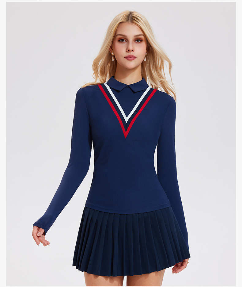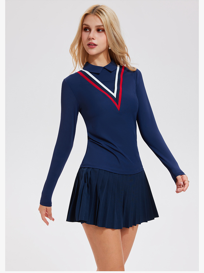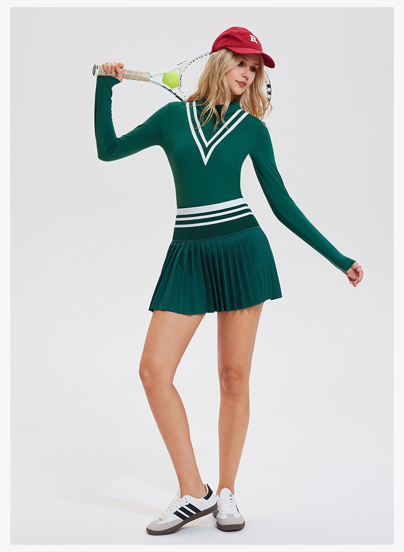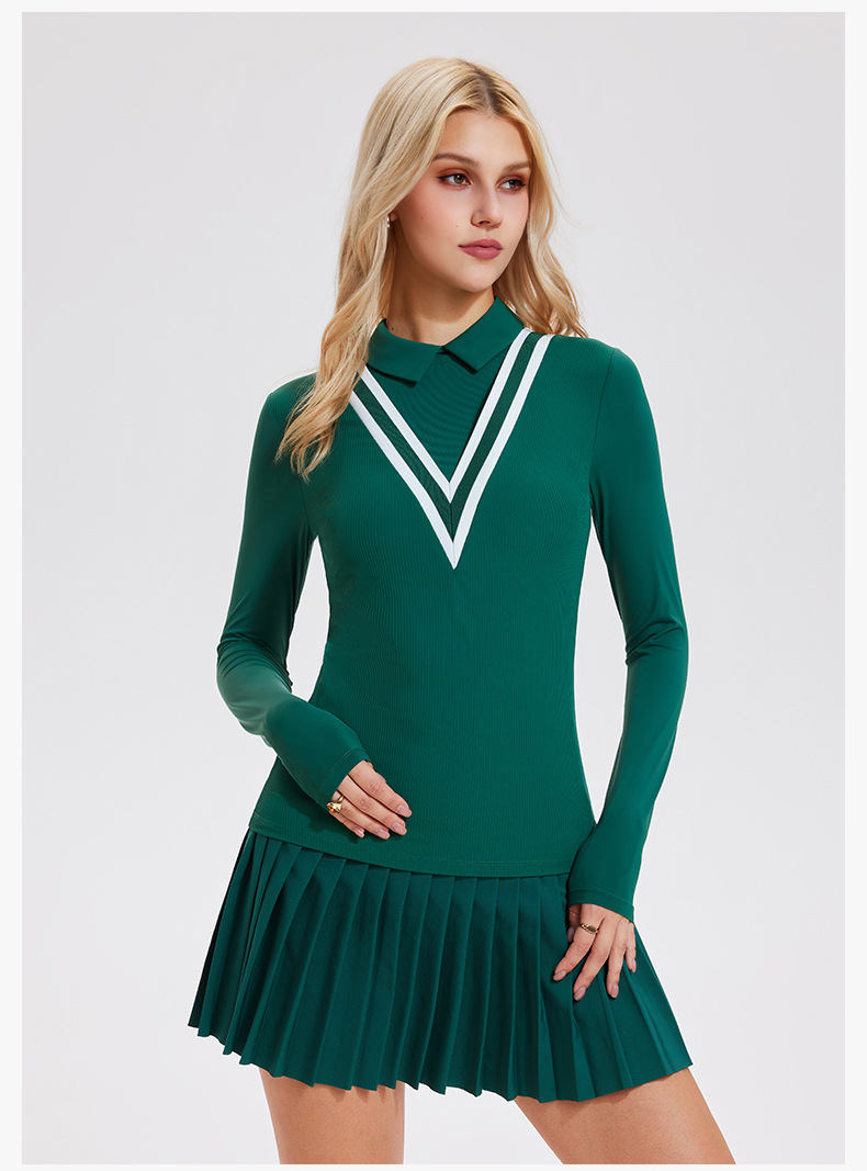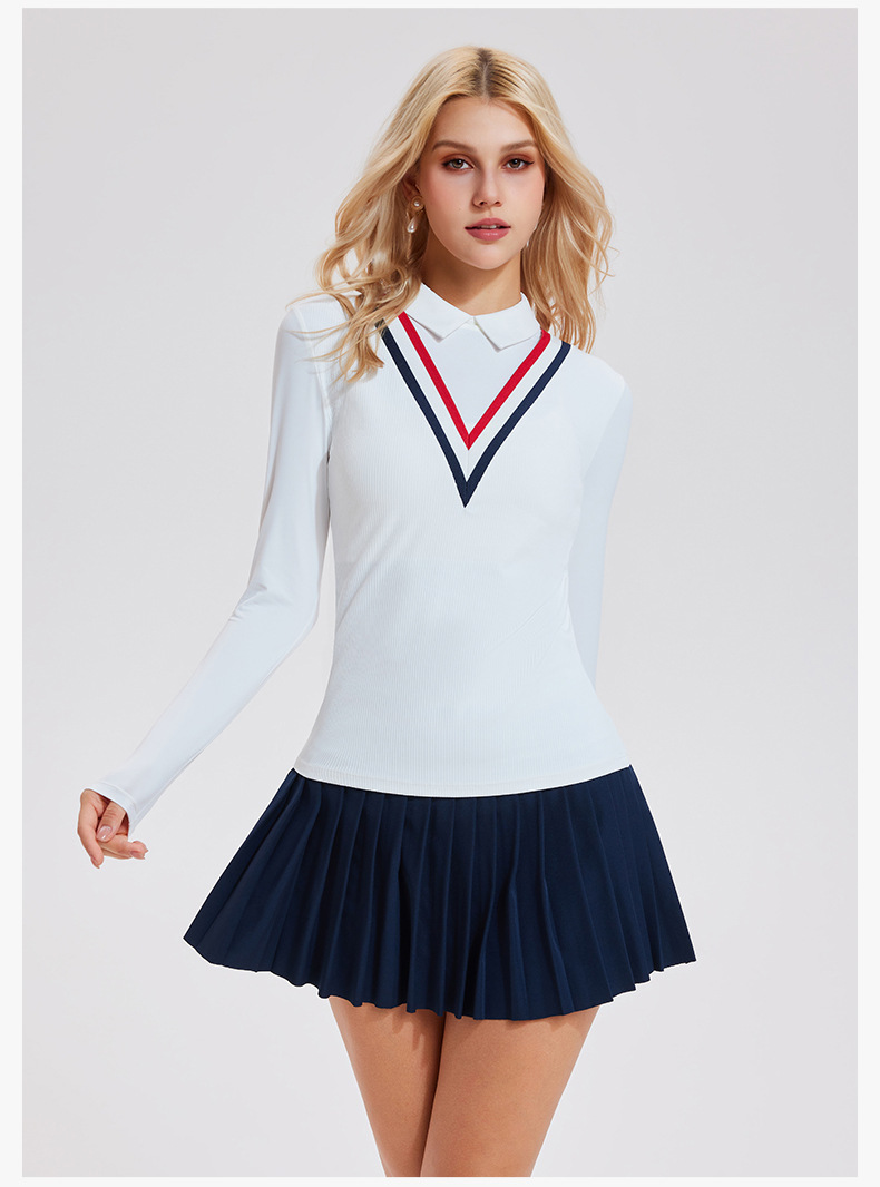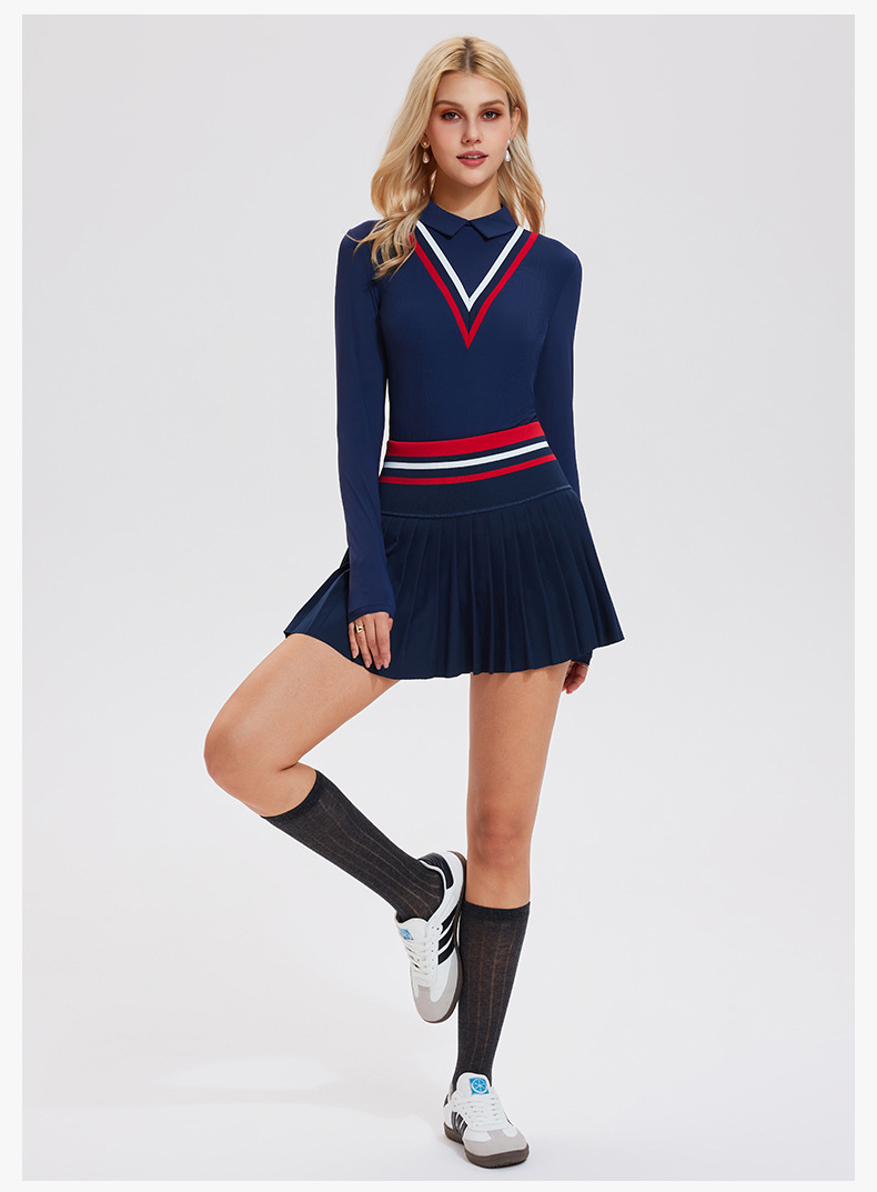 Trajes deportivos de tenis con solapa, mangas largas, falda corta, ejercicio, yoga, golf, tenis de dos piezas.
