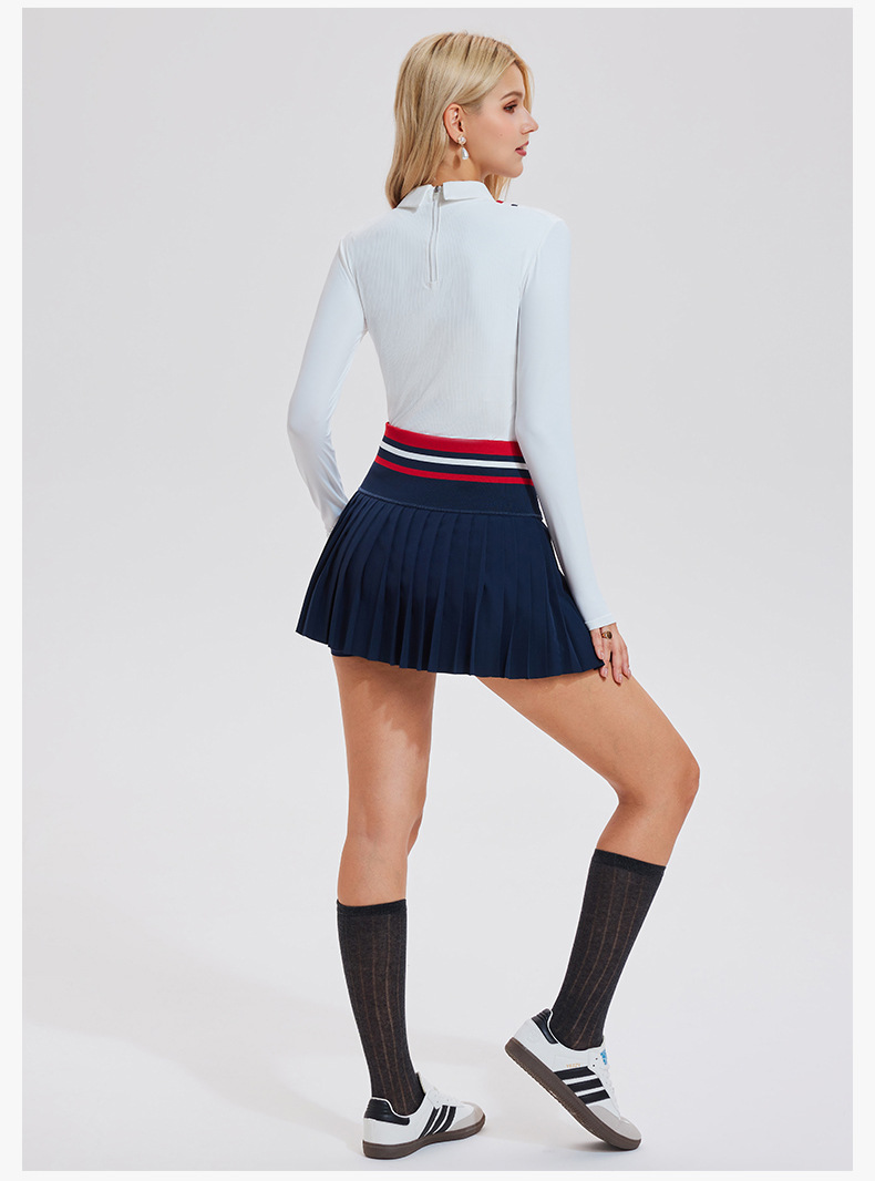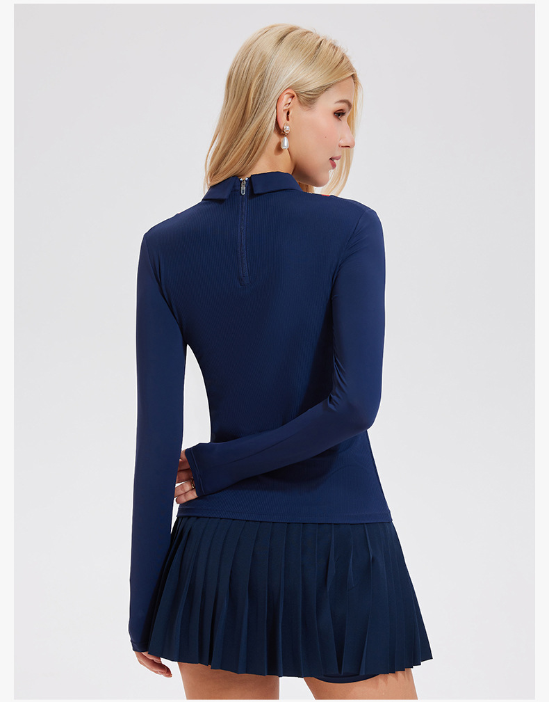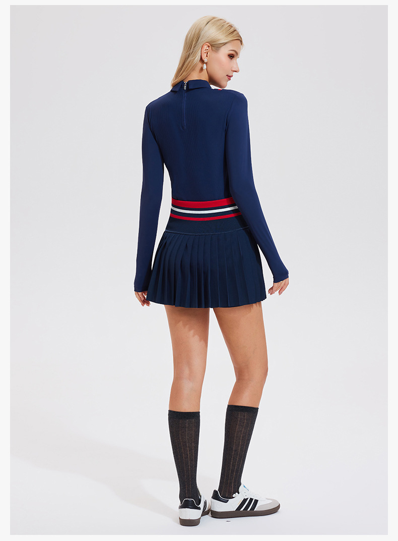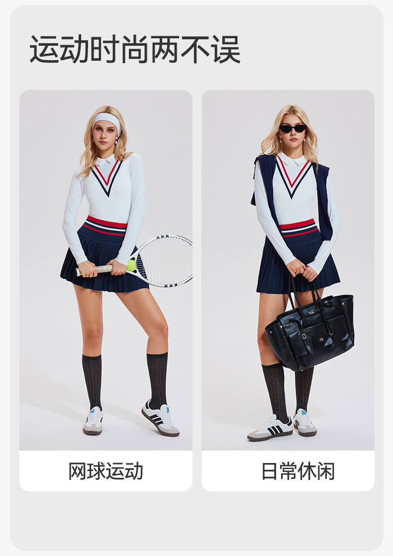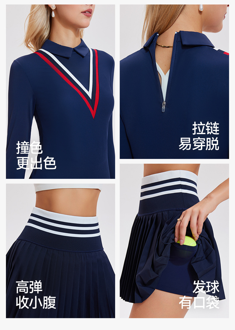 Trajes deportivos de tenis con solapa, mangas largas, falda corta, ejercicio, yoga, golf, tenis de dos piezas.
