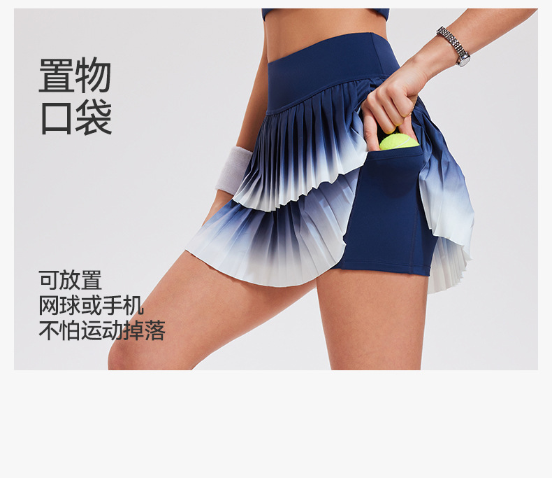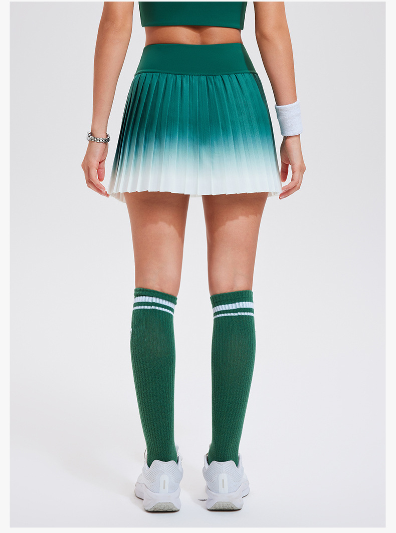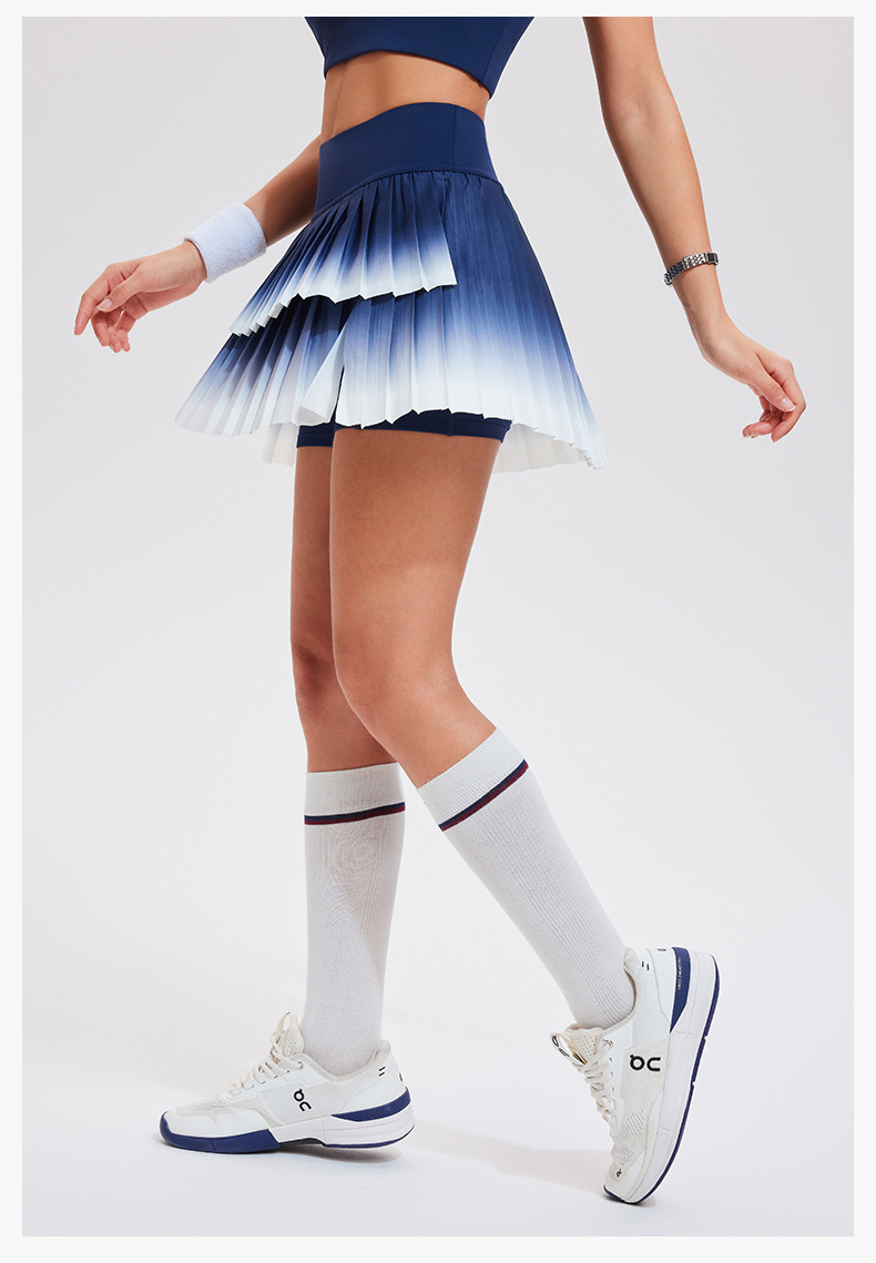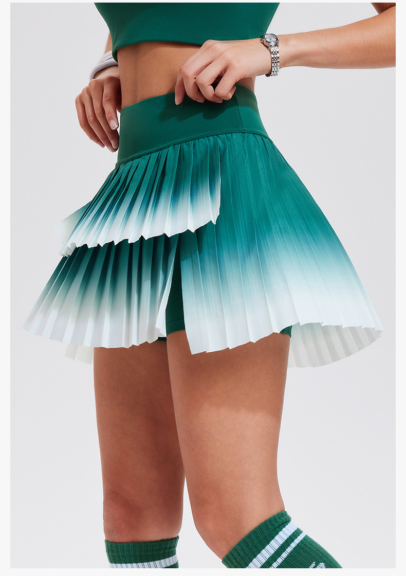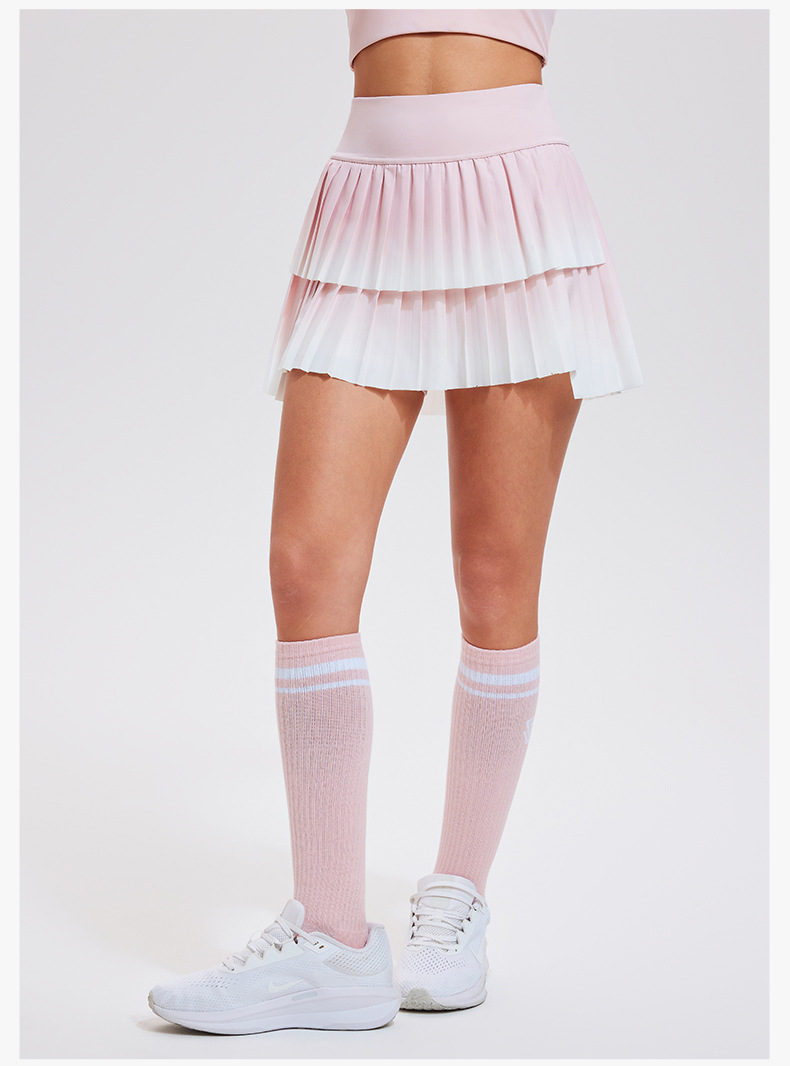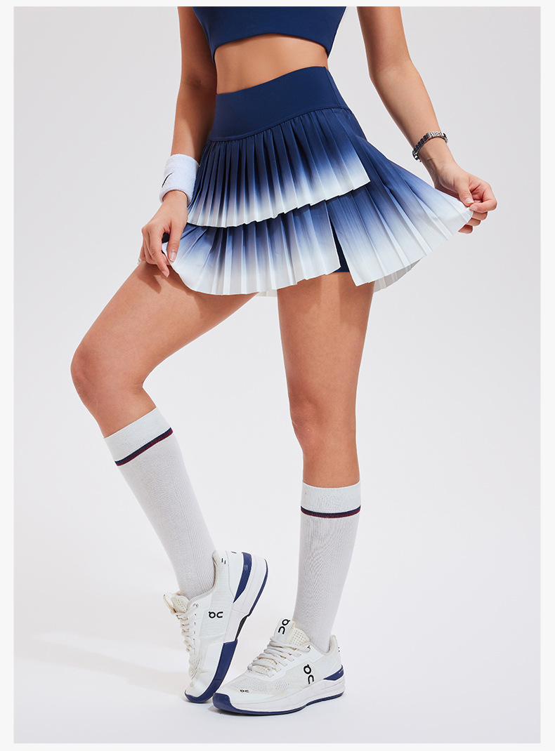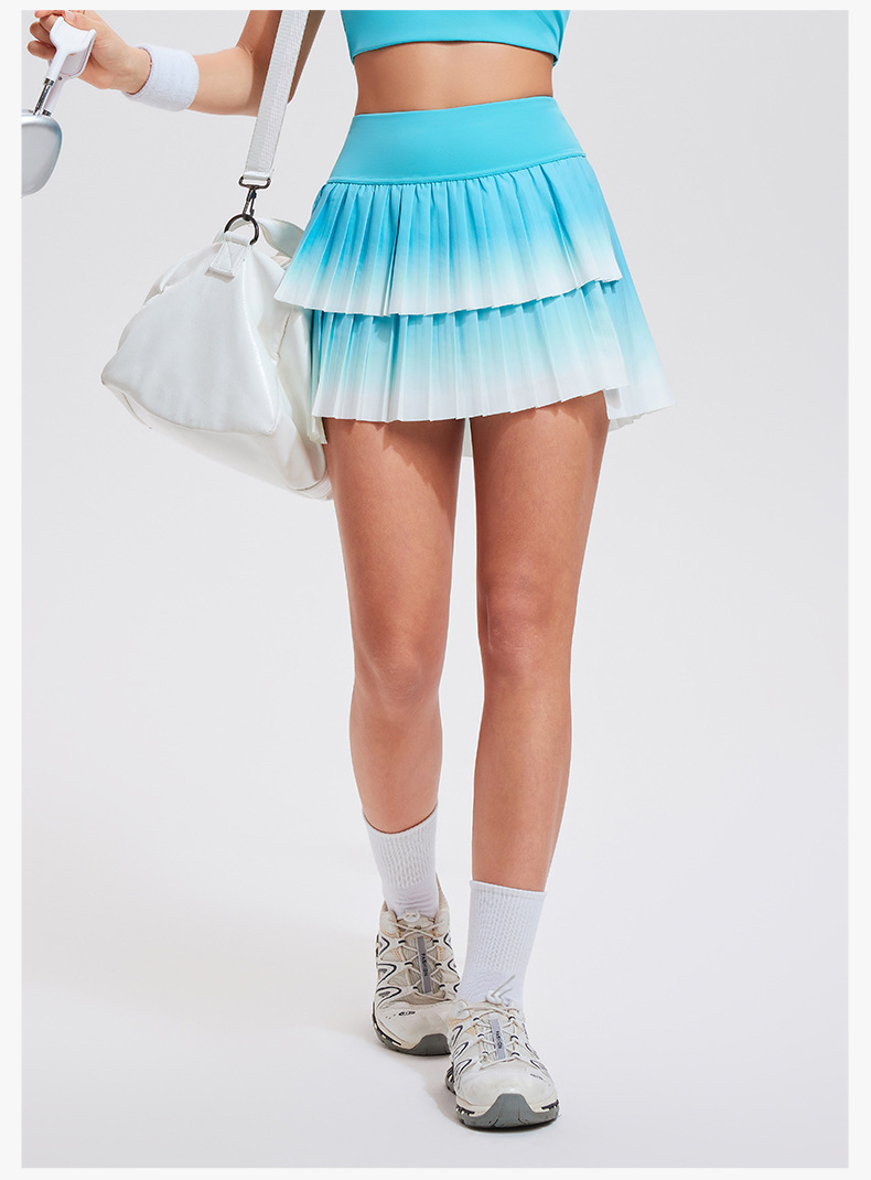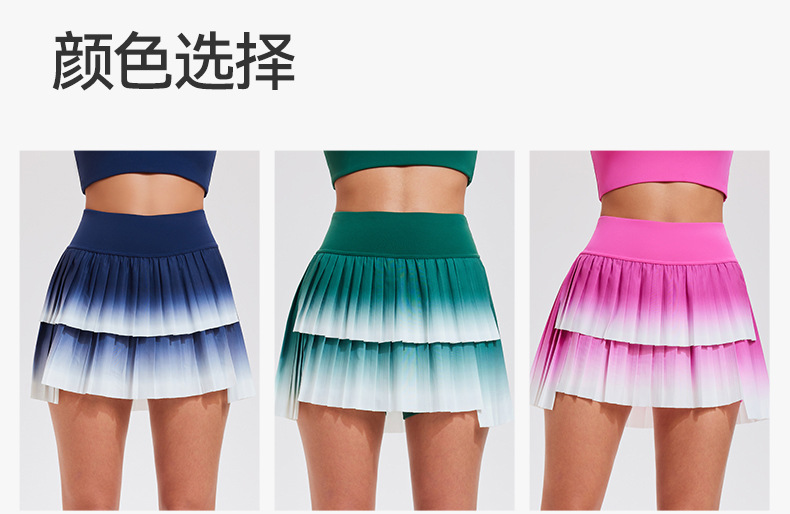 Falda de tenis de color gradiente falda deportiva de dos piezas de velocidad de la luz seca ocio falda corta A falda de fitness para correr