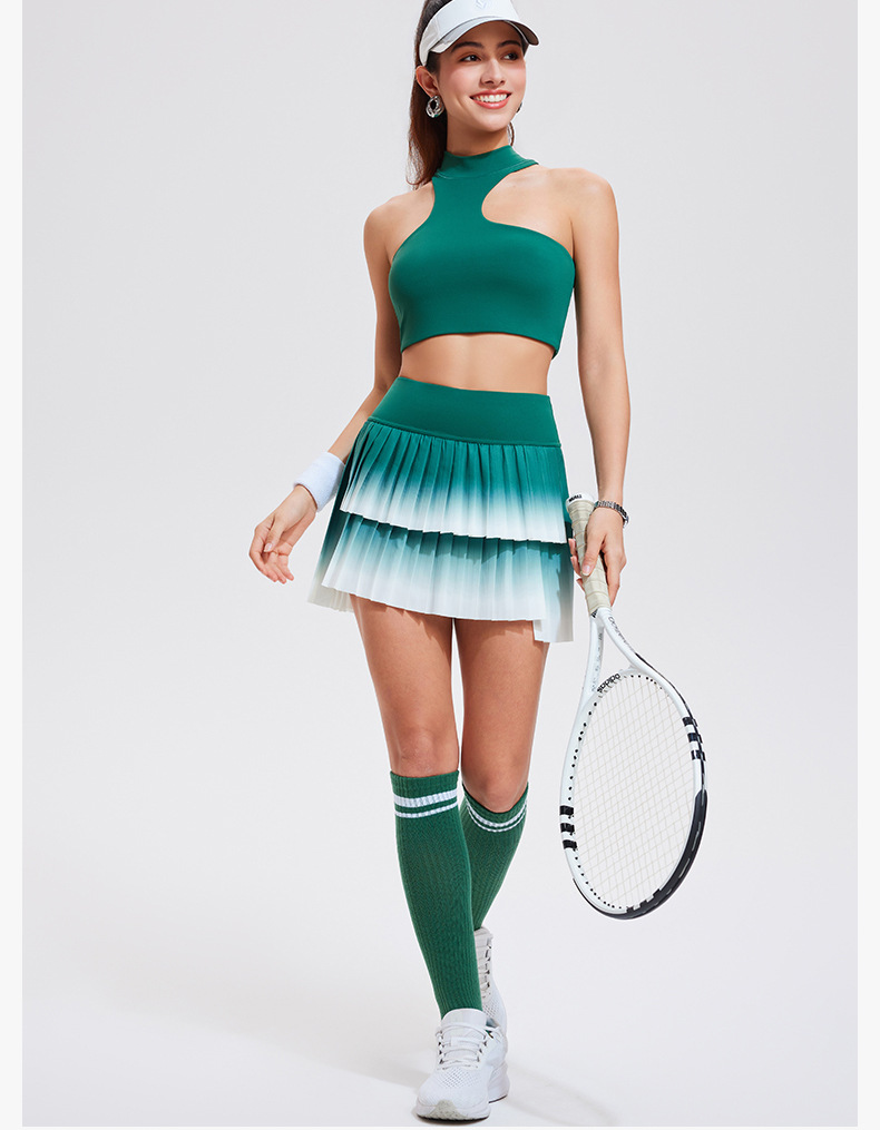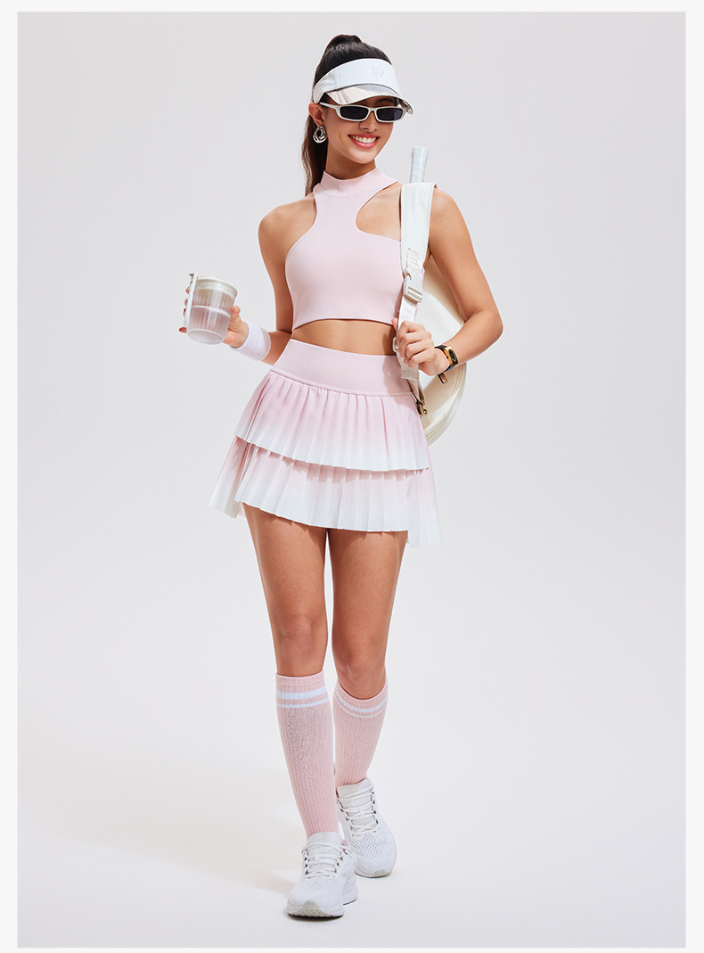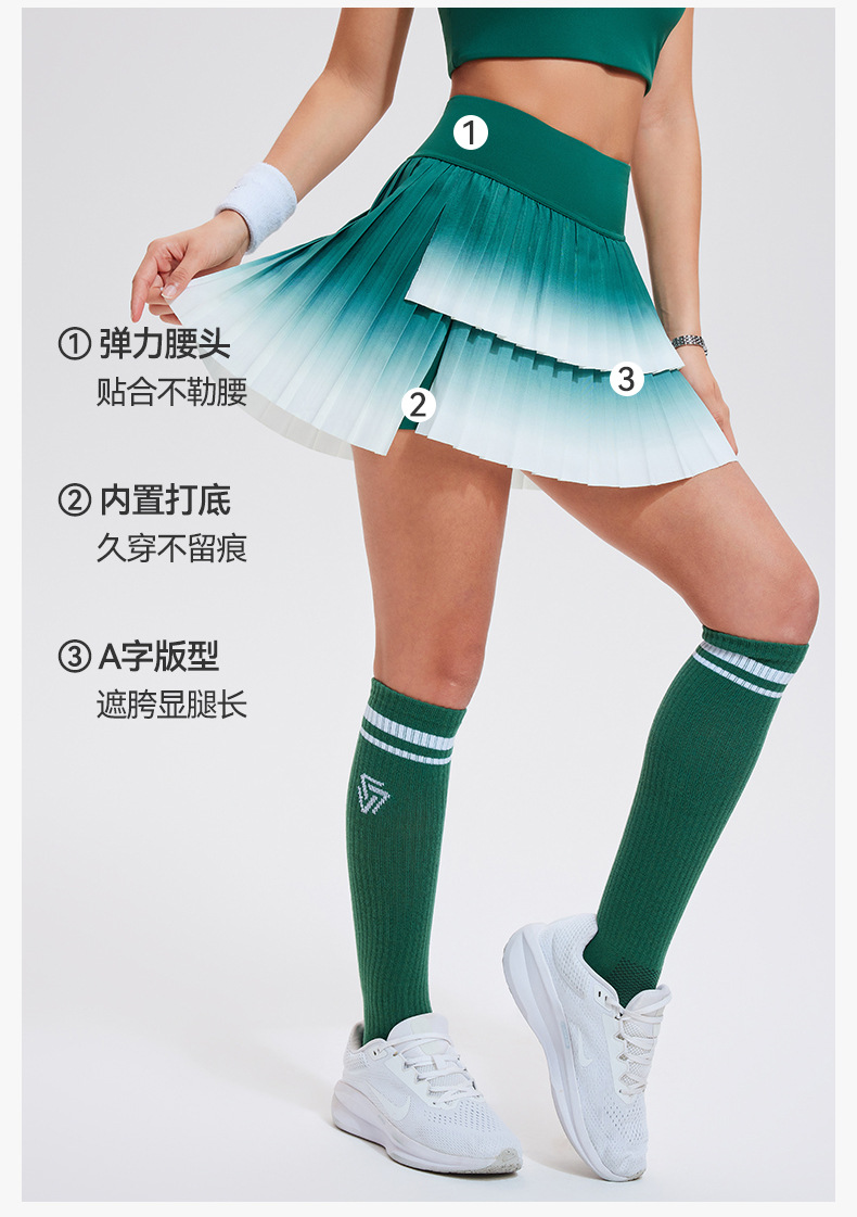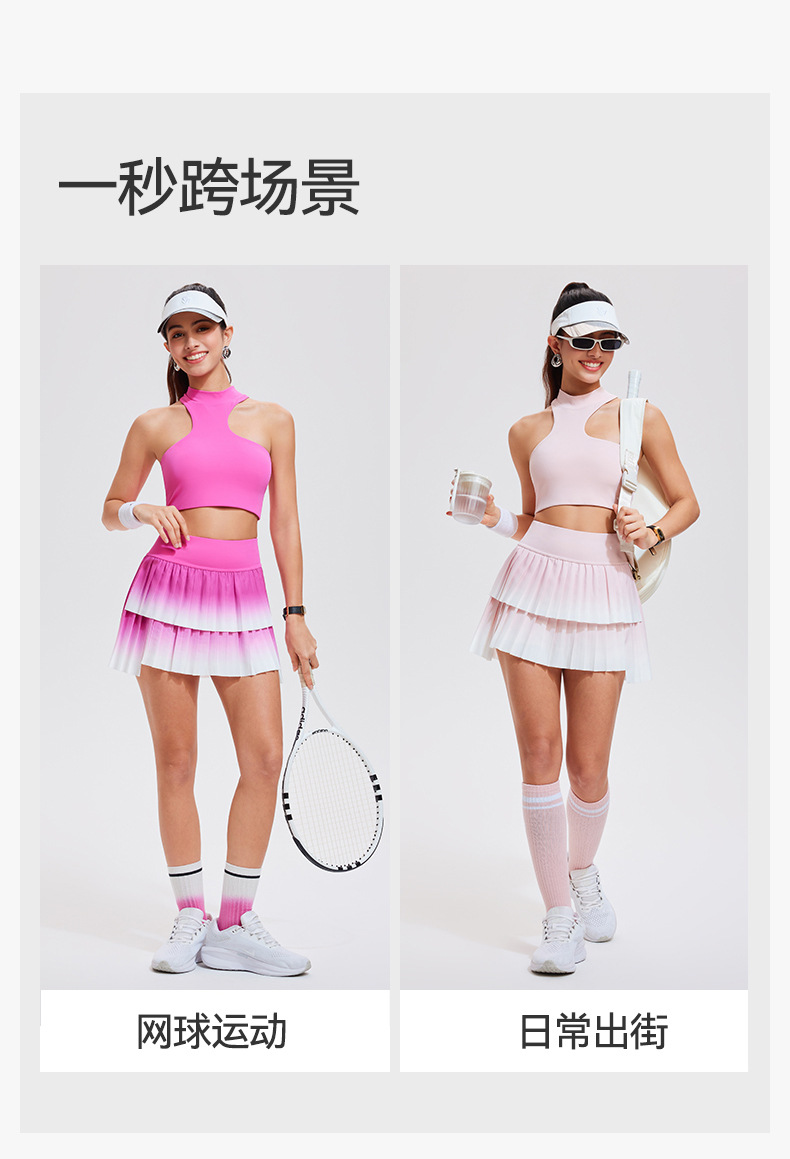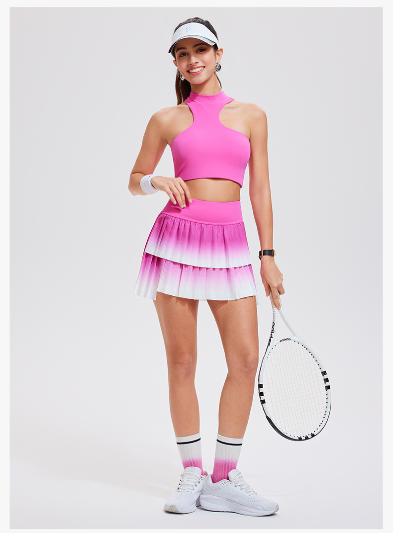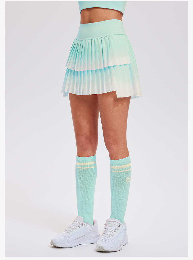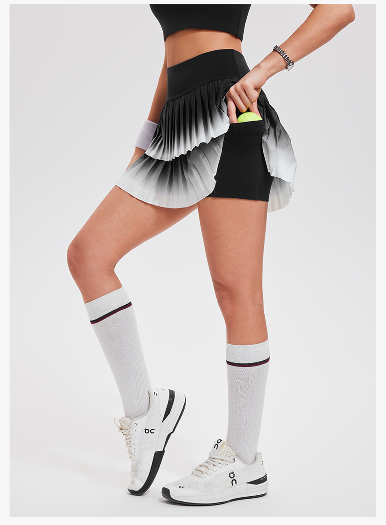 Falda de tenis de color gradiente falda deportiva de dos piezas de velocidad de la luz seca ocio falda corta A falda de fitness para correr