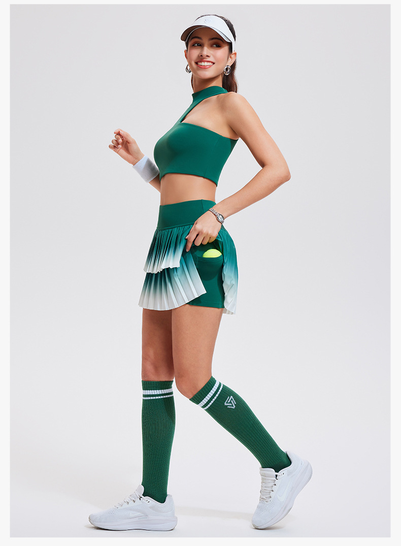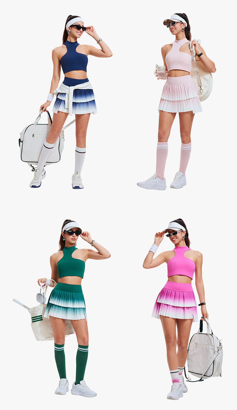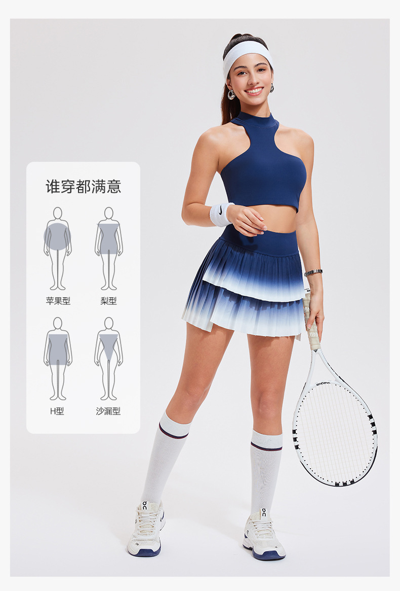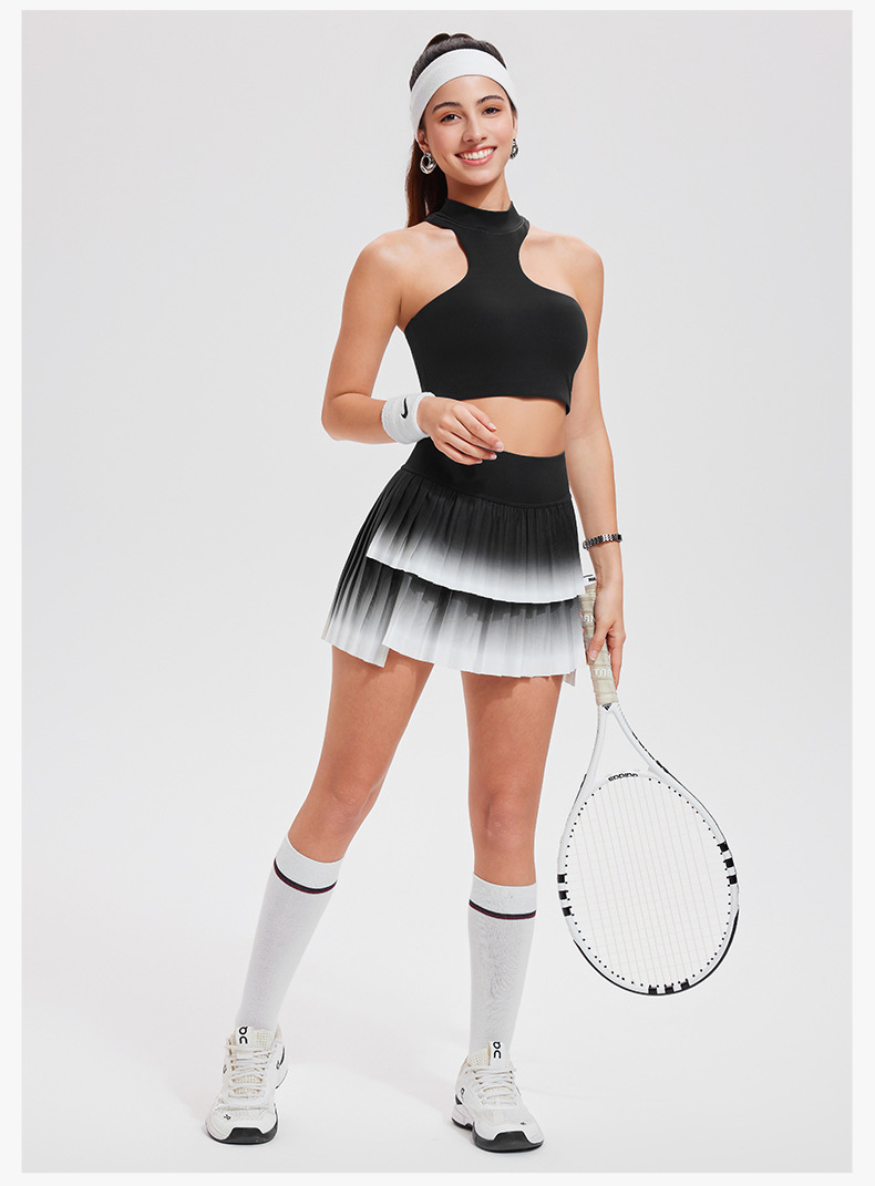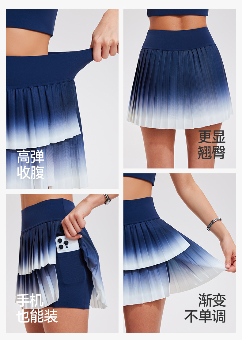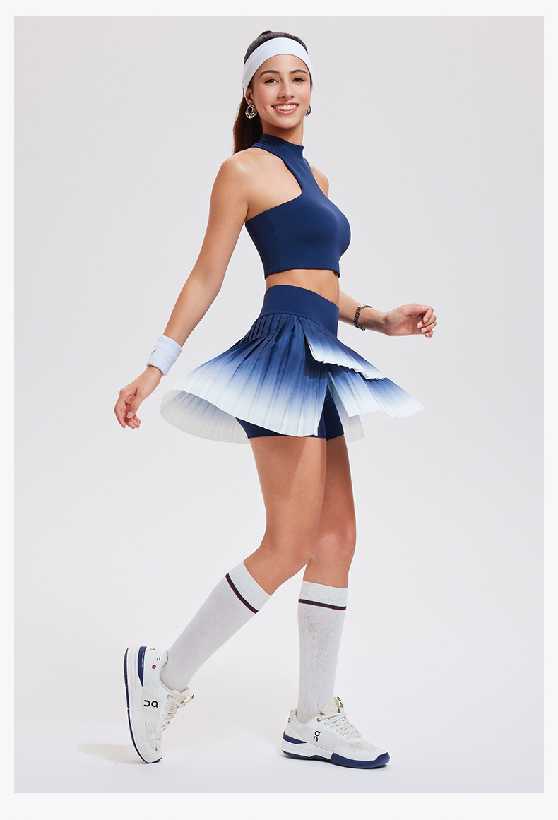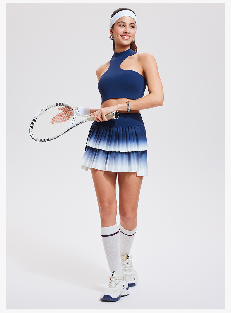 Falda de tenis de color gradiente falda deportiva de dos piezas de velocidad de la luz seca ocio falda corta A falda de fitness para correr