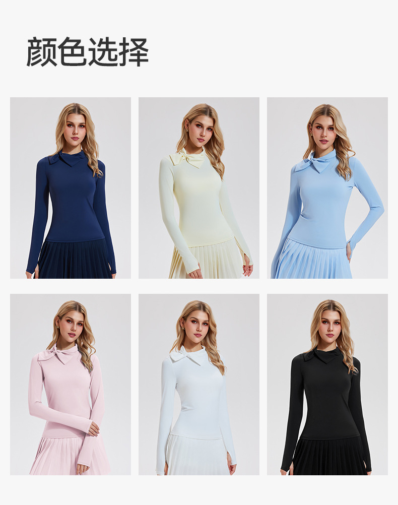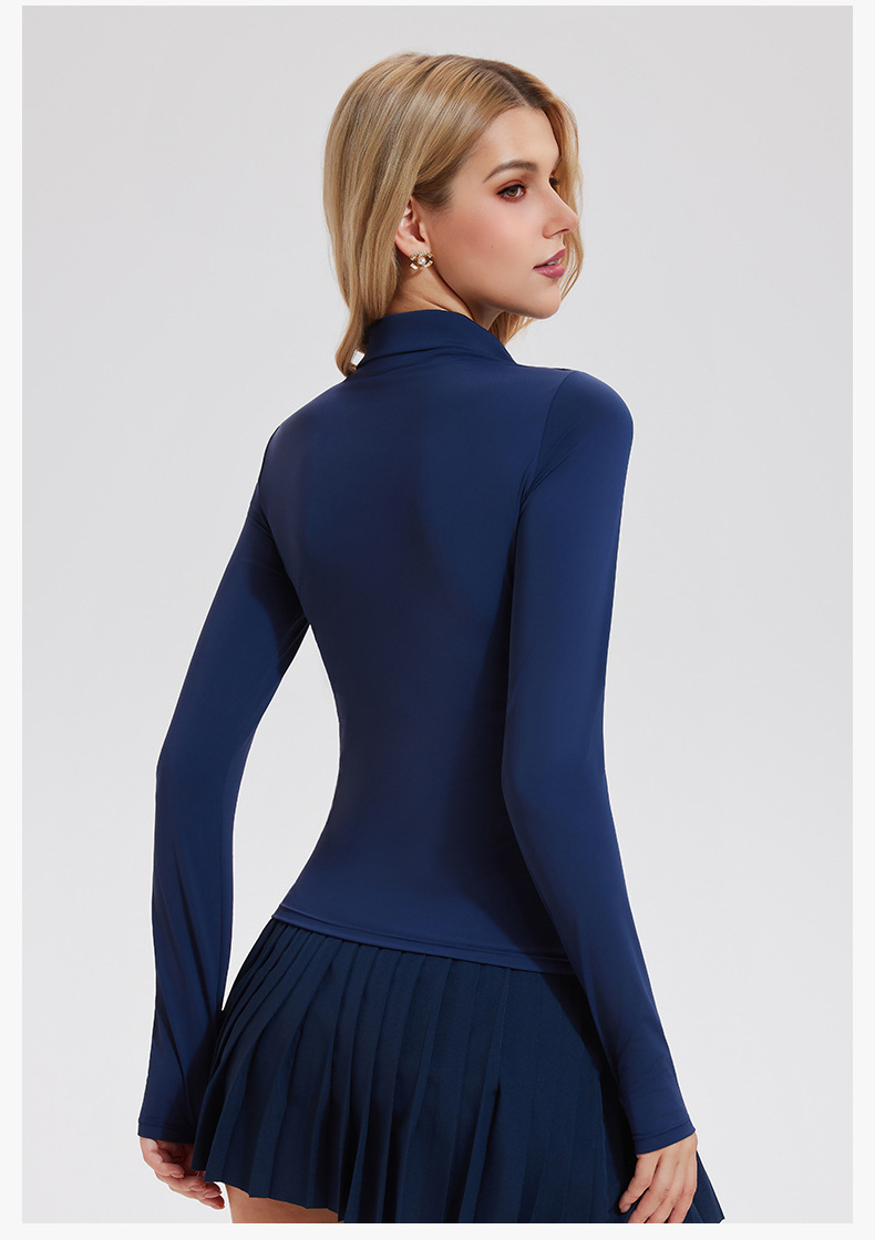 T-shirt de cuello alto y manga larga, camiseta deportiva de mujer, camiseta de golf delgada, camiseta de base transpirable