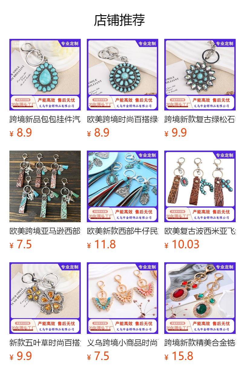Europa y Estados Unidos transfronterizos occidentales retro bohemia viento turquesa pequeños regalos bolsos de automóviles colgantes de llaves personalizados