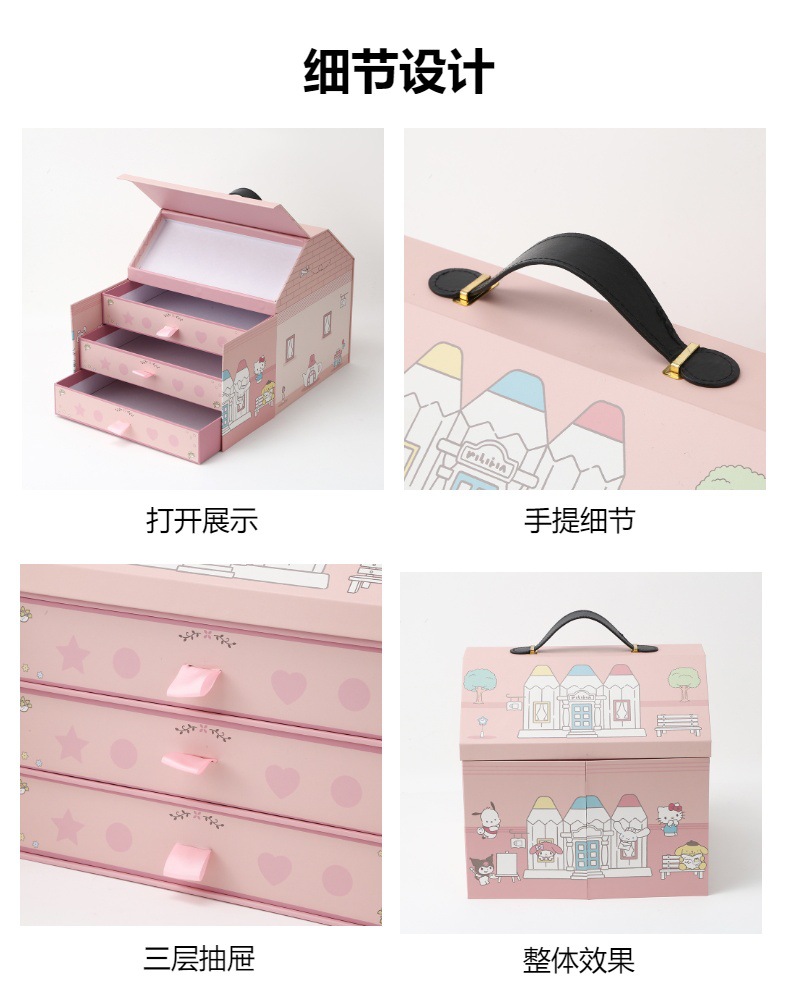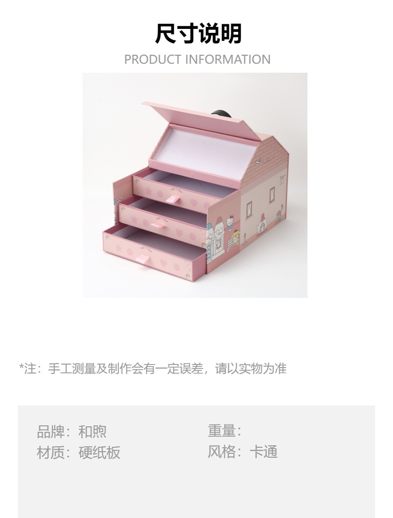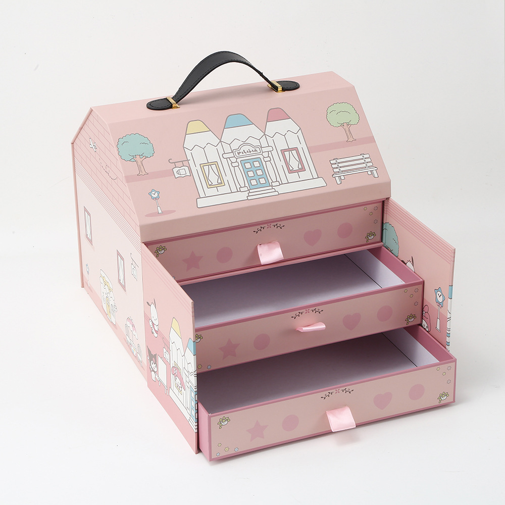 Caja de regalo de doble puerta de dibujos animados Caja de almacenamiento de joyas de chicas Caja de embalaje de regalos Caja de transporte de tres capas Caja al por mayor