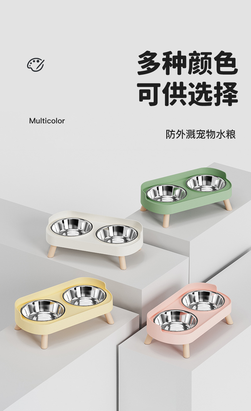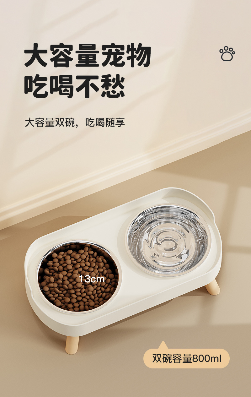 Comedero y bebedero de acero inoxidable para perros y gatos, doble tazón para perros, tazón antideslizante para gatos, tazón elevado para alimentación lenta que protege el cuello, comedero y bebedero para perros dos en uno.
