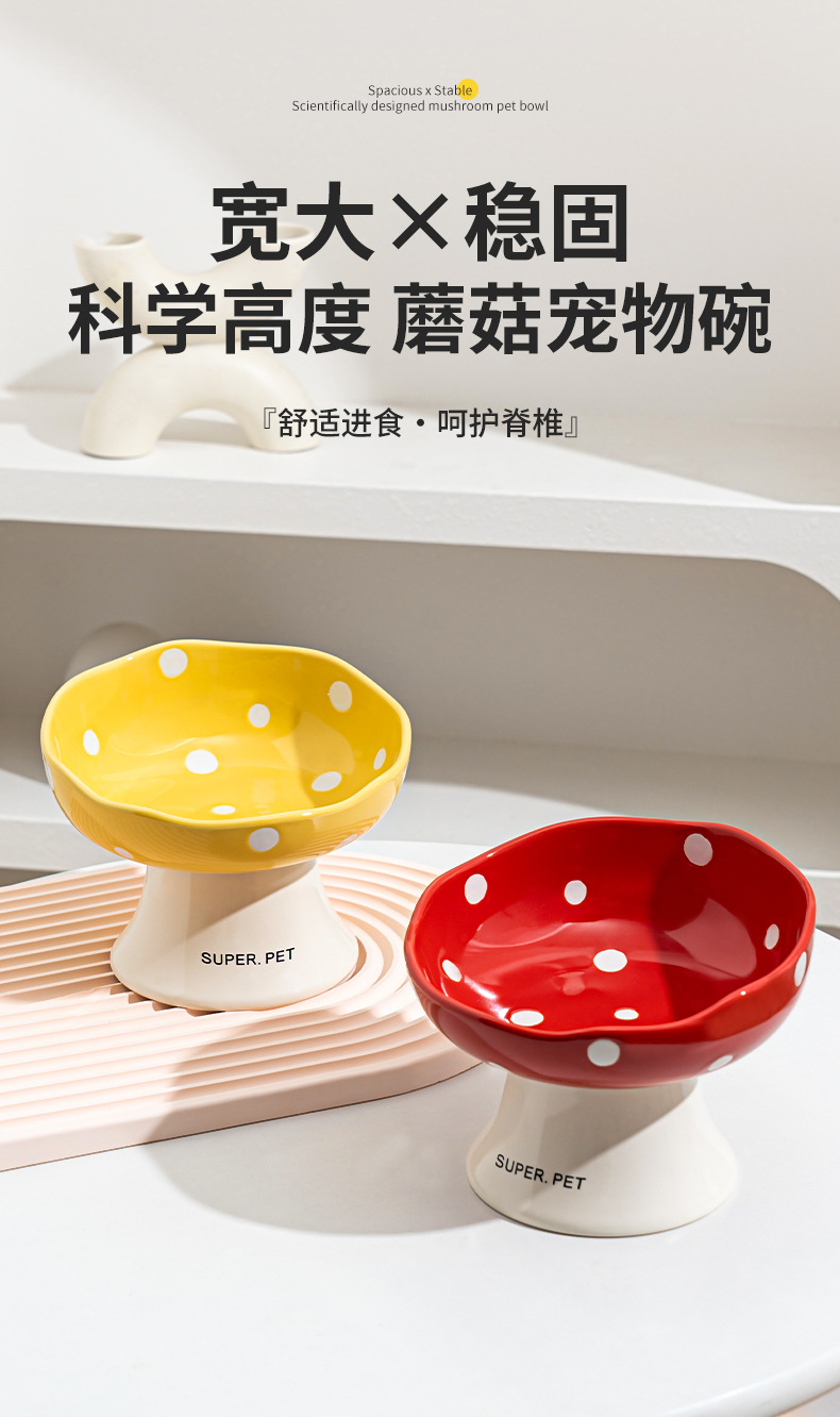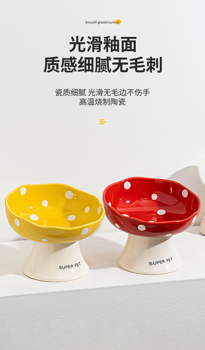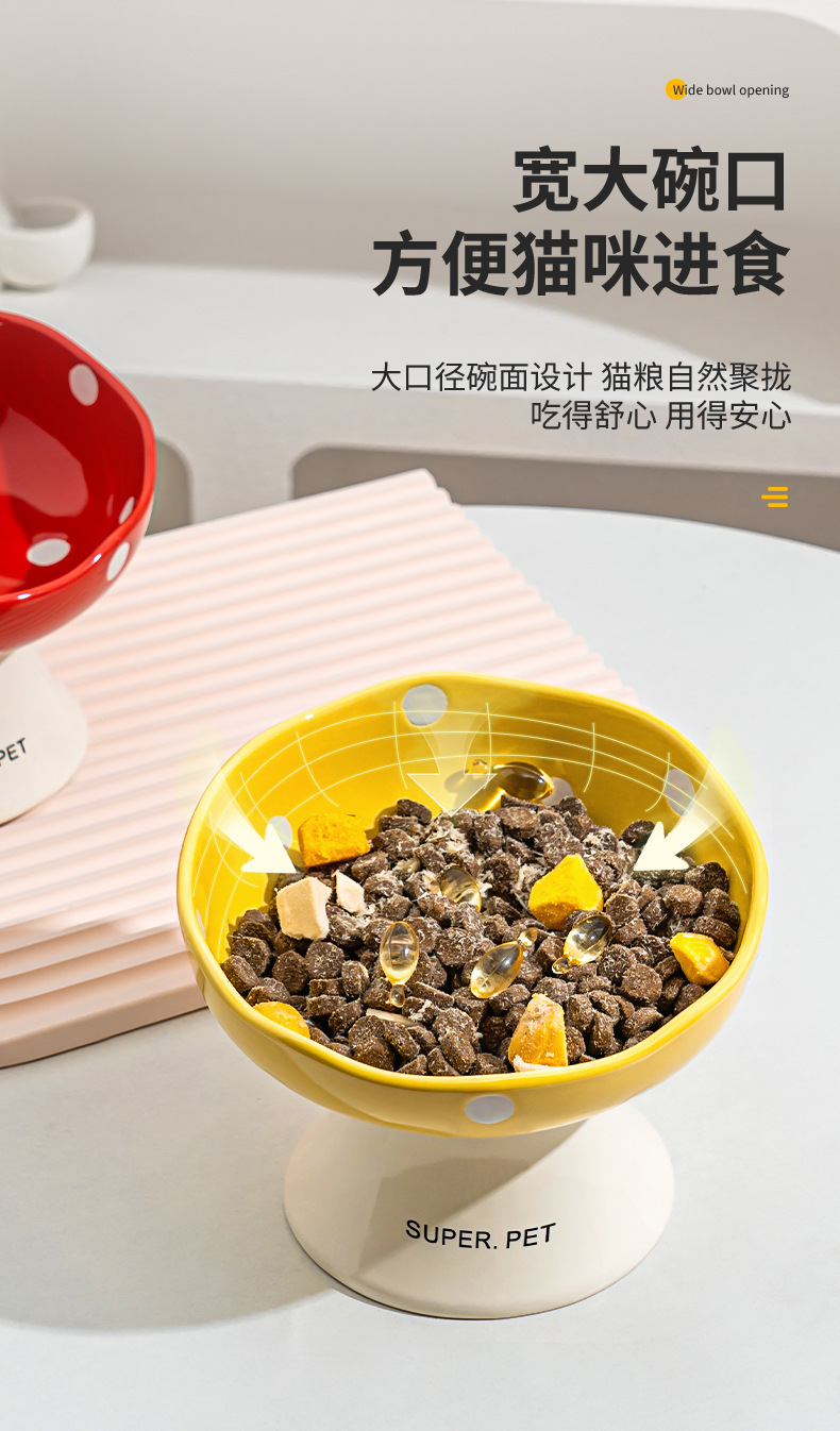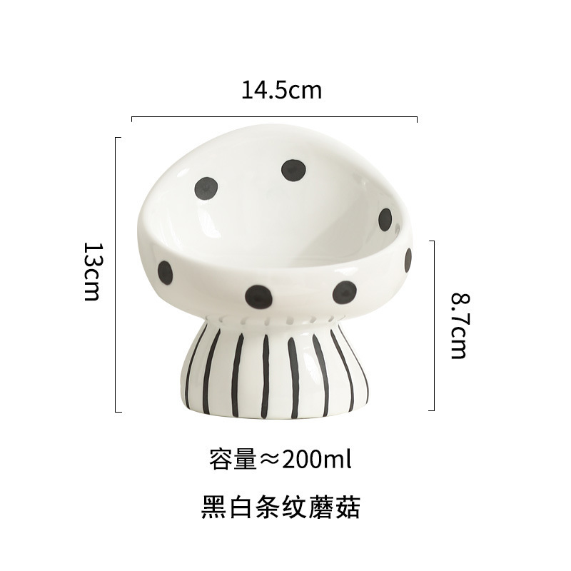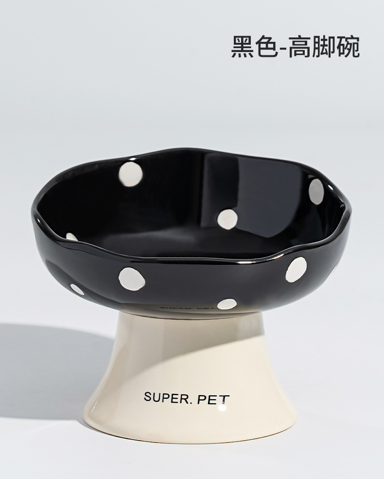 Tazón de cerámica para gatos, tazón de arroz para gatos, tazón de agua para perros, barbilla anti-negro, protector de cuello de pie alto, boca inclinada
