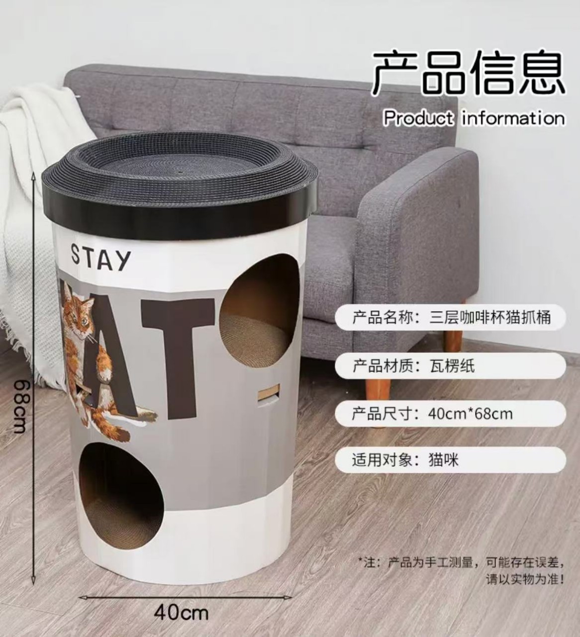 Wholesale cuatro estaciones generales gato gato gato agarrar tablero de té de leche barril de papel corrugado doble capa gato villa garra de molienda no desgaste