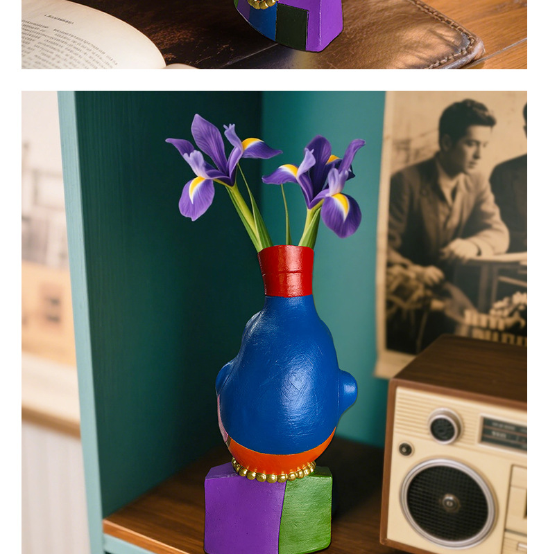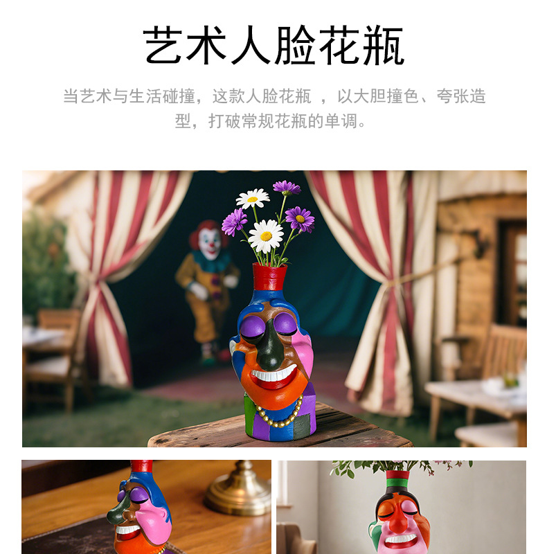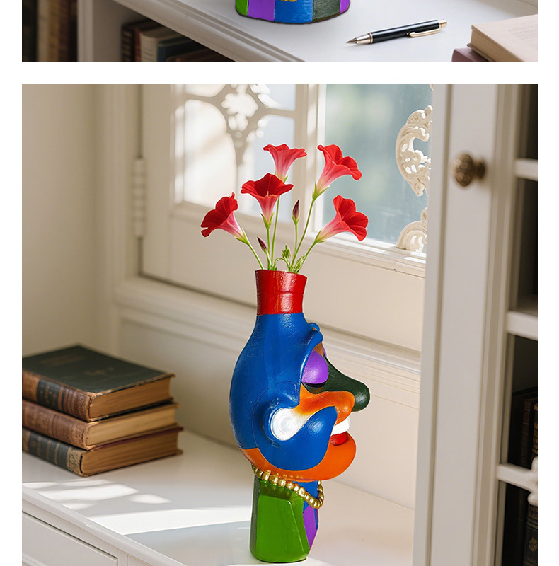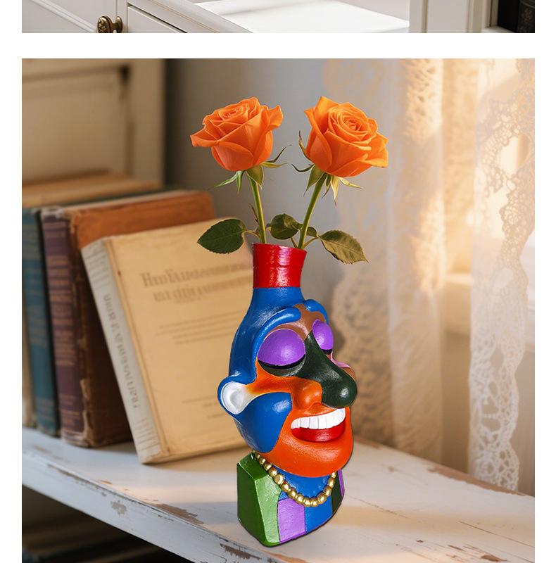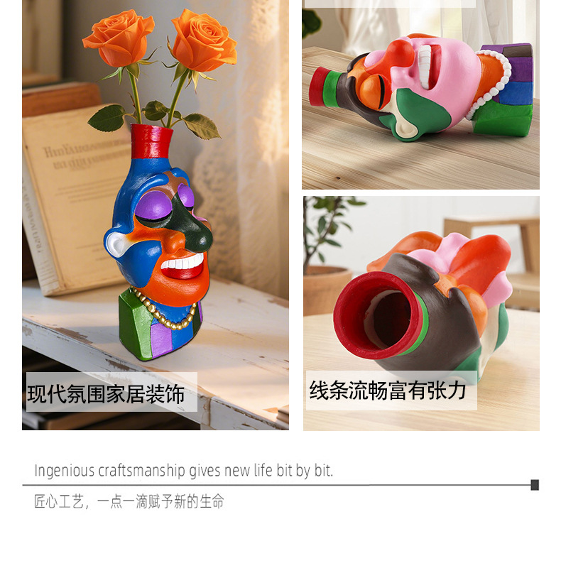 Amazon Face Vase Jarrón de rostro abstracto Flores artificiales Arreglos florales Decoración del hogar Contenedor Adornos
