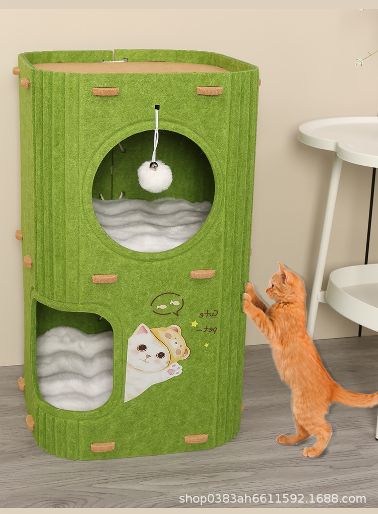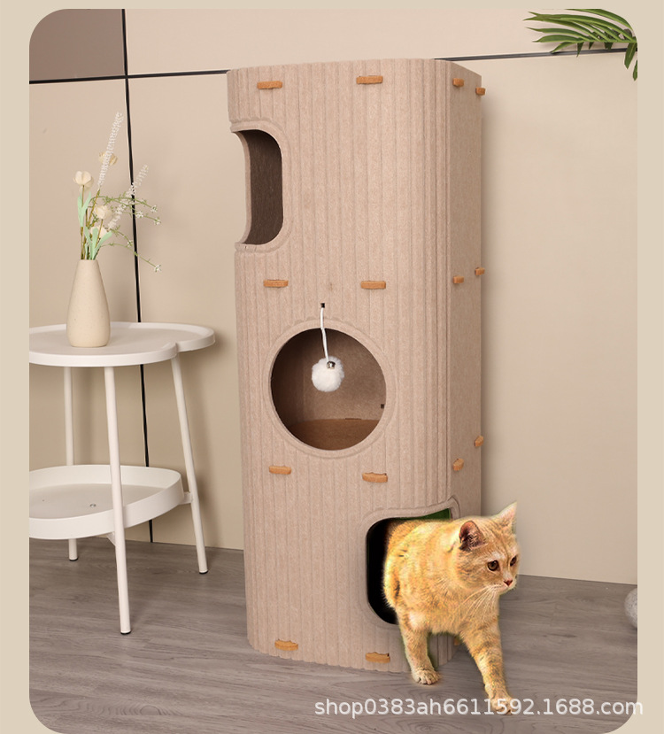 Casa para gatos de varias capas, marco para trepar para gatos, árbol para gatos, agujero para árbol para gatos en una pieza, caja para gatos cerrada con doble raspado universal en todas las estaciones en invierno