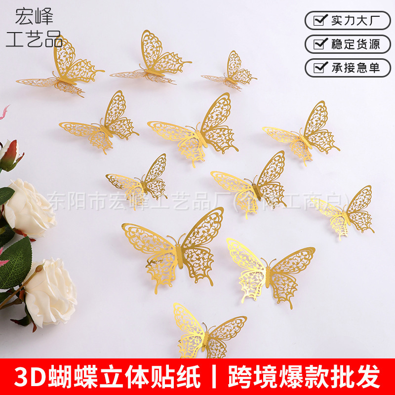 Simulación 3D estereoscópica mariposa pegatinas de pared sala de estar dormitorio decoración de fondo papel pintado decoración del hogar pegatinas creativas al por mayor