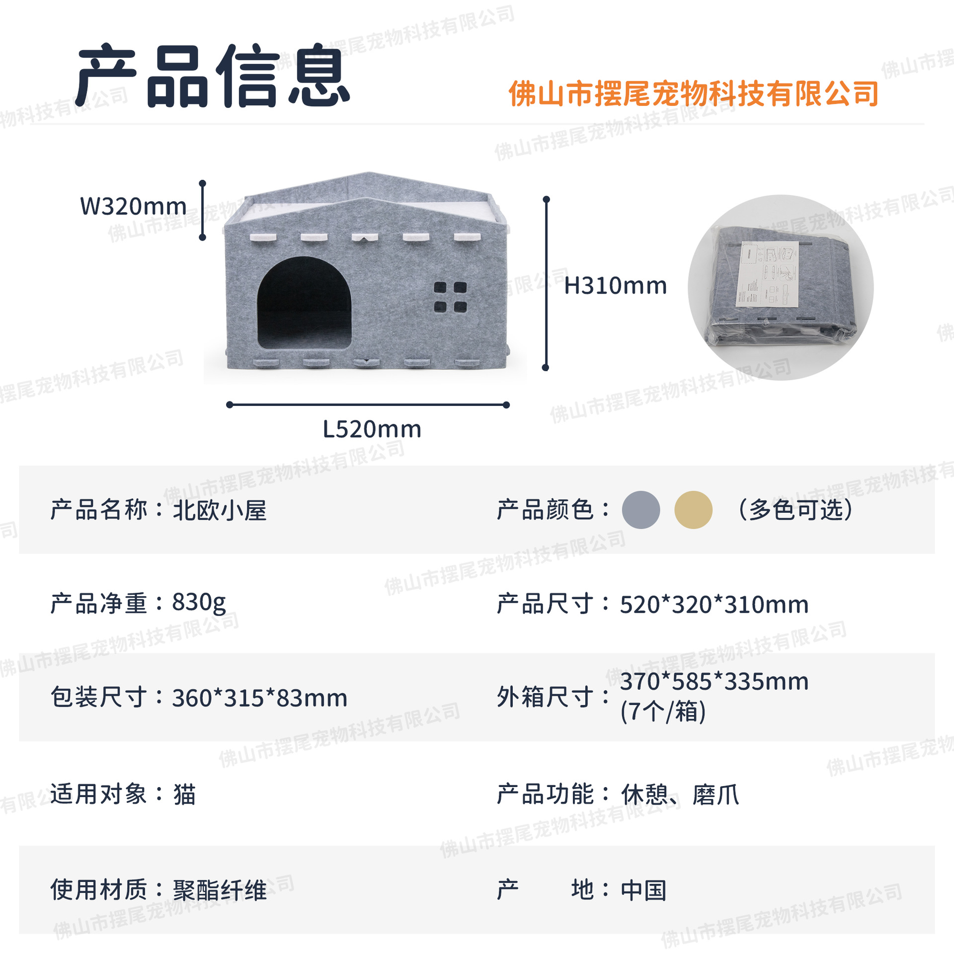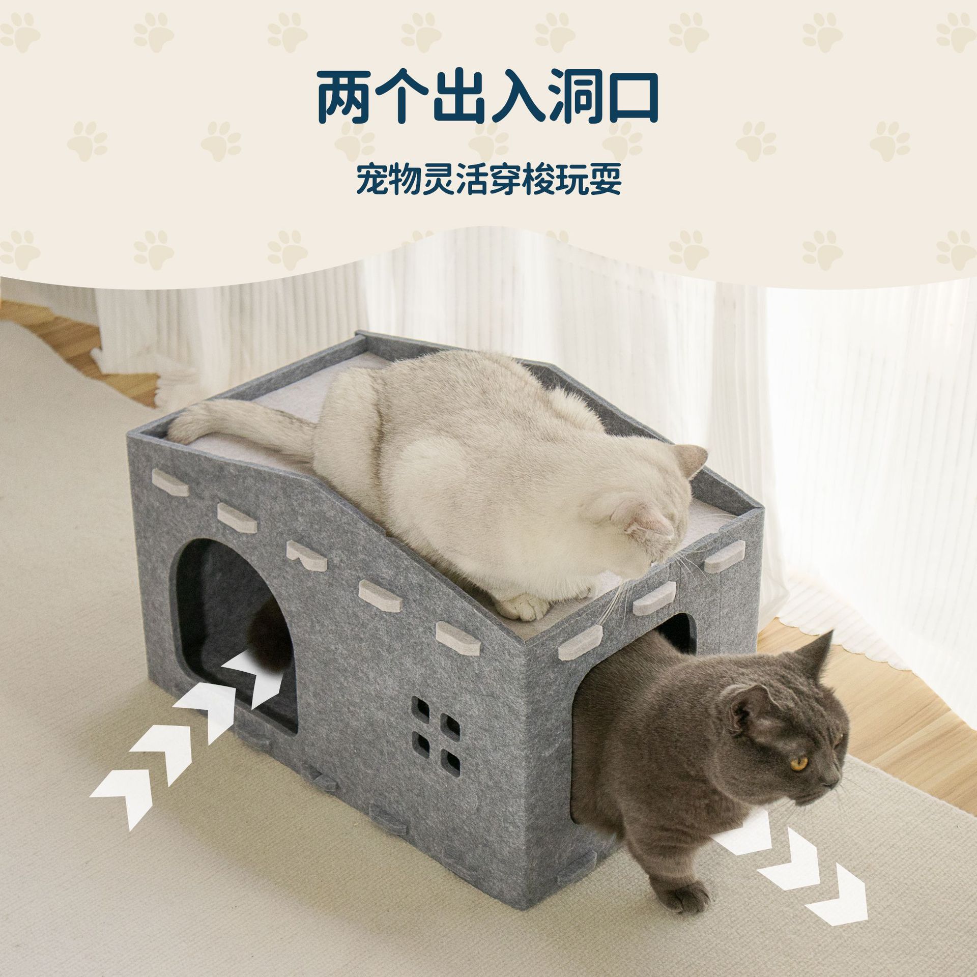 Fieltro de doble capa de doble propósito gato casa para gatos gato agarrar placa integral resistente al arañazo y desgaste gato casa semi-cerrada casa plegable para gatos
