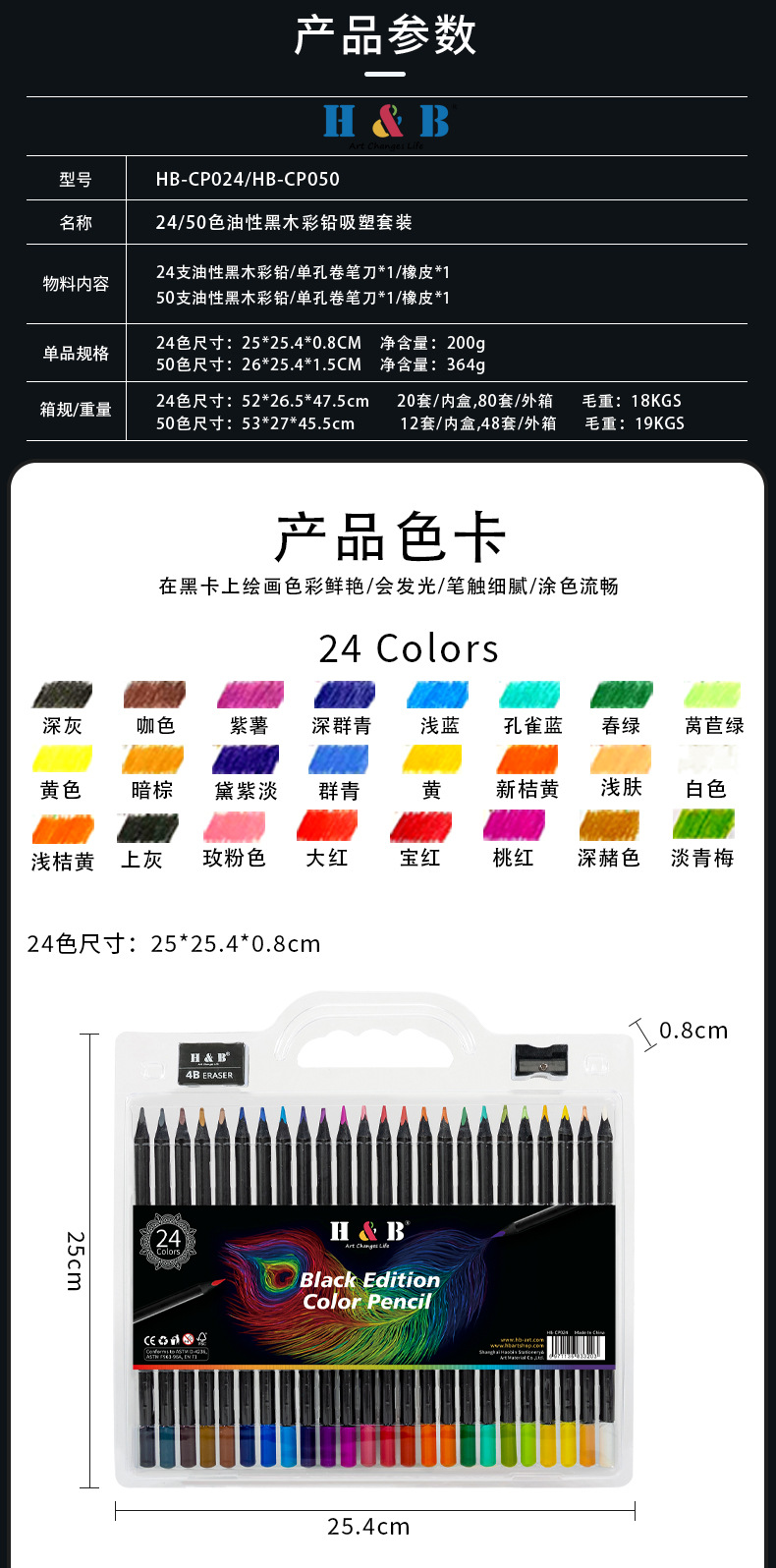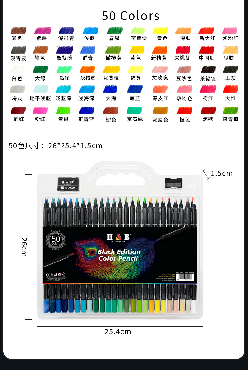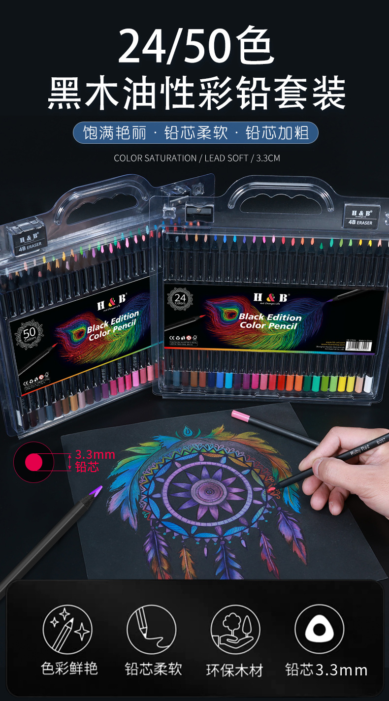 H & B 24 colores 50 negro madera color aceitoso plomo 3,3 plomo suministros de arte herramientas pintura traje pintado a mano cepillo