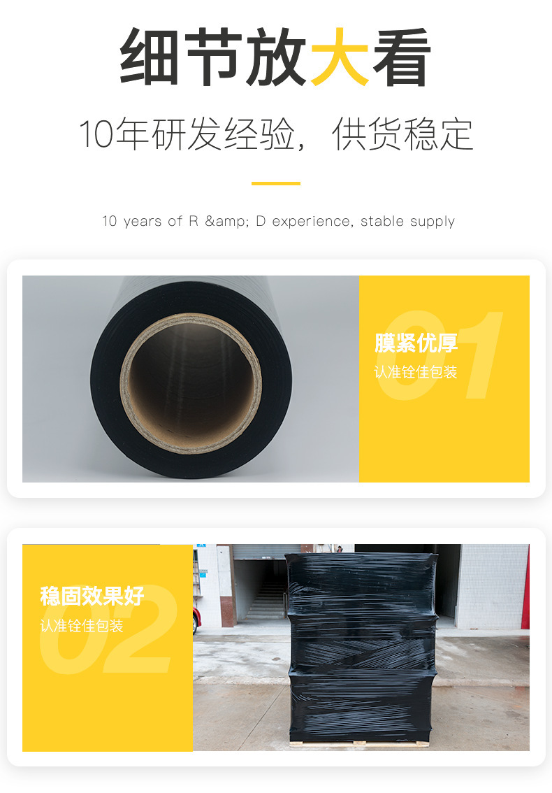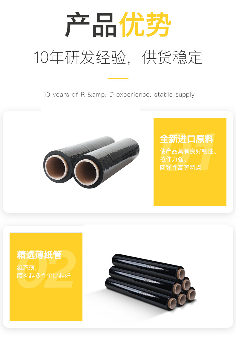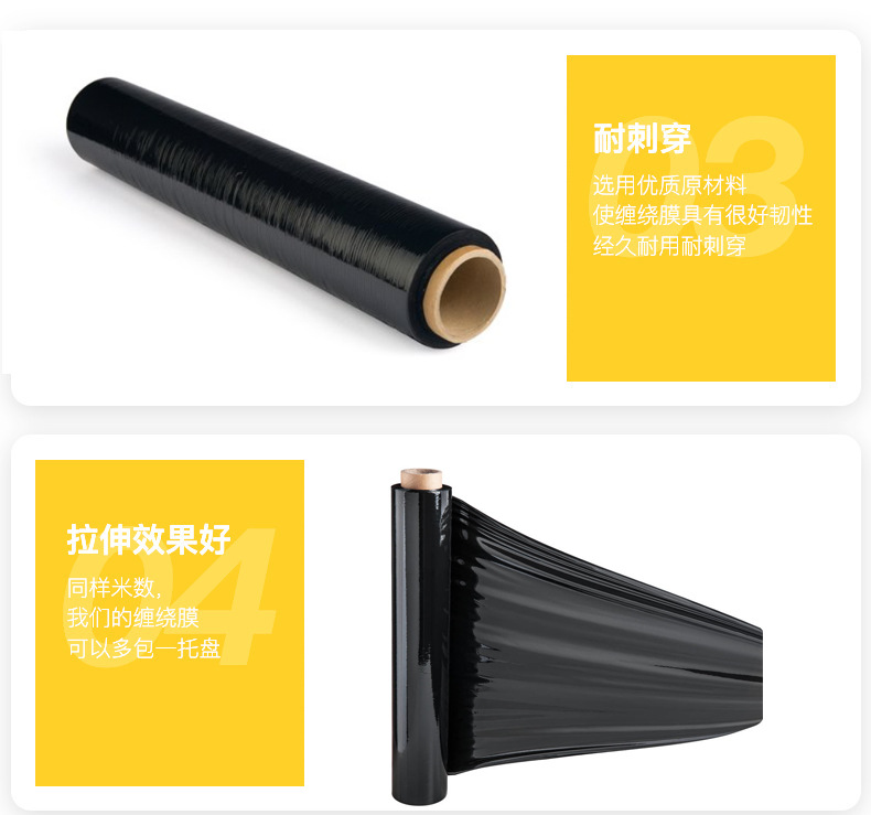 Fábrica personalizada película de enrollamiento negro película de estiramiento película protectora de gran rollo película de retención industrial película autoadhesiva