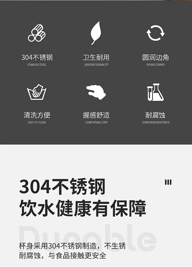 304 acero inoxidable de doble capa taza de agua aislante taza de boca de niños taza con tapa taza doméstica taza de comedor de jardín de infantes