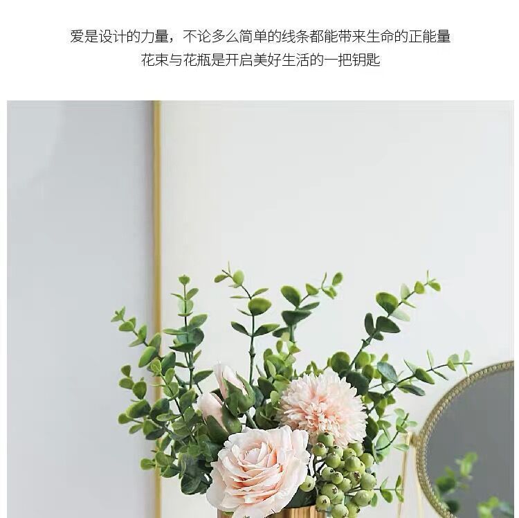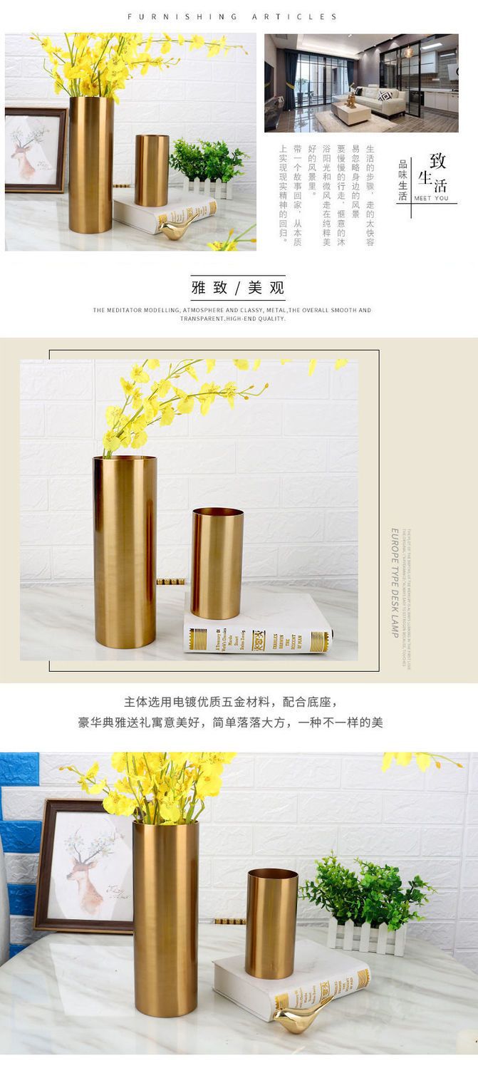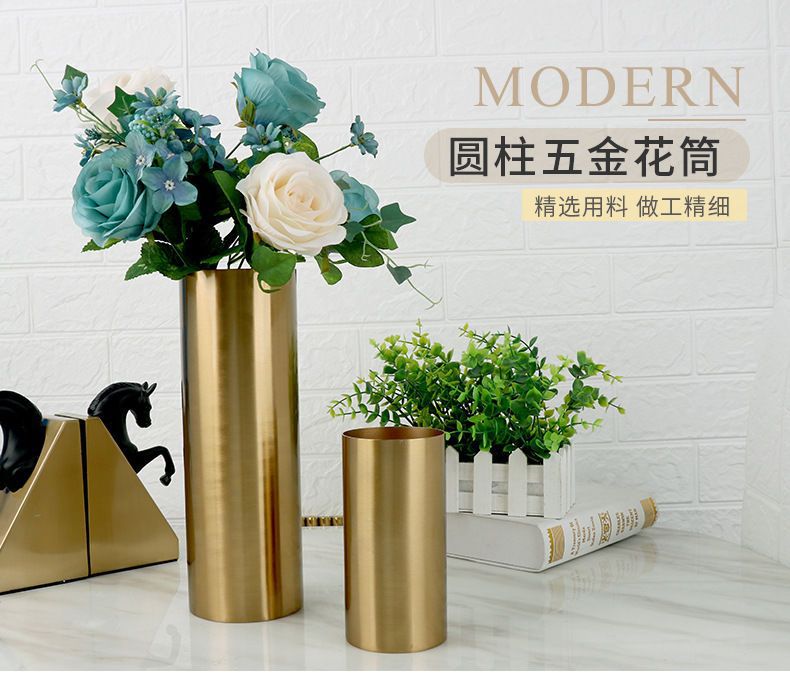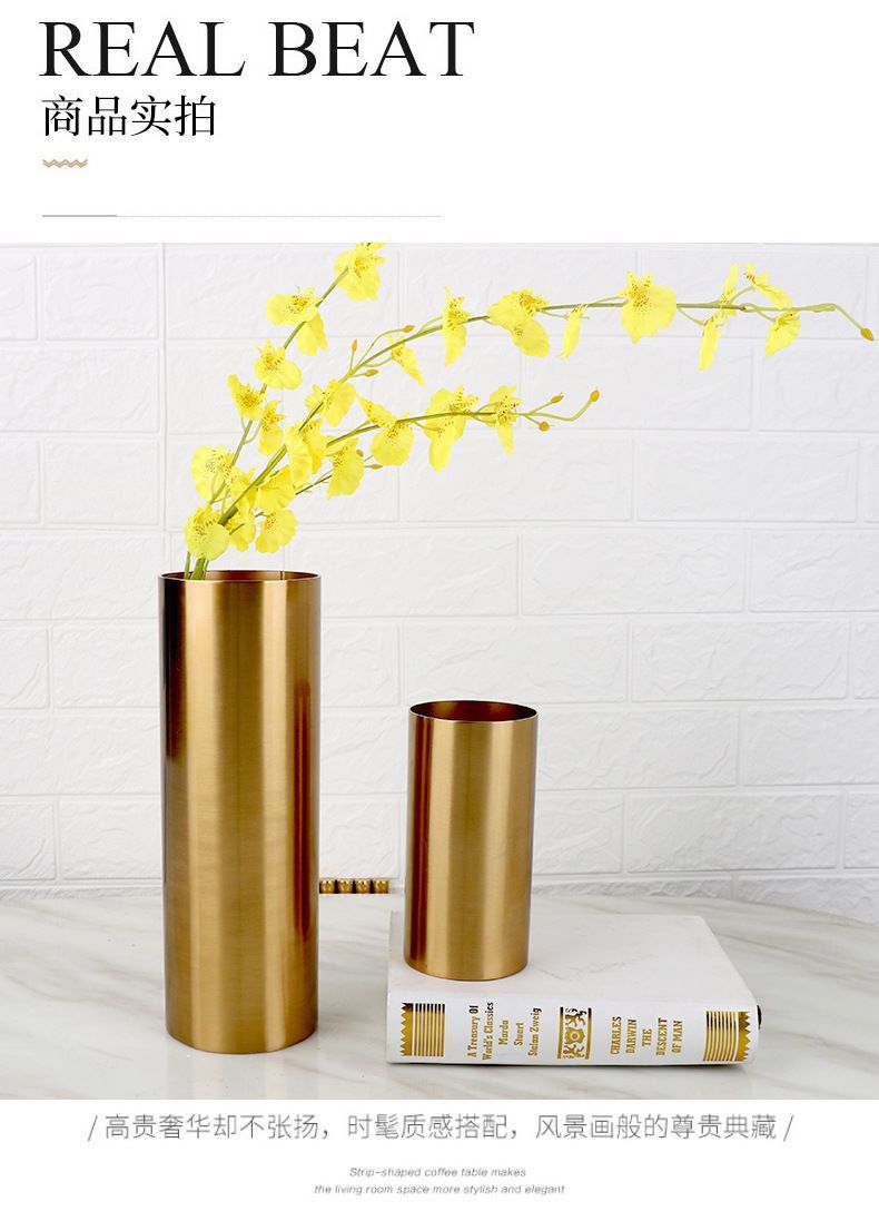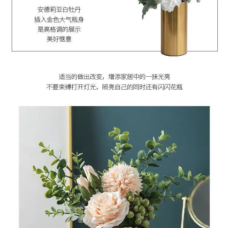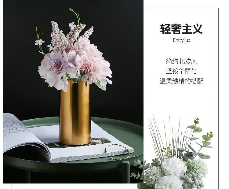 Nórdico moderno simple y lujoso ornamentos de vasijas de flores de metal arreglos de flores de alta calidad decoración de mesa de comedor