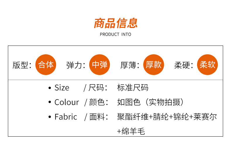 | Color | Negro (cuello medio), color café (cuello medio), azul Esmeralda (cuello medio), gris oscuro (cuello medio), albaricoque de flores (cuello medio), negro (cuello redondo), color café (cuello redondo), azul Esmeralda (cuello redondo), negro (cuello alto), color café (cuello alto), azul Esmeralda (cuello alto), gris oscuro (cuello alto), albaricoque (cuello alto), blanco (cuello medio), blanco (cuello redondo), blanco (cuello alto) |