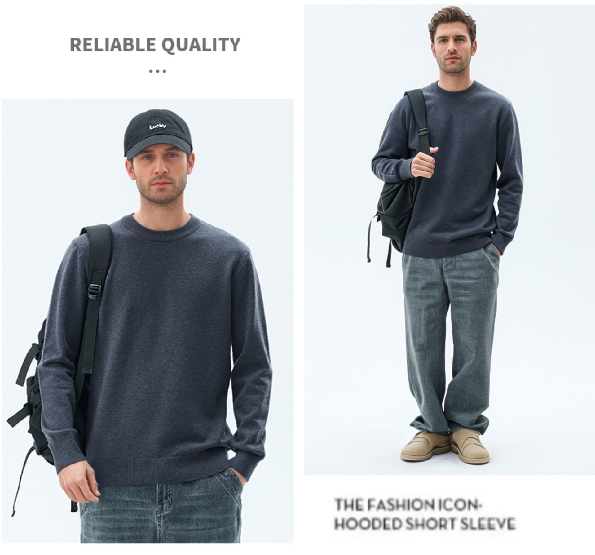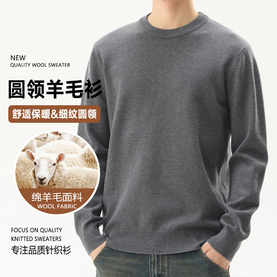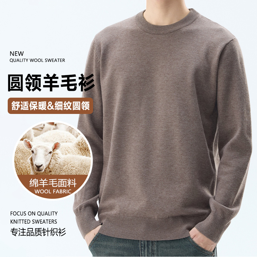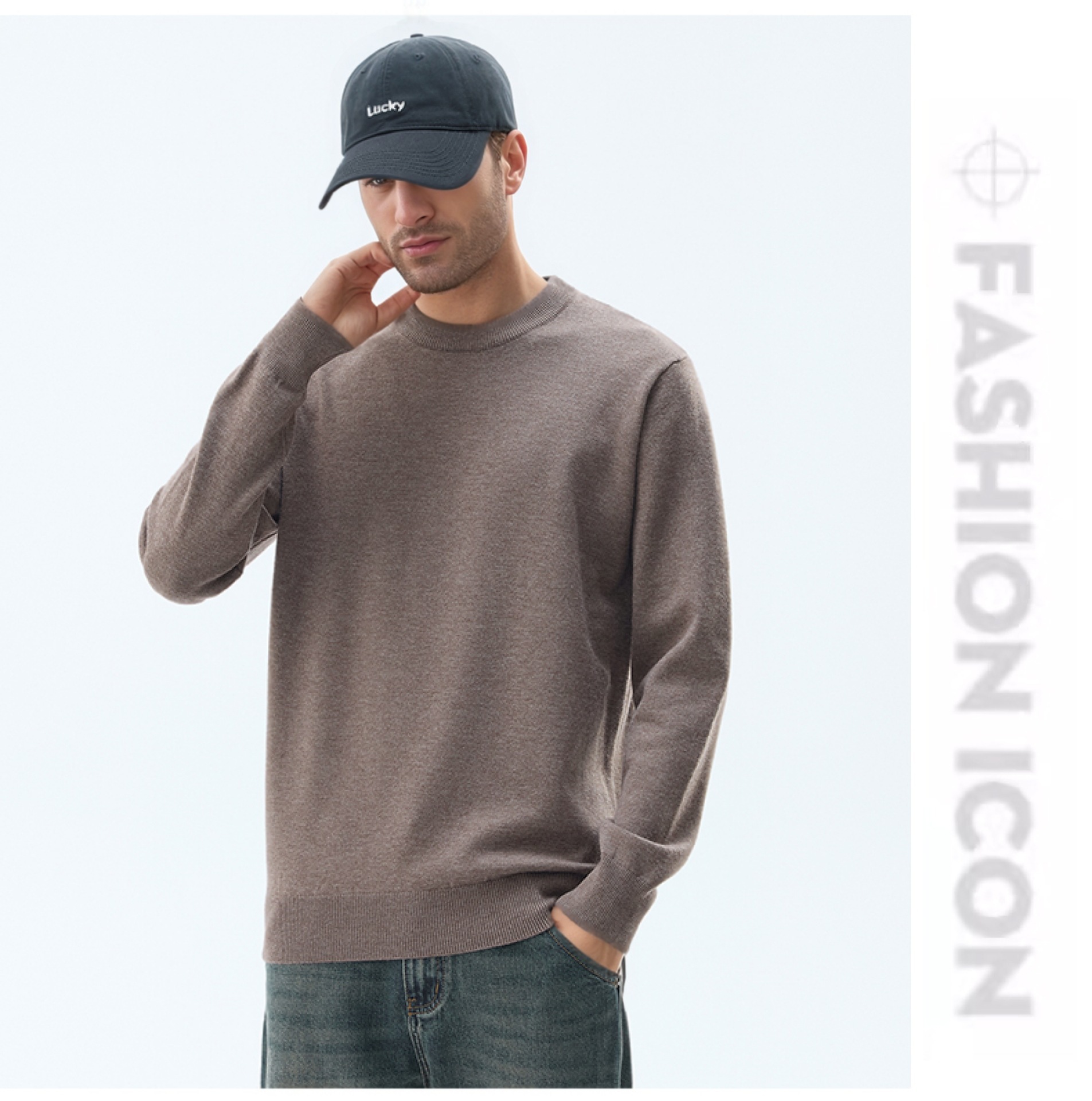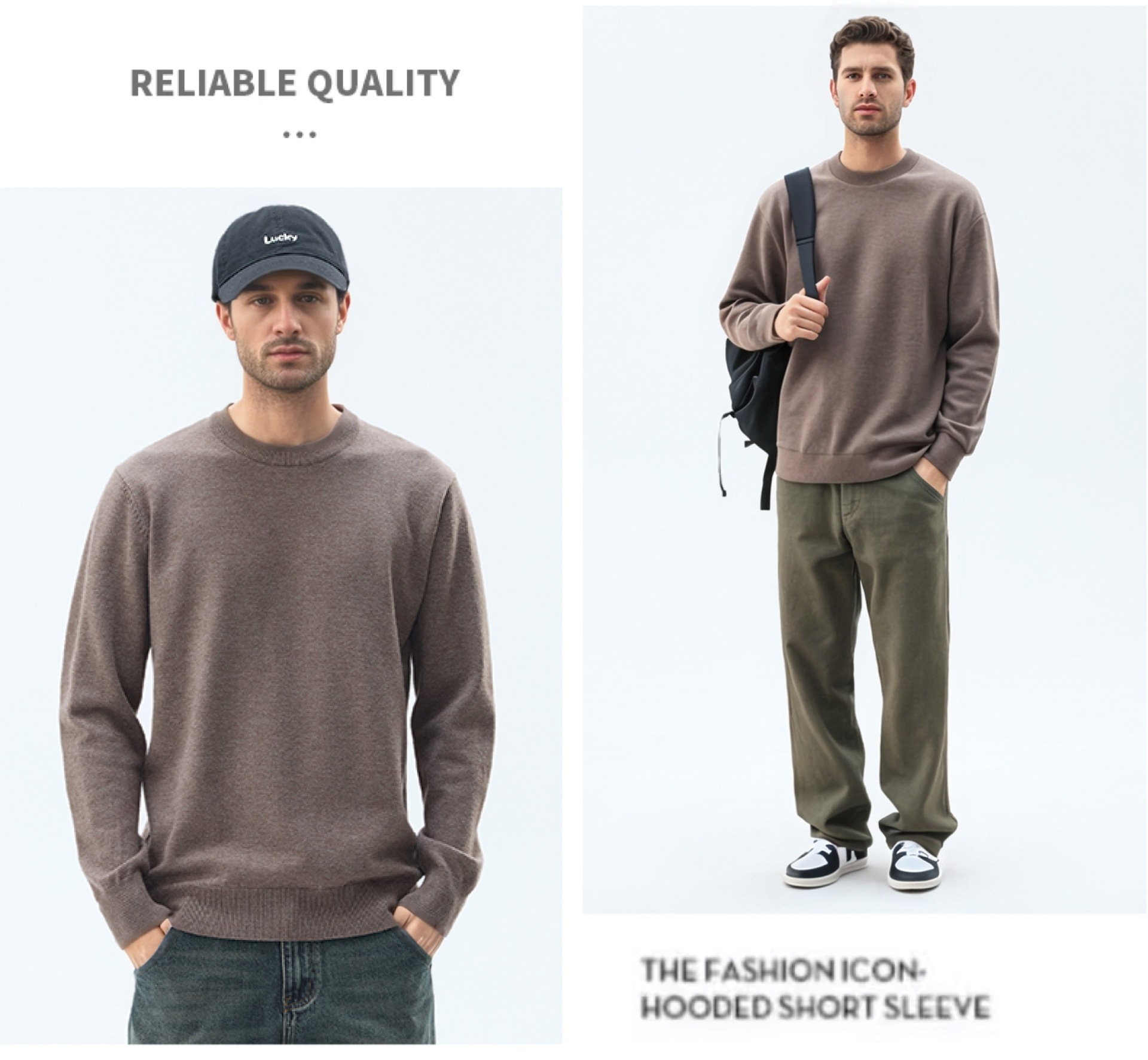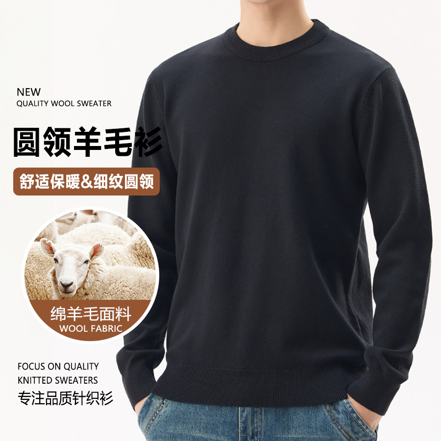 2025 otoño y invierno camiseta de lana de cuello redondo hombre overhead camiseta de punto fondo camiseta de lana mezcla camiseta de punto