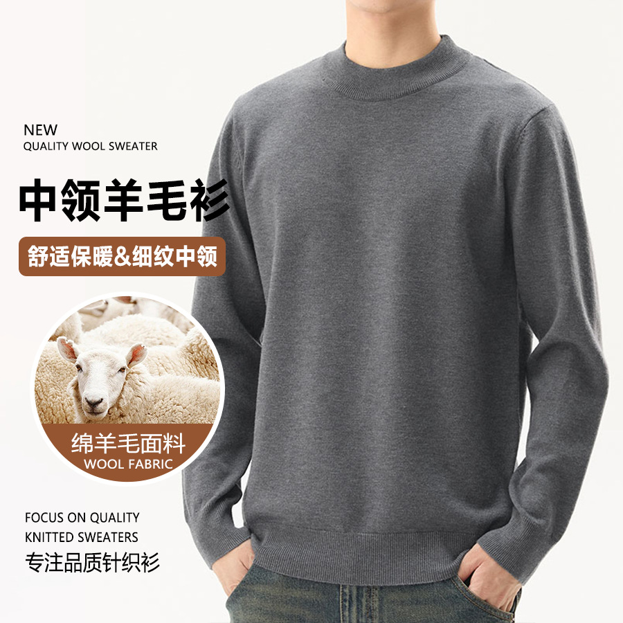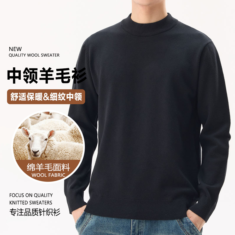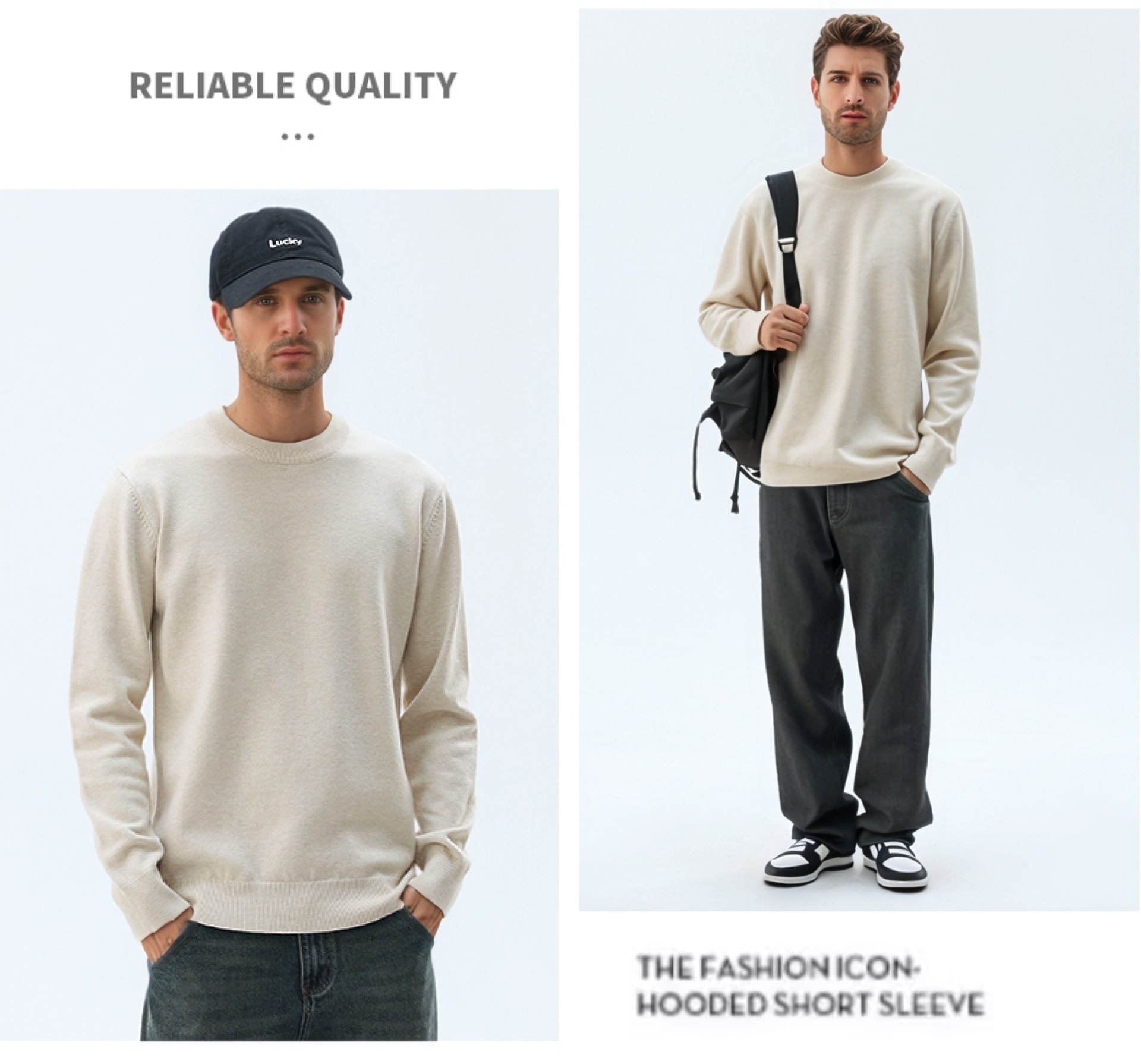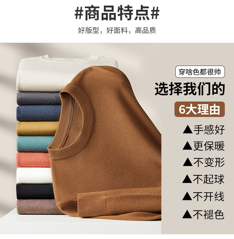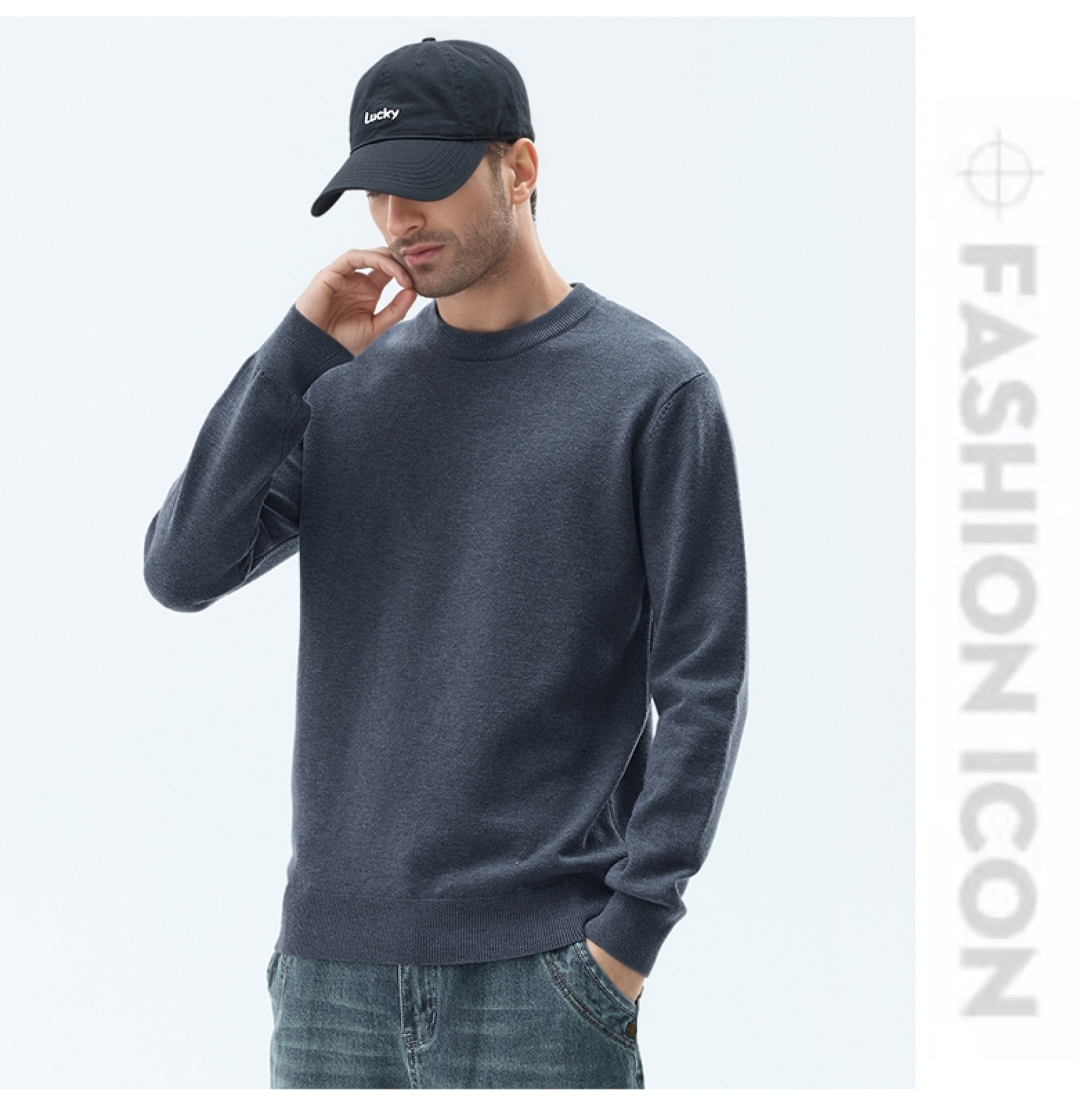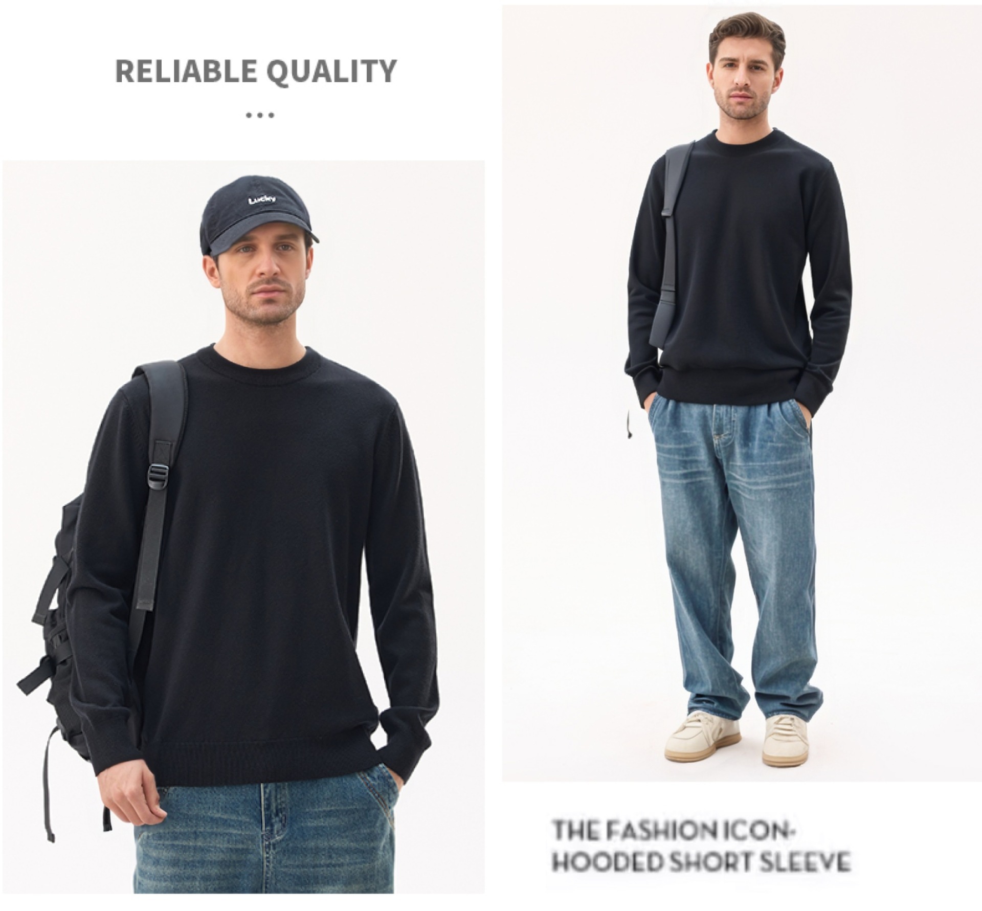 2025 otoño y invierno camiseta de lana de cuello redondo hombre overhead camiseta de punto fondo camiseta de lana mezcla camiseta de punto
