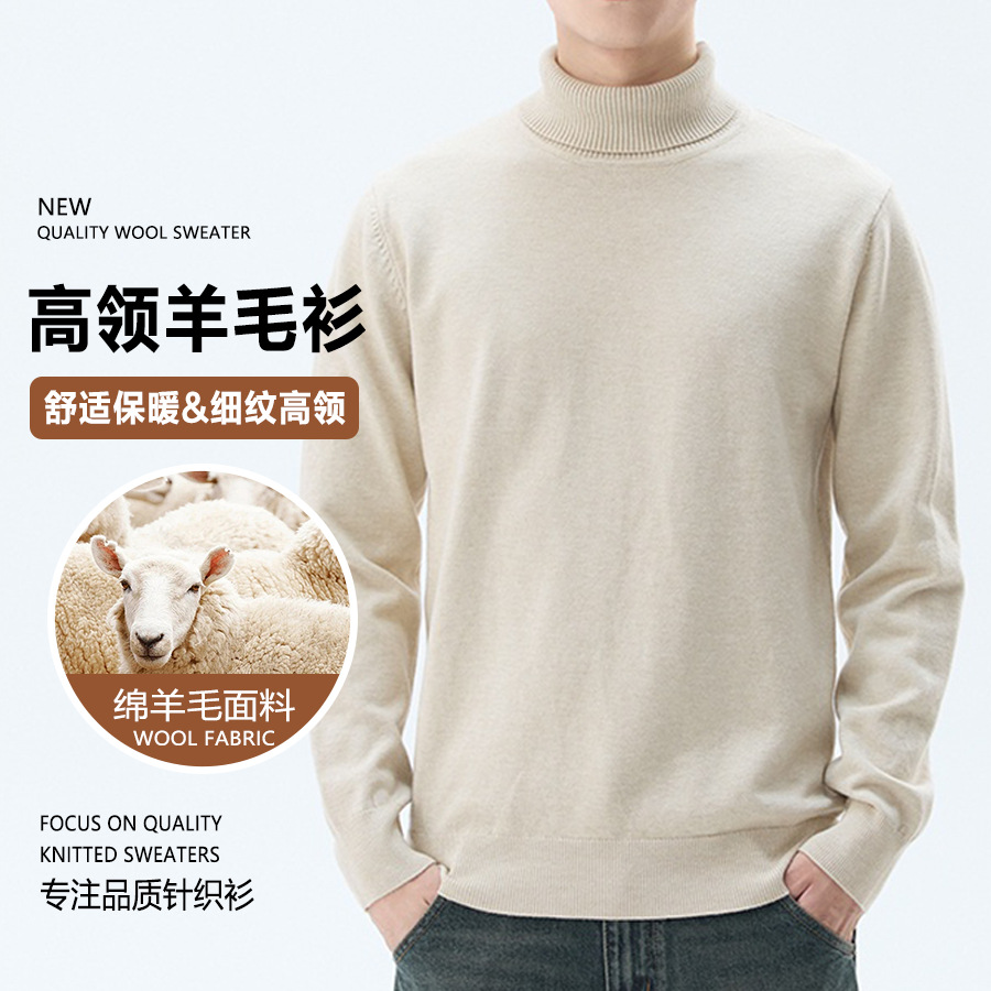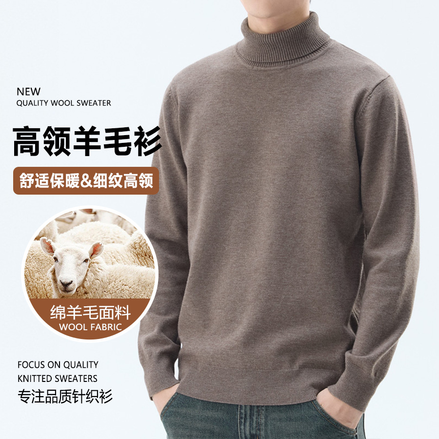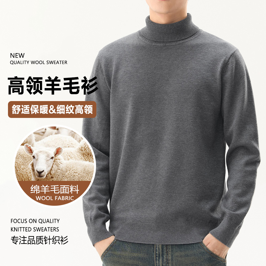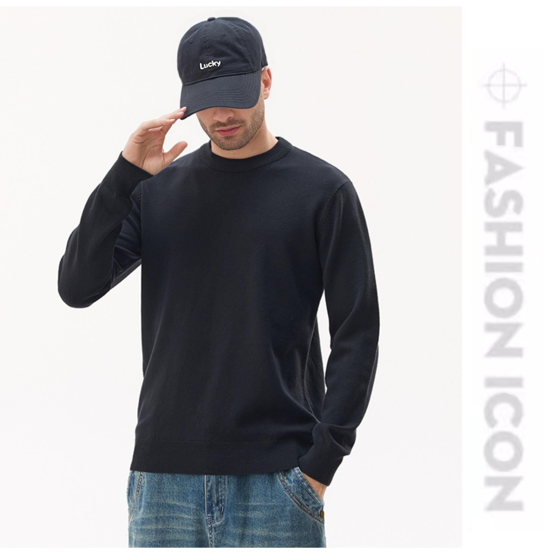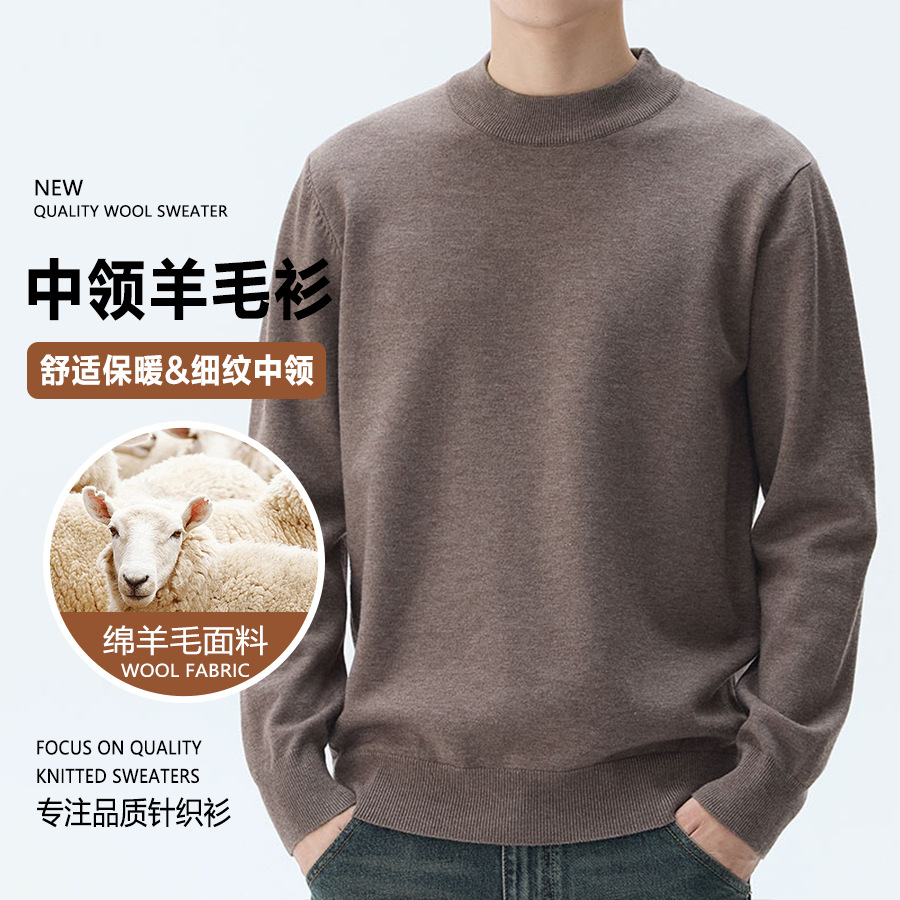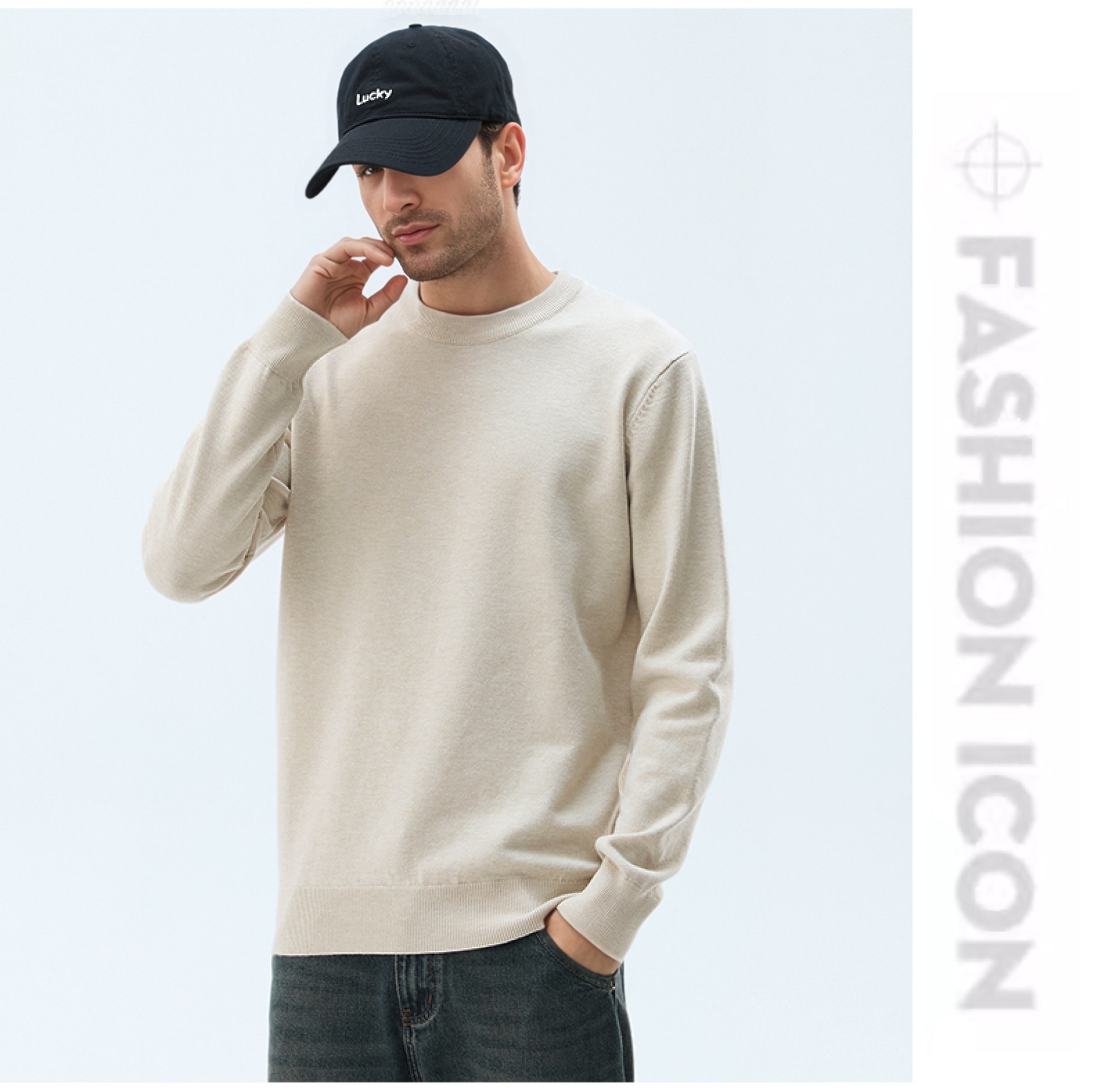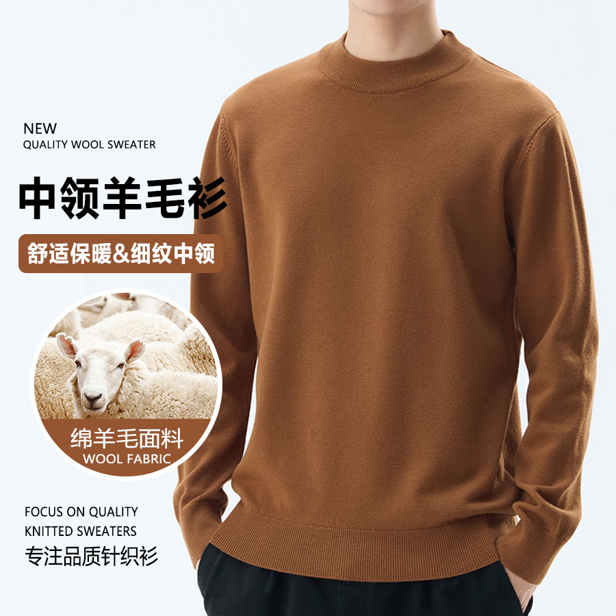 2025 otoño y invierno camiseta de lana de cuello redondo hombre overhead camiseta de punto fondo camiseta de lana mezcla camiseta de punto