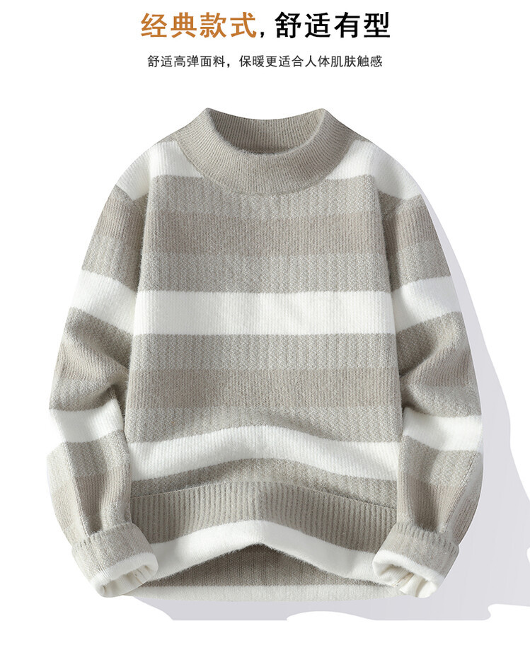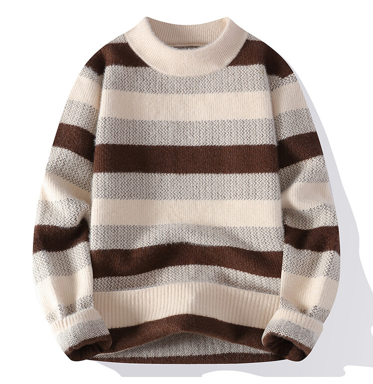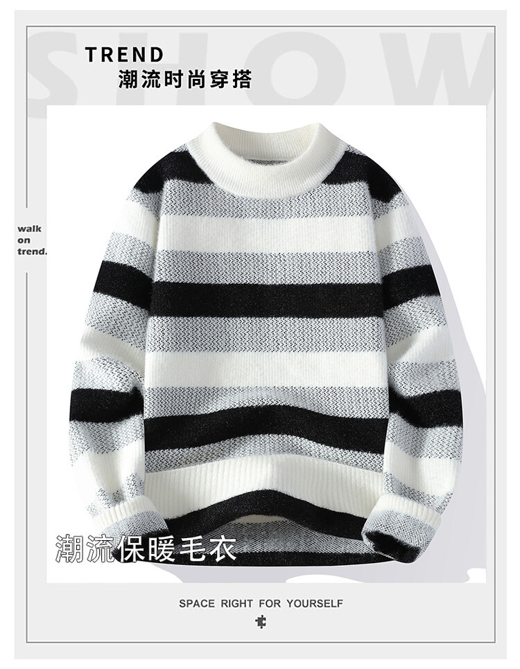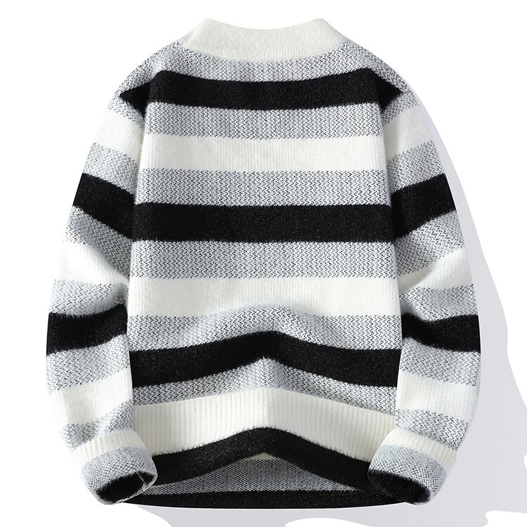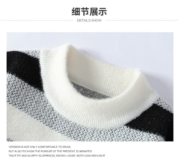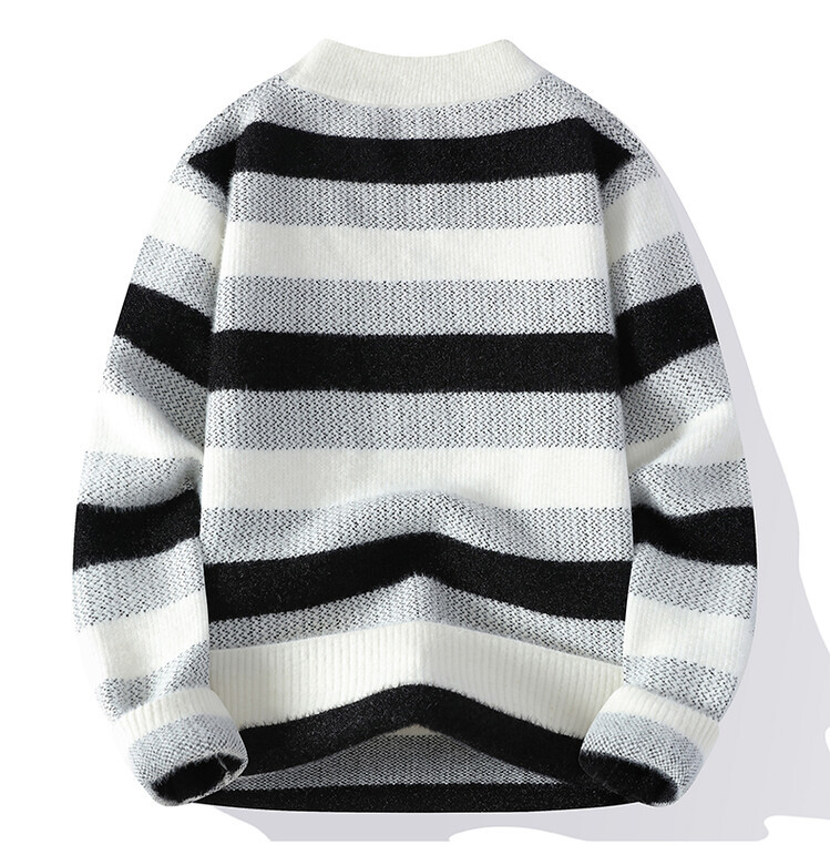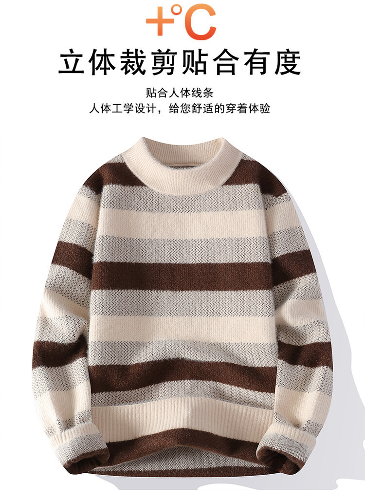 Tendencia masculina de invierno nuevo cuello redondo engrosado jacquard rayas de manga larga suéter de moda masculino camiseta de punto cálida