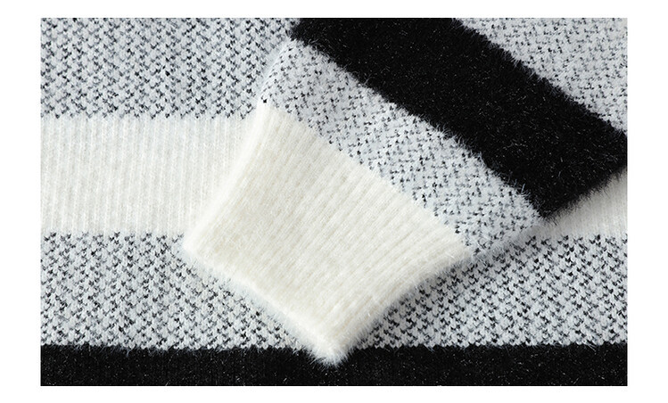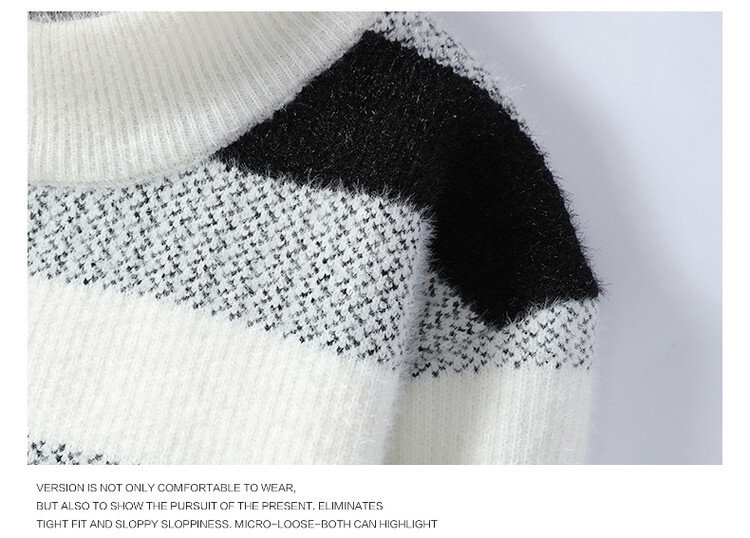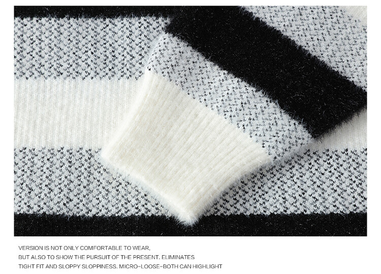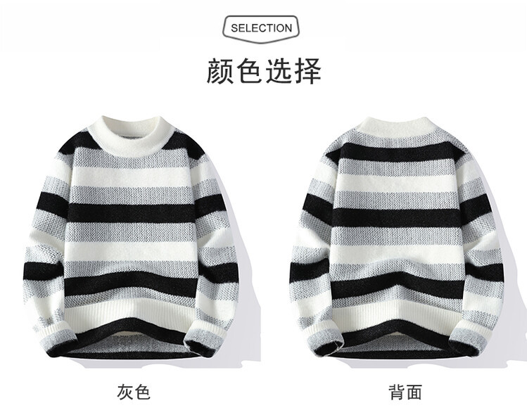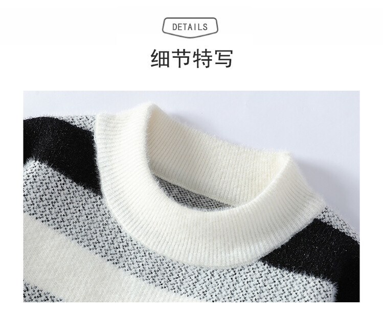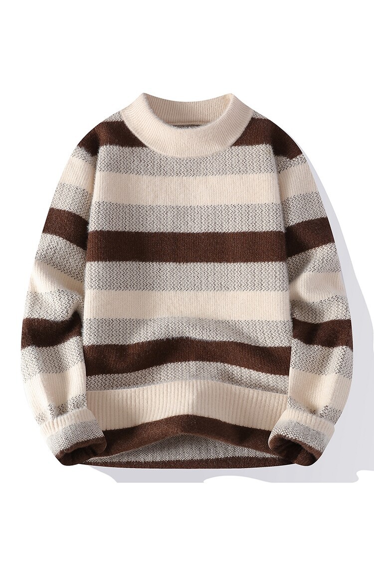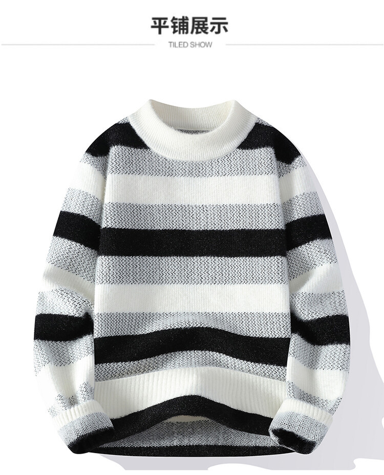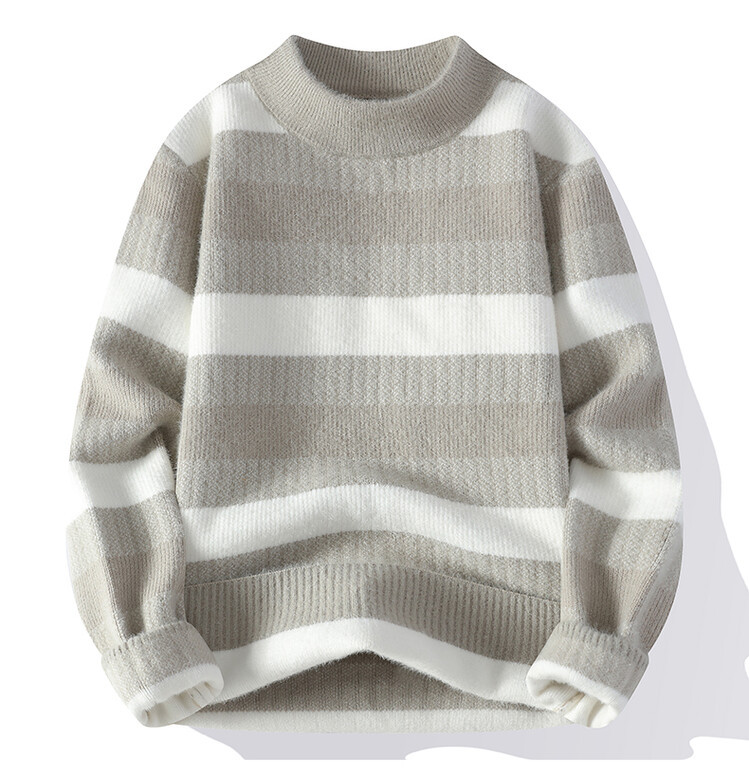 Tendencia masculina de invierno nuevo cuello redondo engrosado jacquard rayas de manga larga suéter de moda masculino camiseta de punto cálida