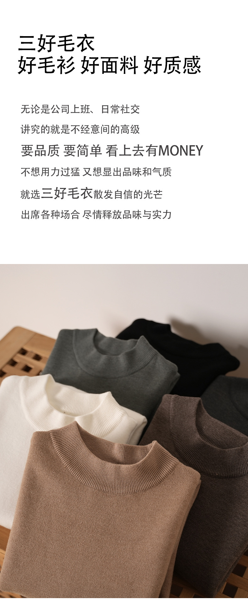 Otoño y invierno nuevo hombre medio cuello alto suéter con una camiseta de peluche superior ligera de manga larga de negocios camiseta de punto