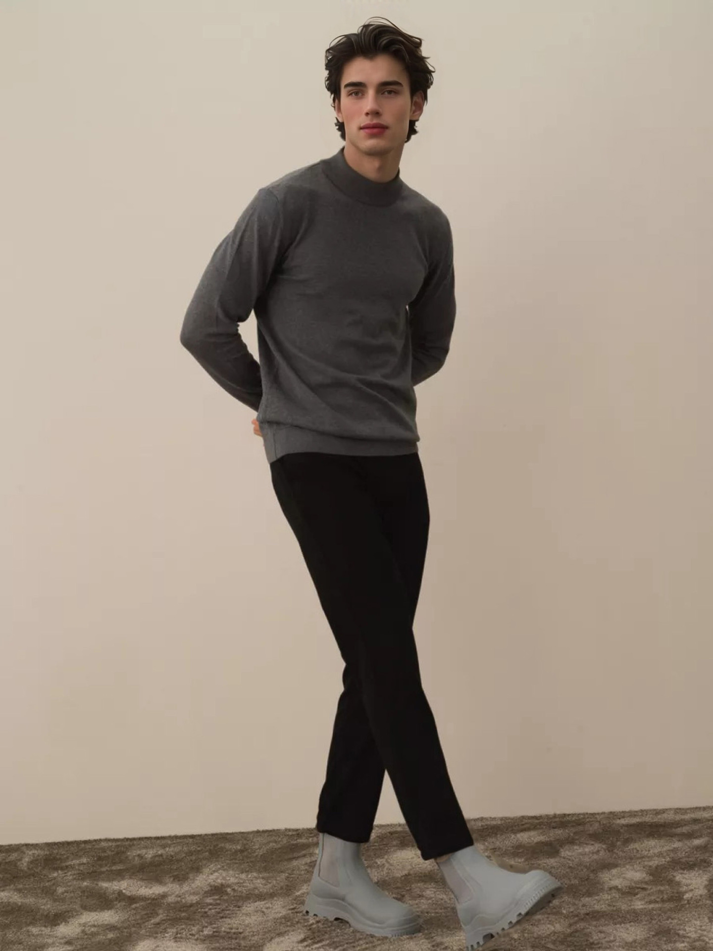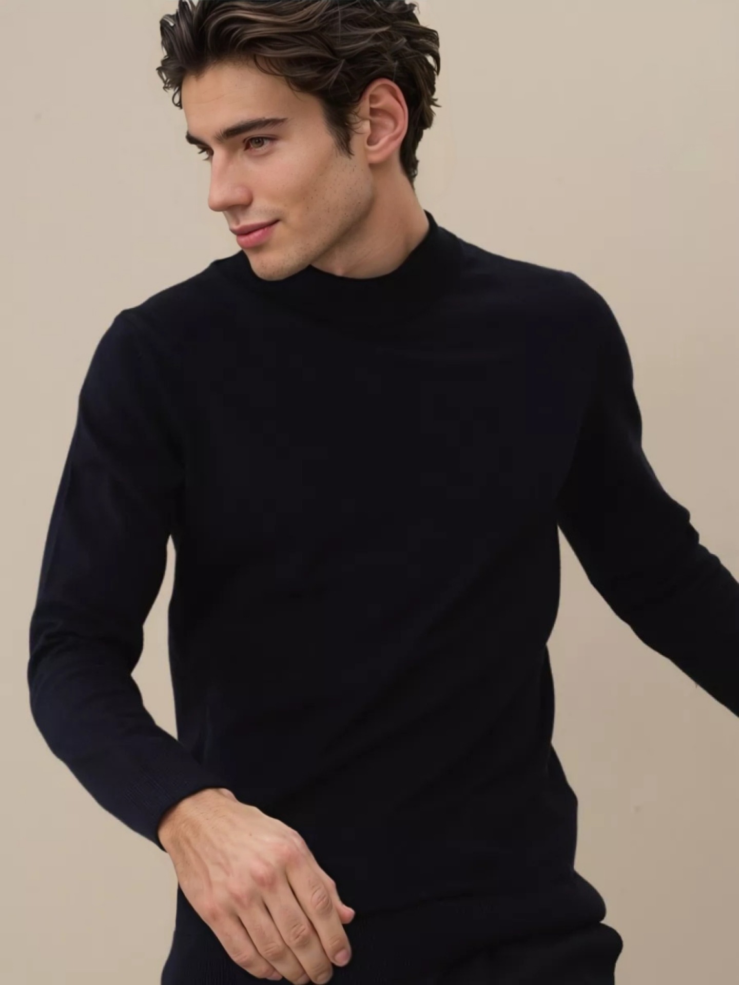 Otoño y invierno suéter de cuello medio alto suéter de lana de hombre suéter de punto suéter de fondo de color sólido