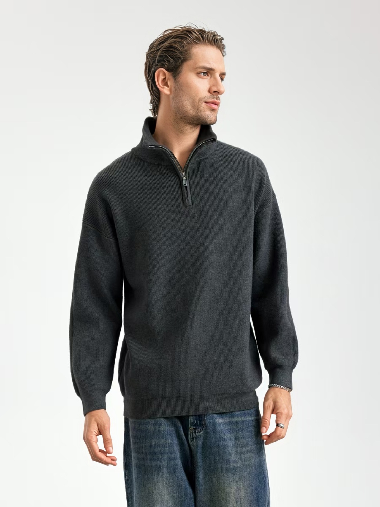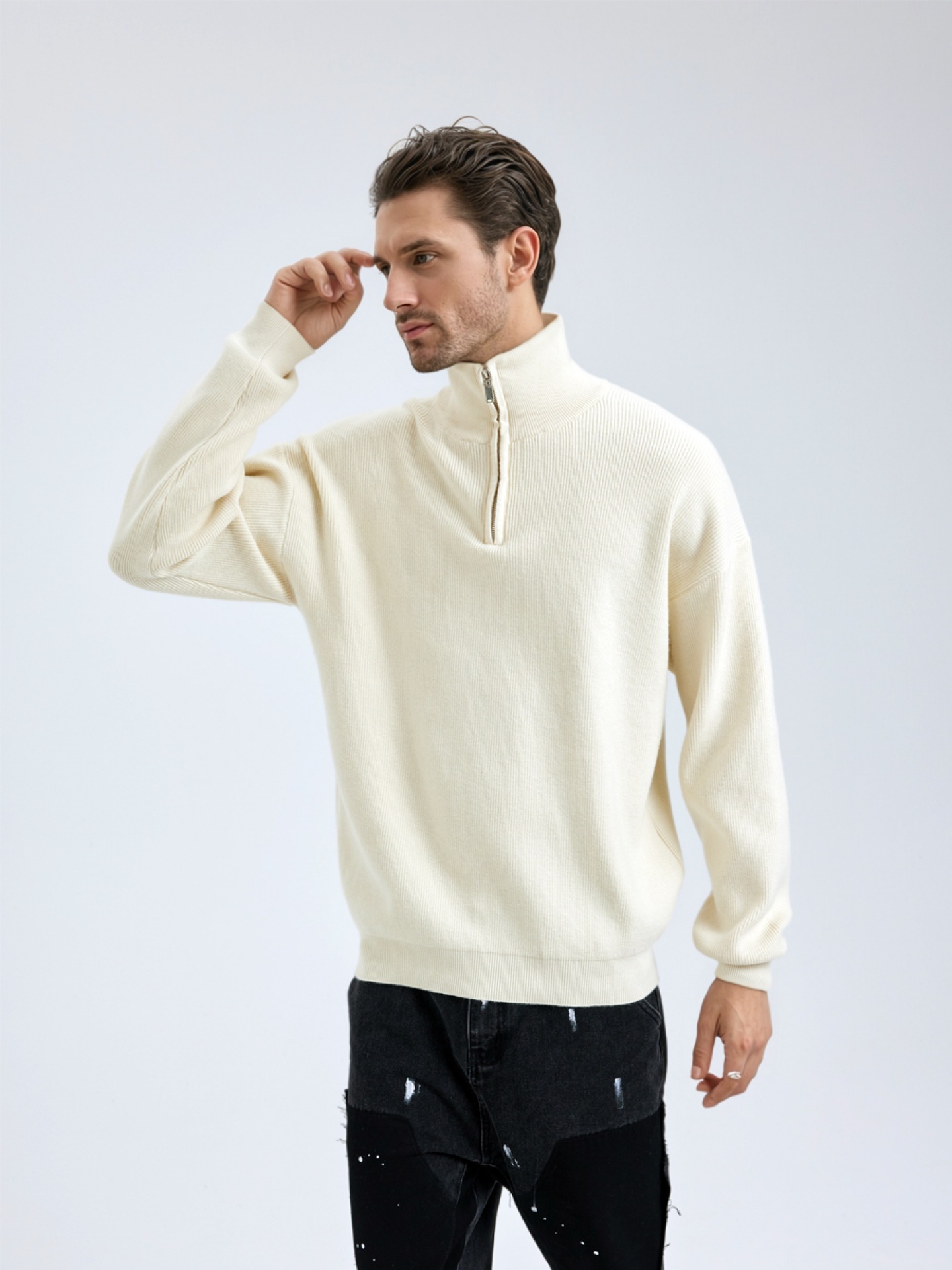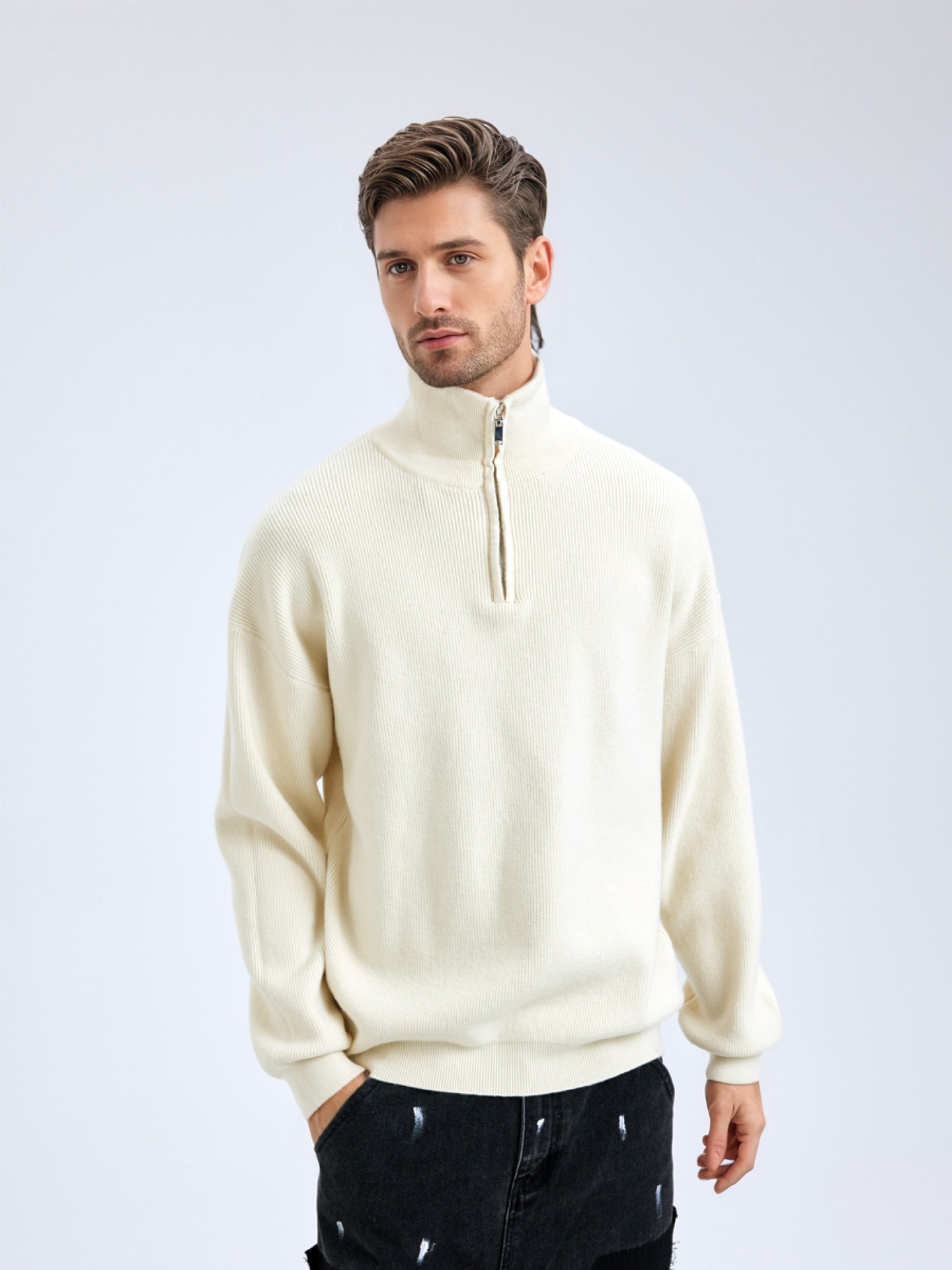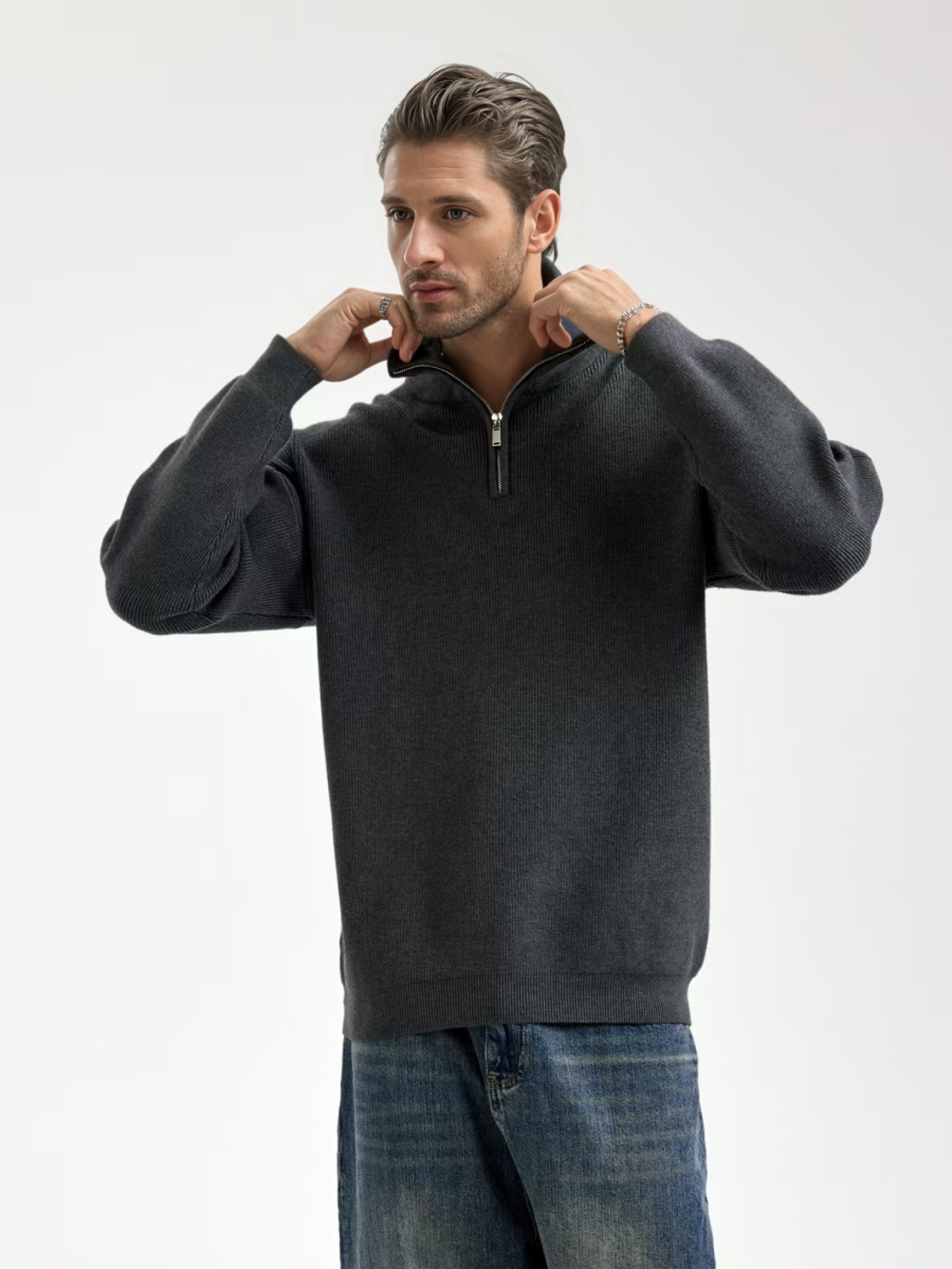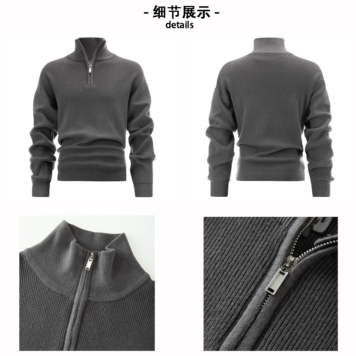 Suéter de hombre transfronterizo otoño y invierno nuevo estilo americano perezoso viento medio cremallera suelta plummet de color sólido suéter de hombre