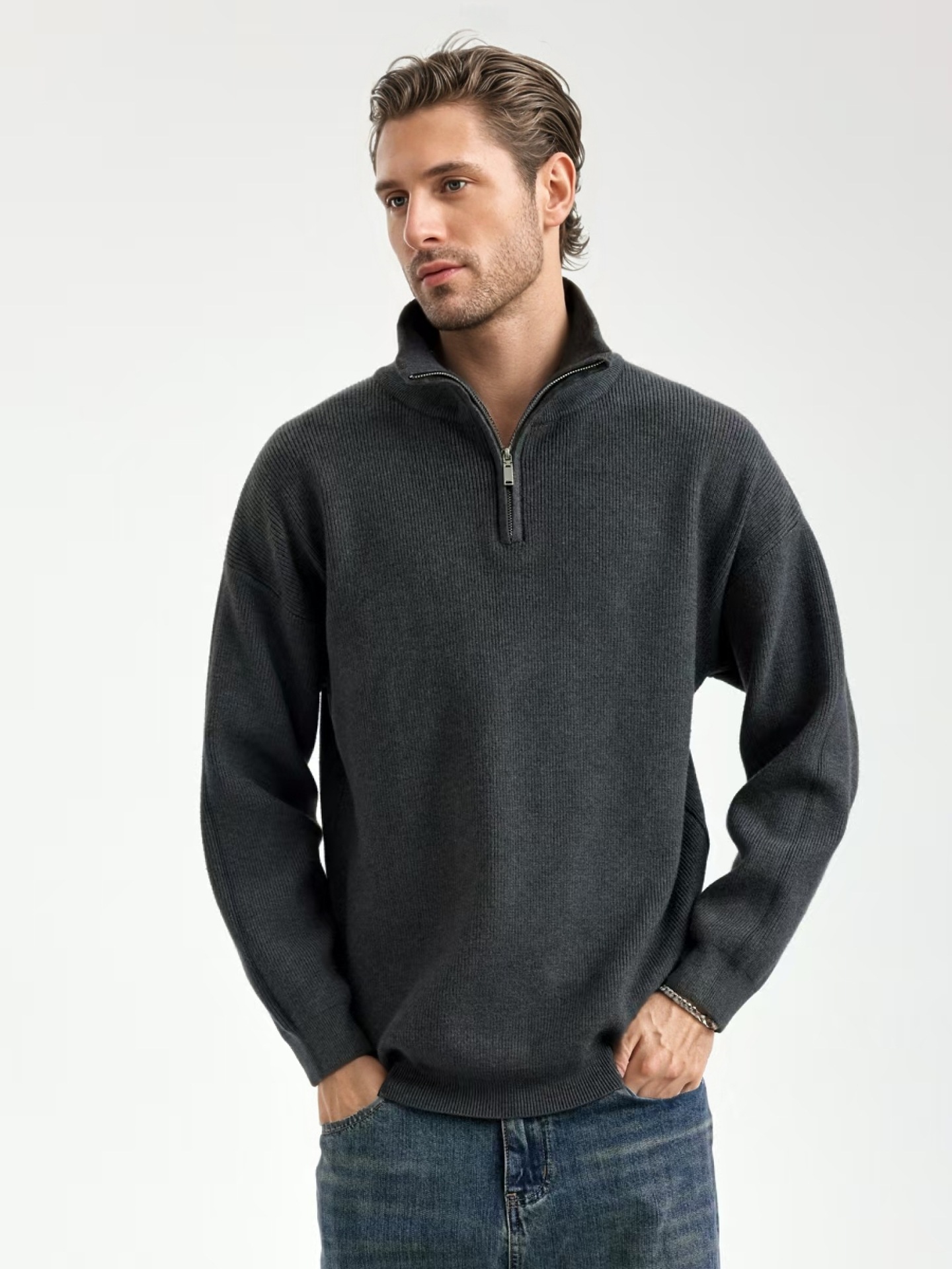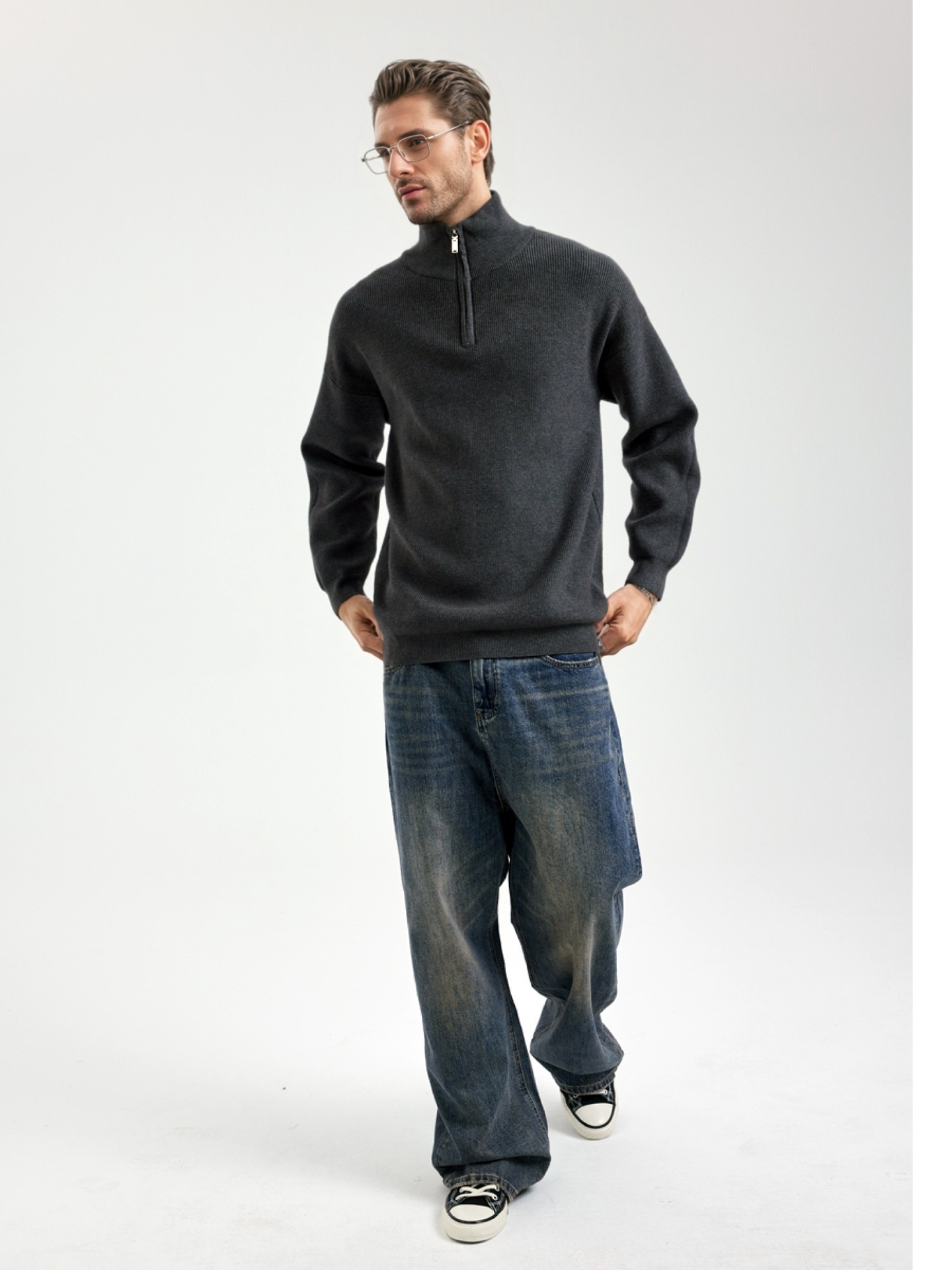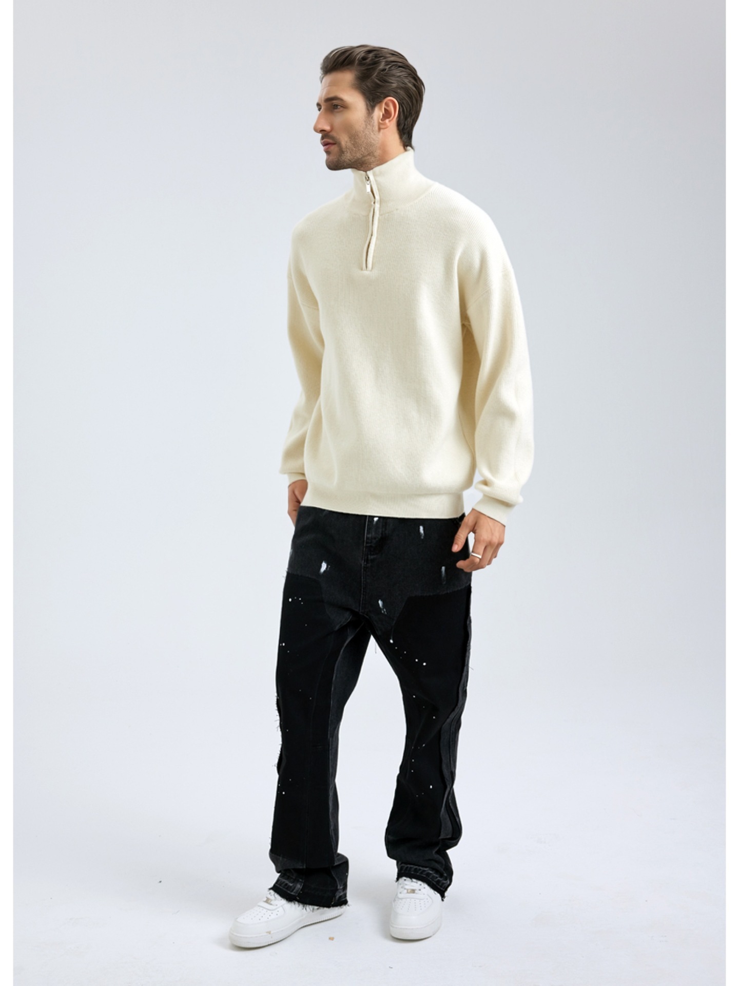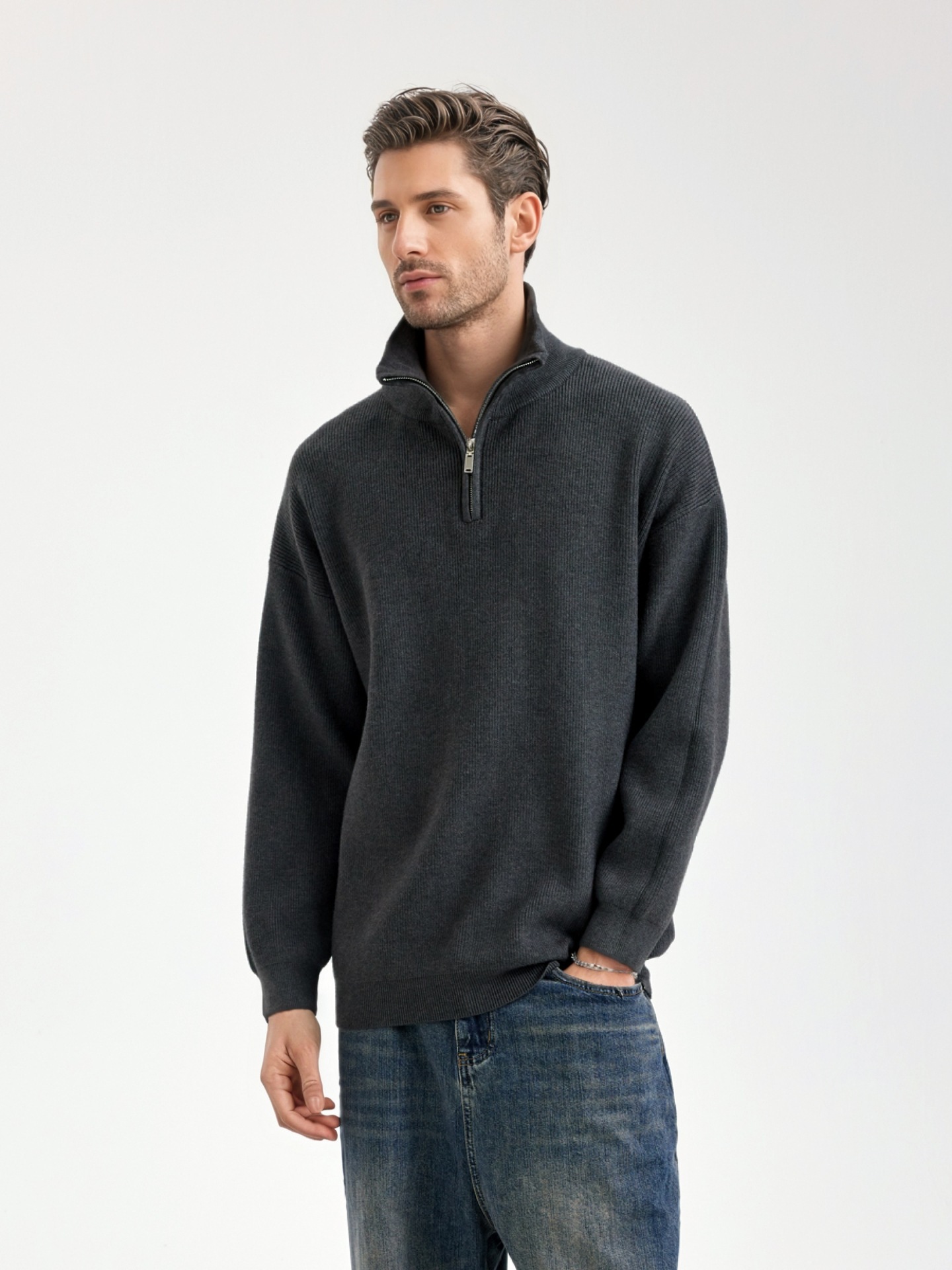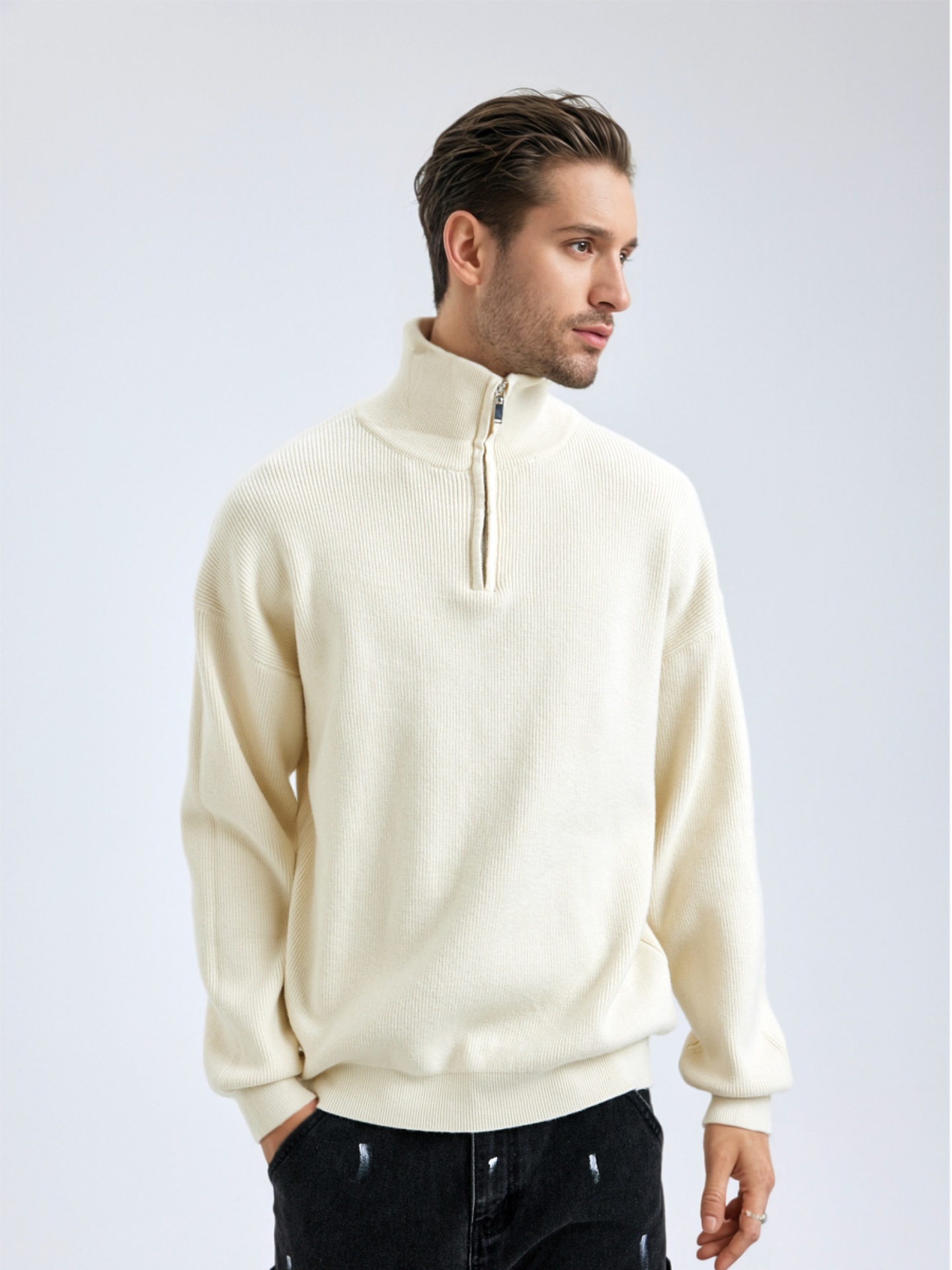 Suéter de hombre transfronterizo otoño y invierno nuevo estilo americano perezoso viento medio cremallera suelta plummet de color sólido suéter de hombre