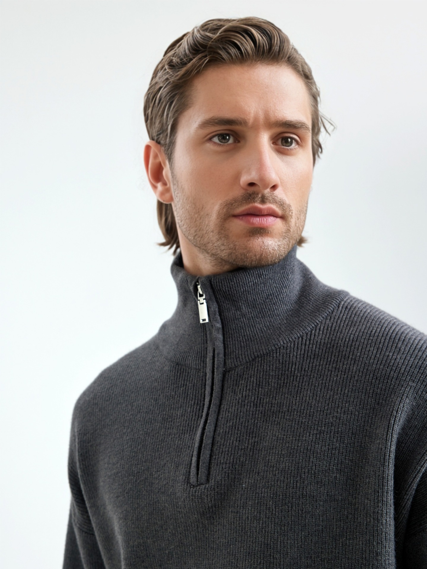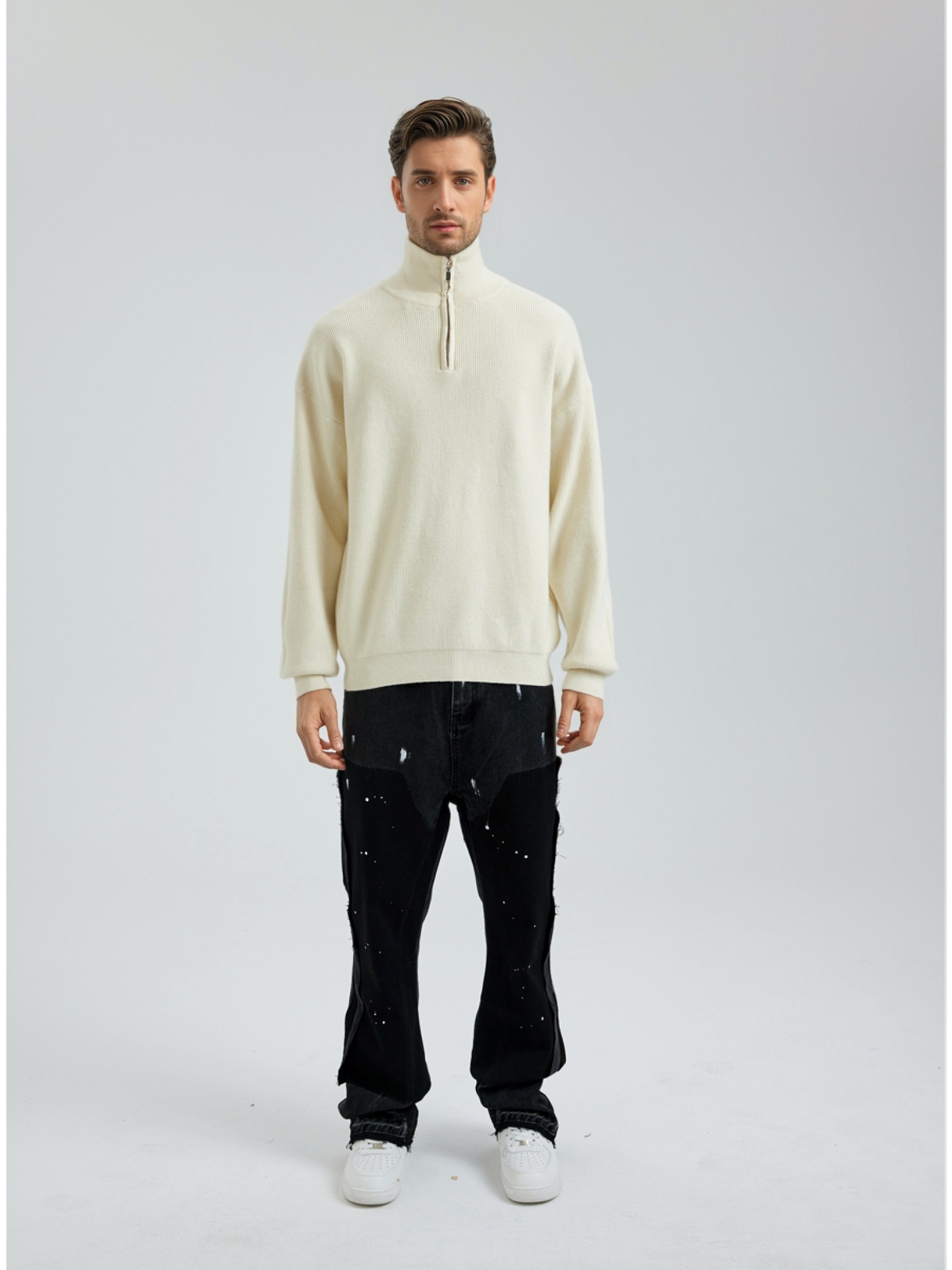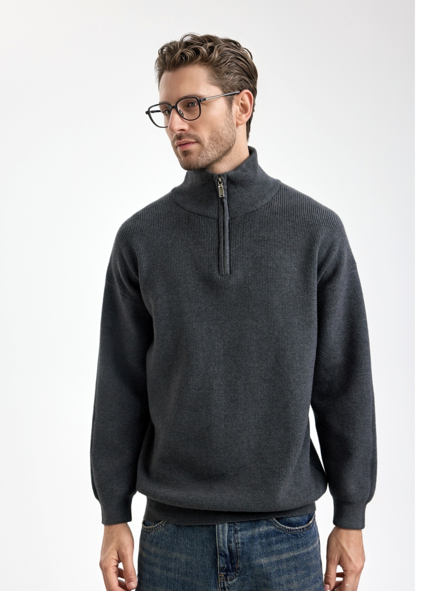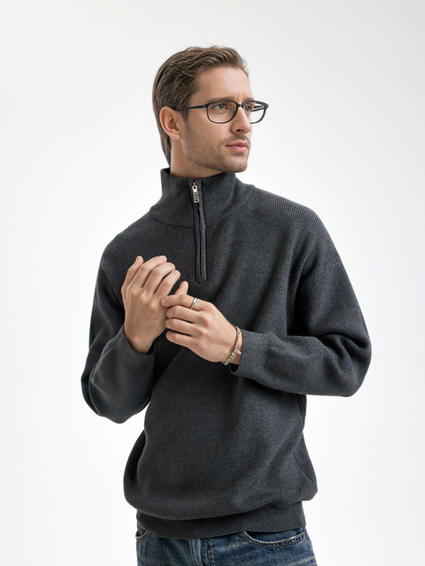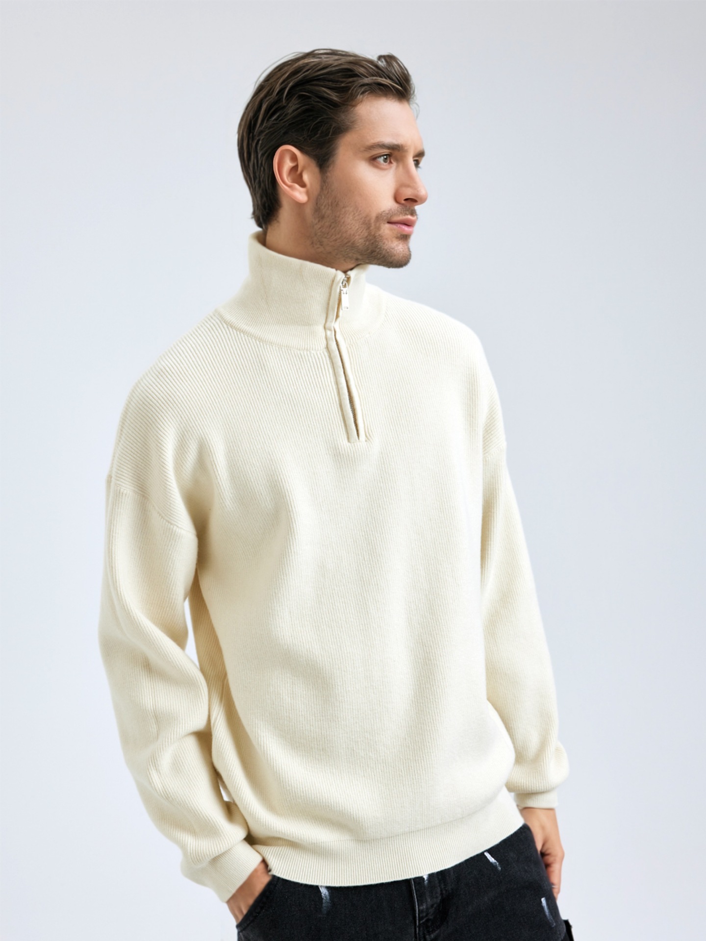 Suéter de hombre transfronterizo otoño y invierno nuevo estilo americano perezoso viento medio cremallera suelta plummet de color sólido suéter de hombre