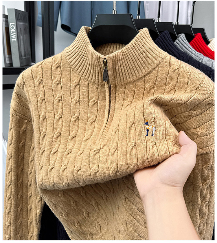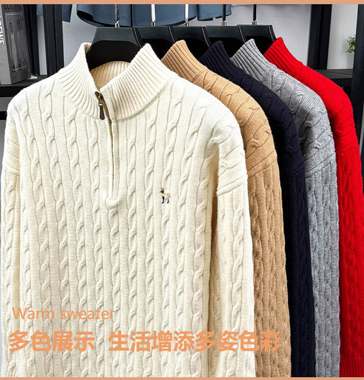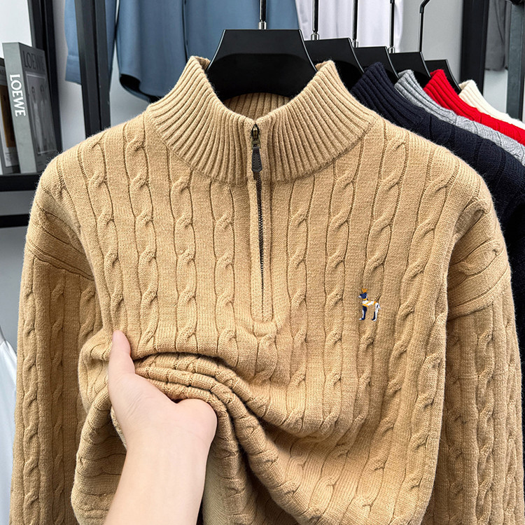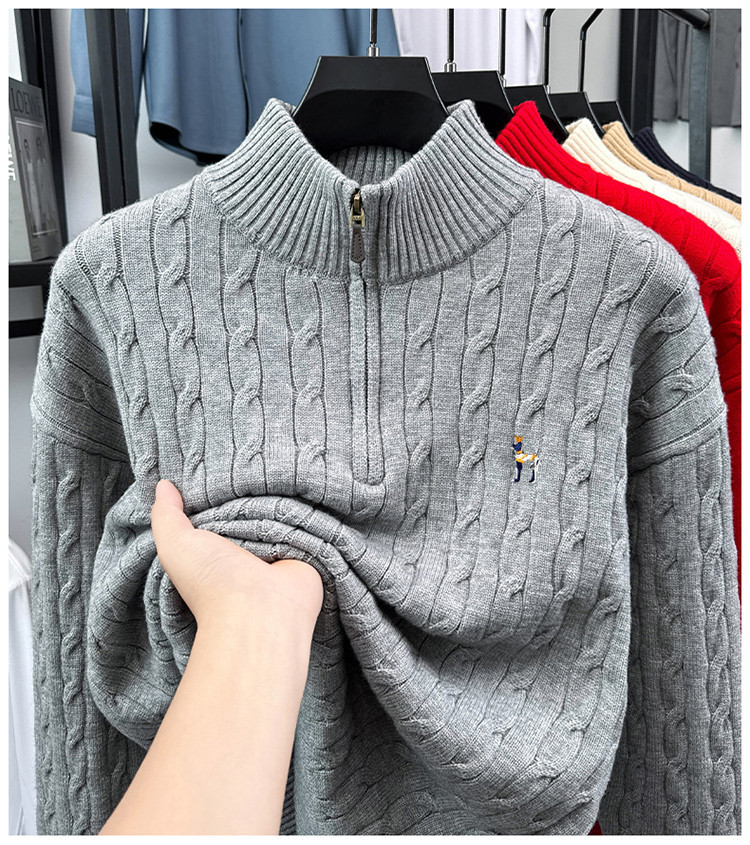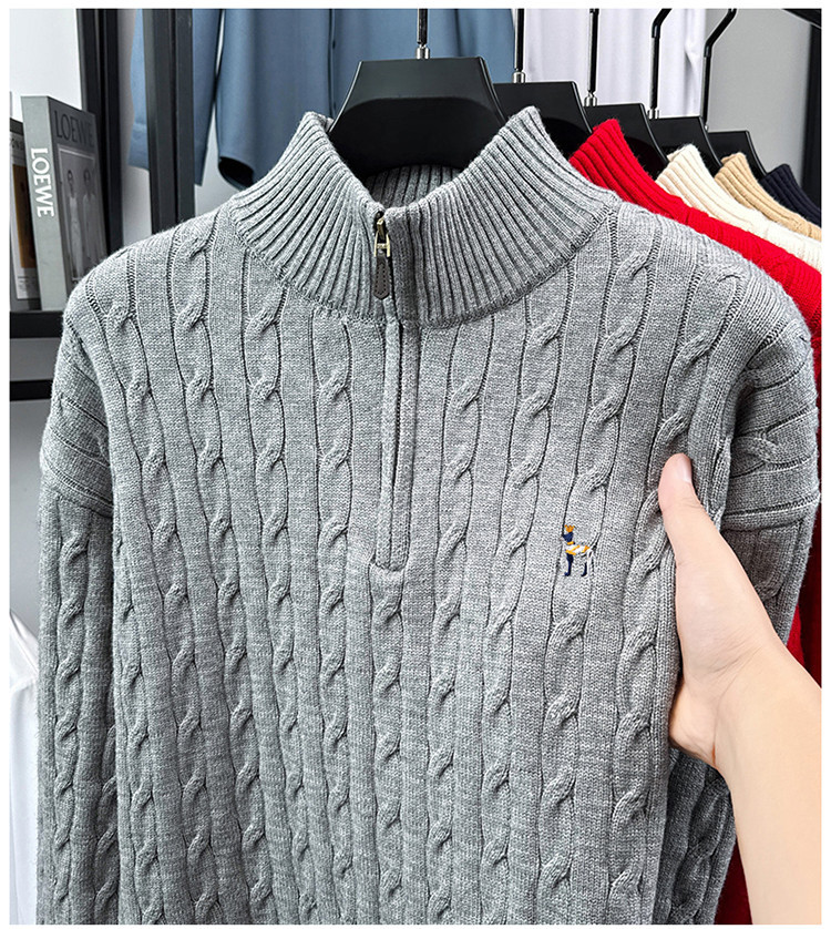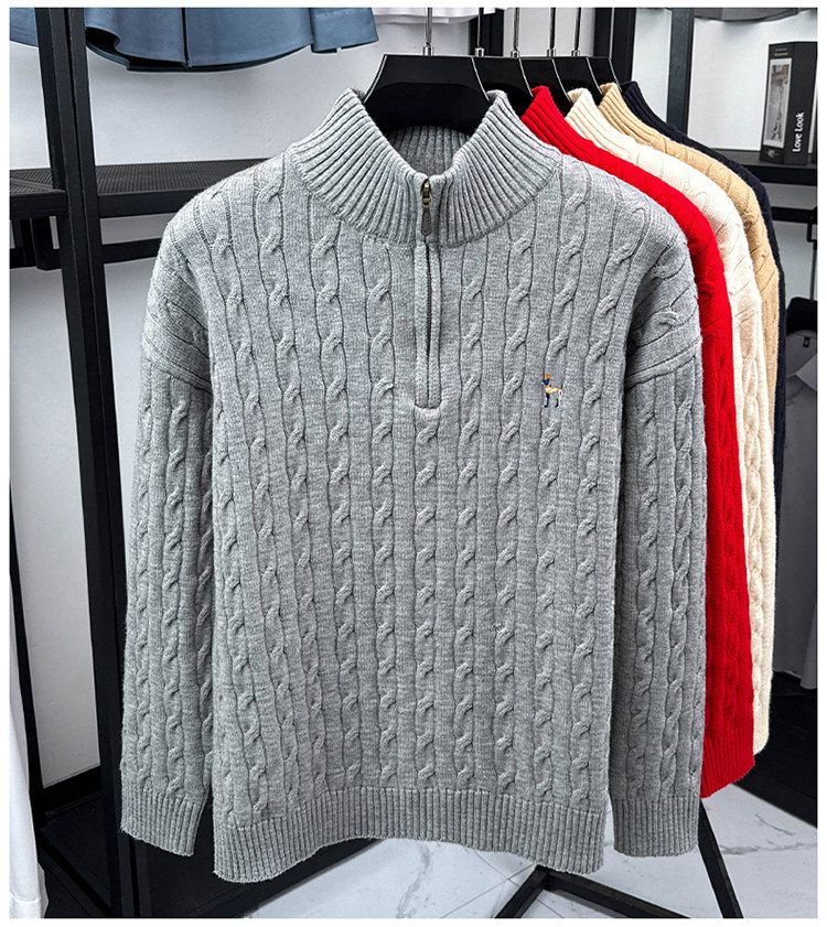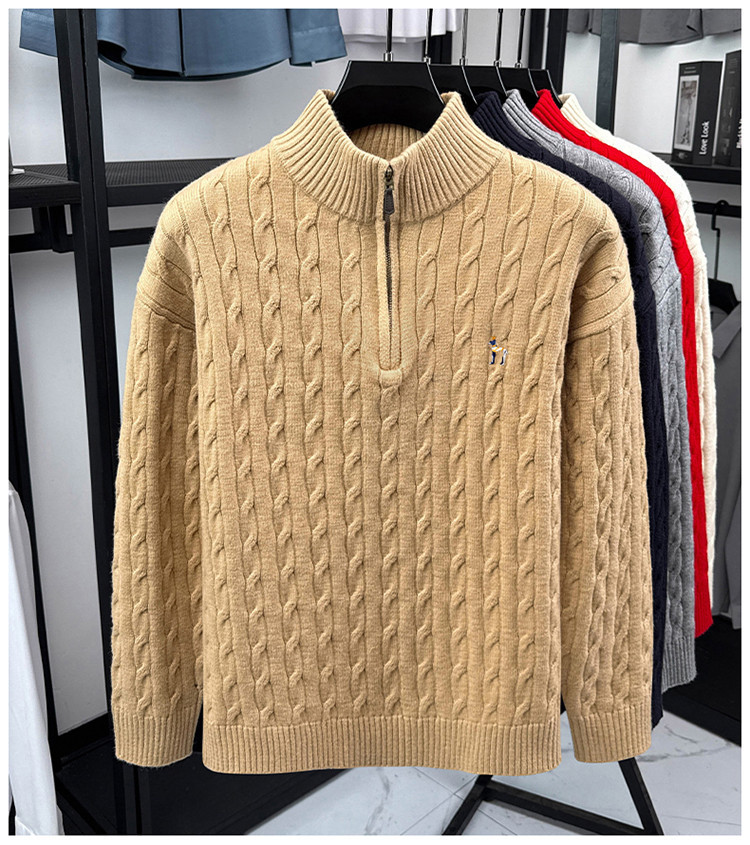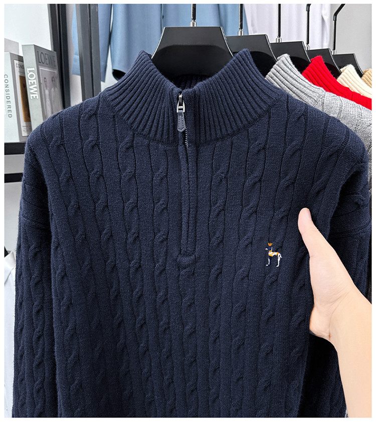 Suéter de cuello de medio cremallera hombre otoño invierno marca de moda bordada calentamiento suéter de cuello de medio cuello casual camiseta de punto de hombre