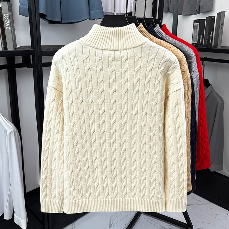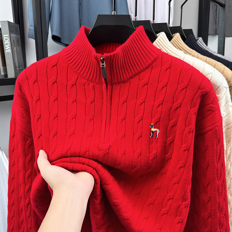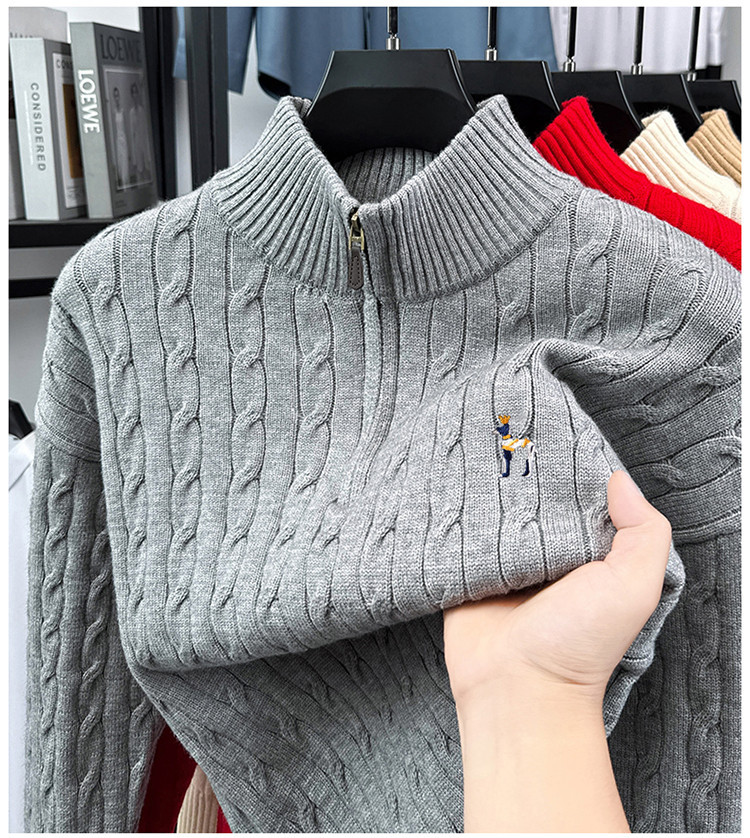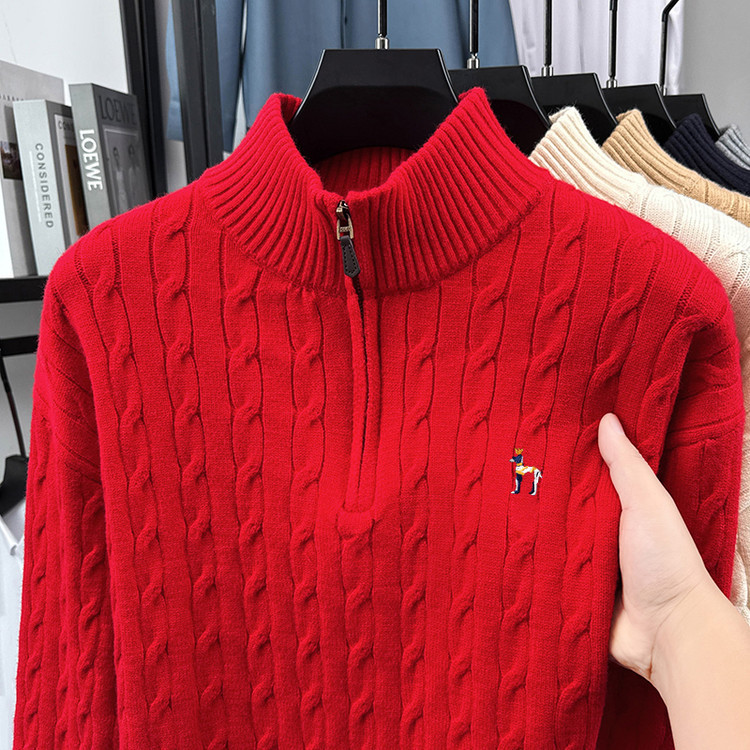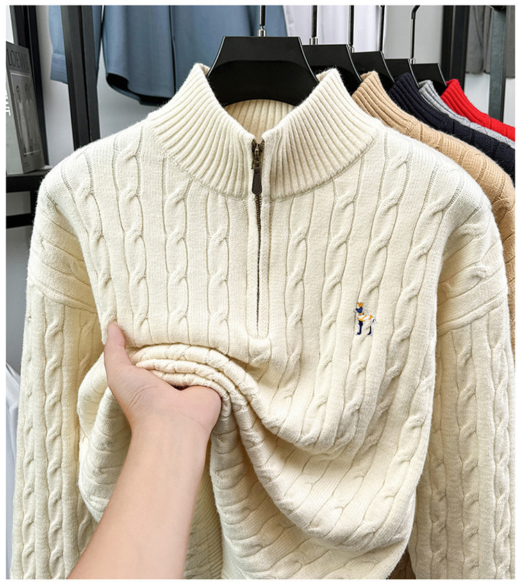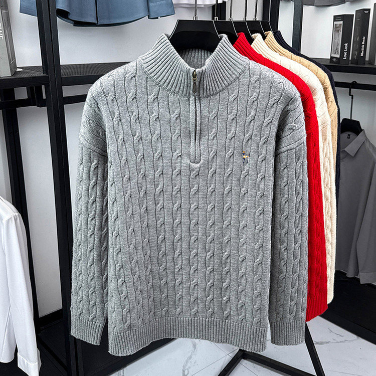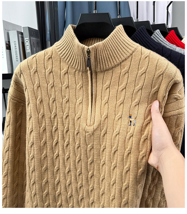 Suéter de cuello de medio cremallera hombre otoño invierno marca de moda bordada calentamiento suéter de cuello de medio cuello casual camiseta de punto de hombre