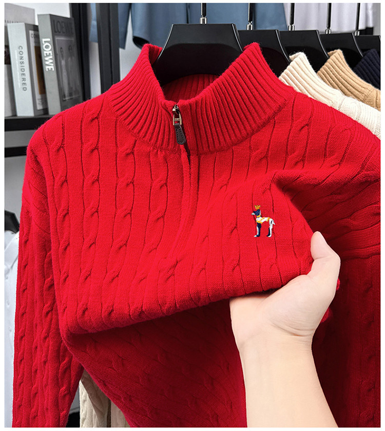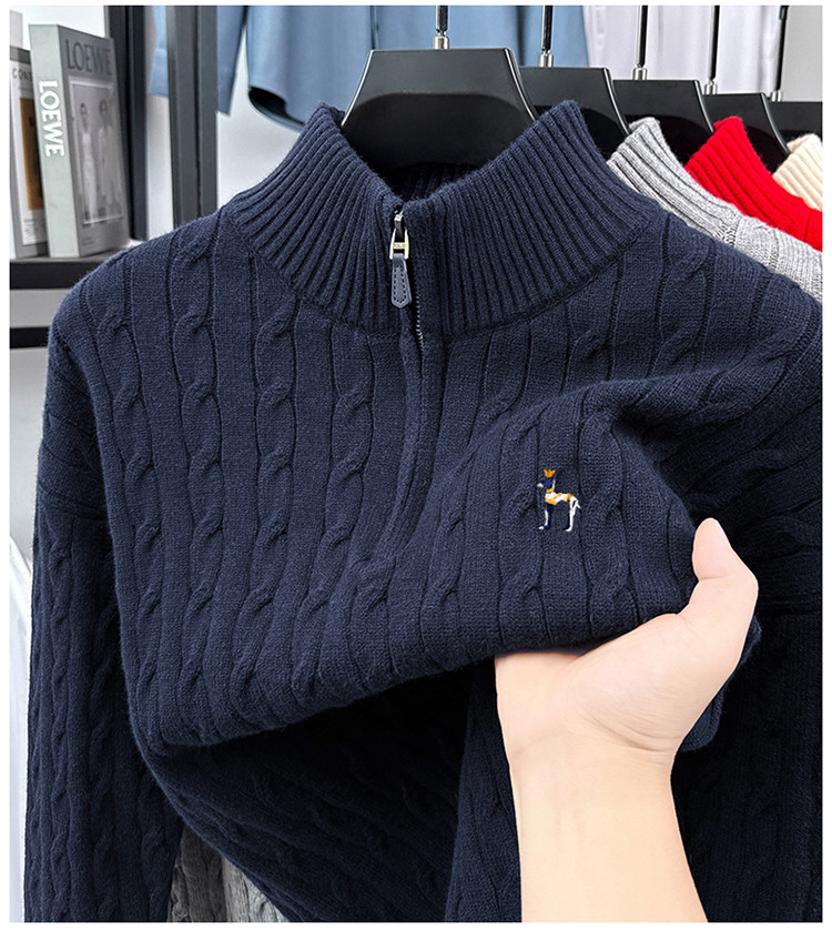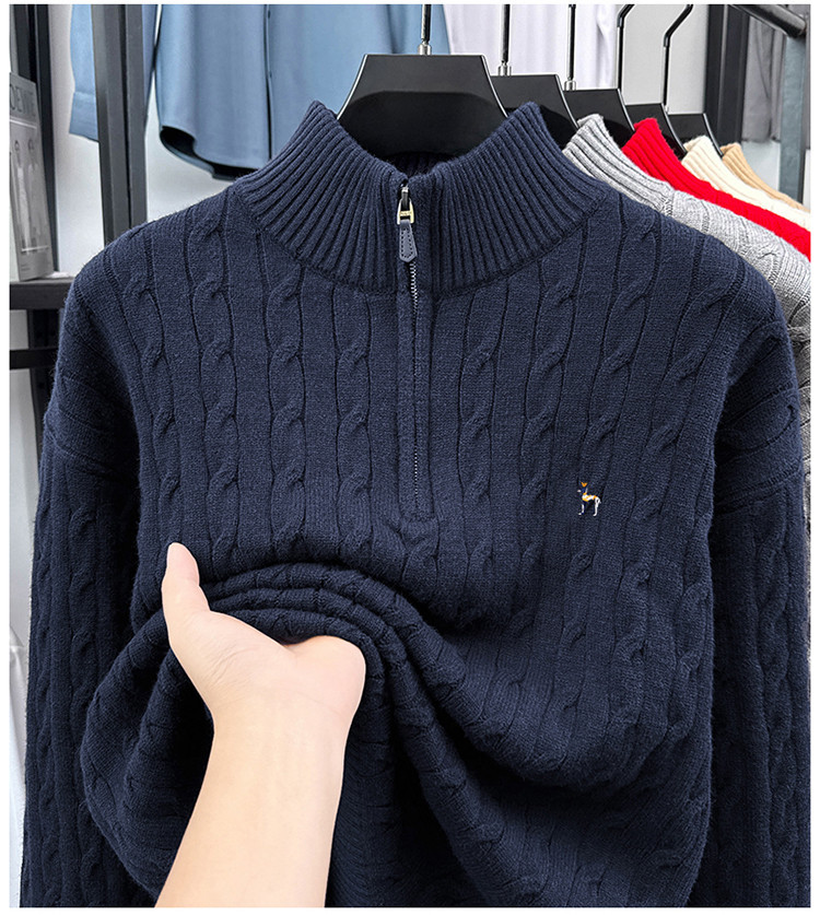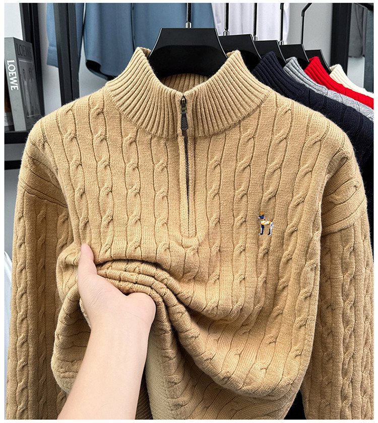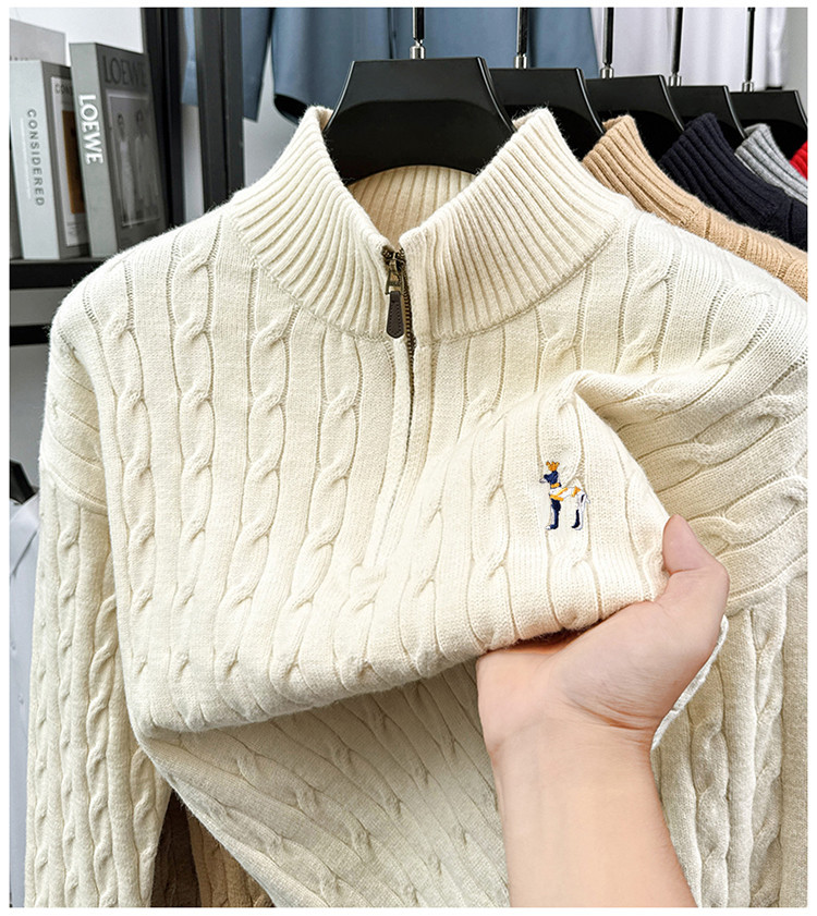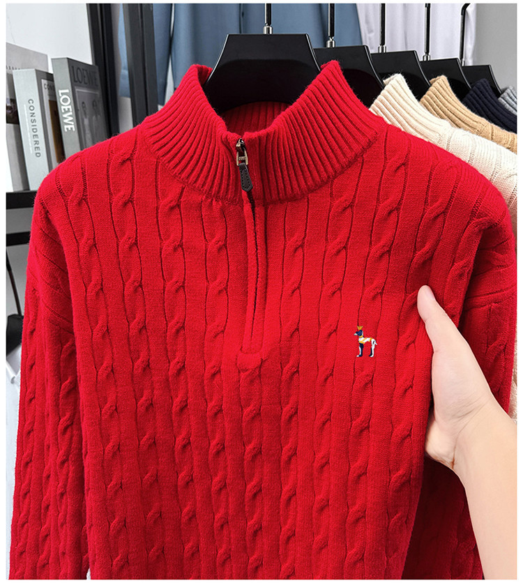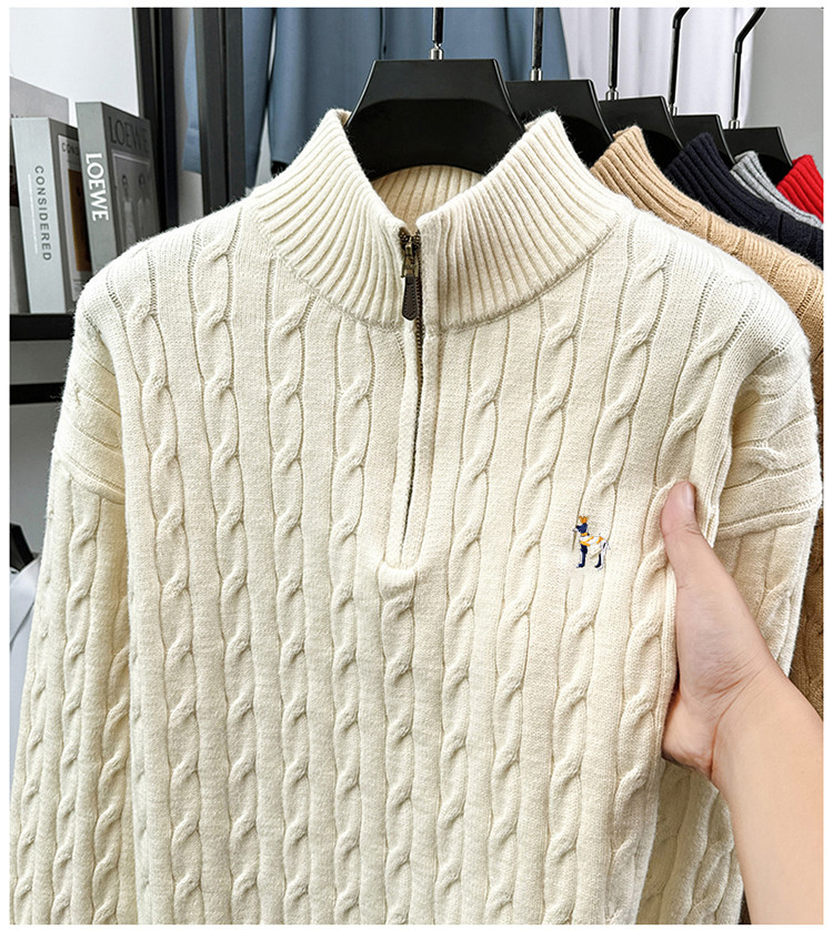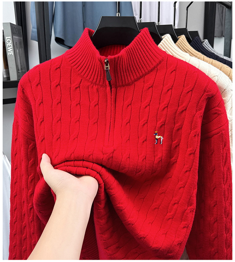 Suéter de cuello de medio cremallera hombre otoño invierno marca de moda bordada calentamiento suéter de cuello de medio cuello casual camiseta de punto de hombre