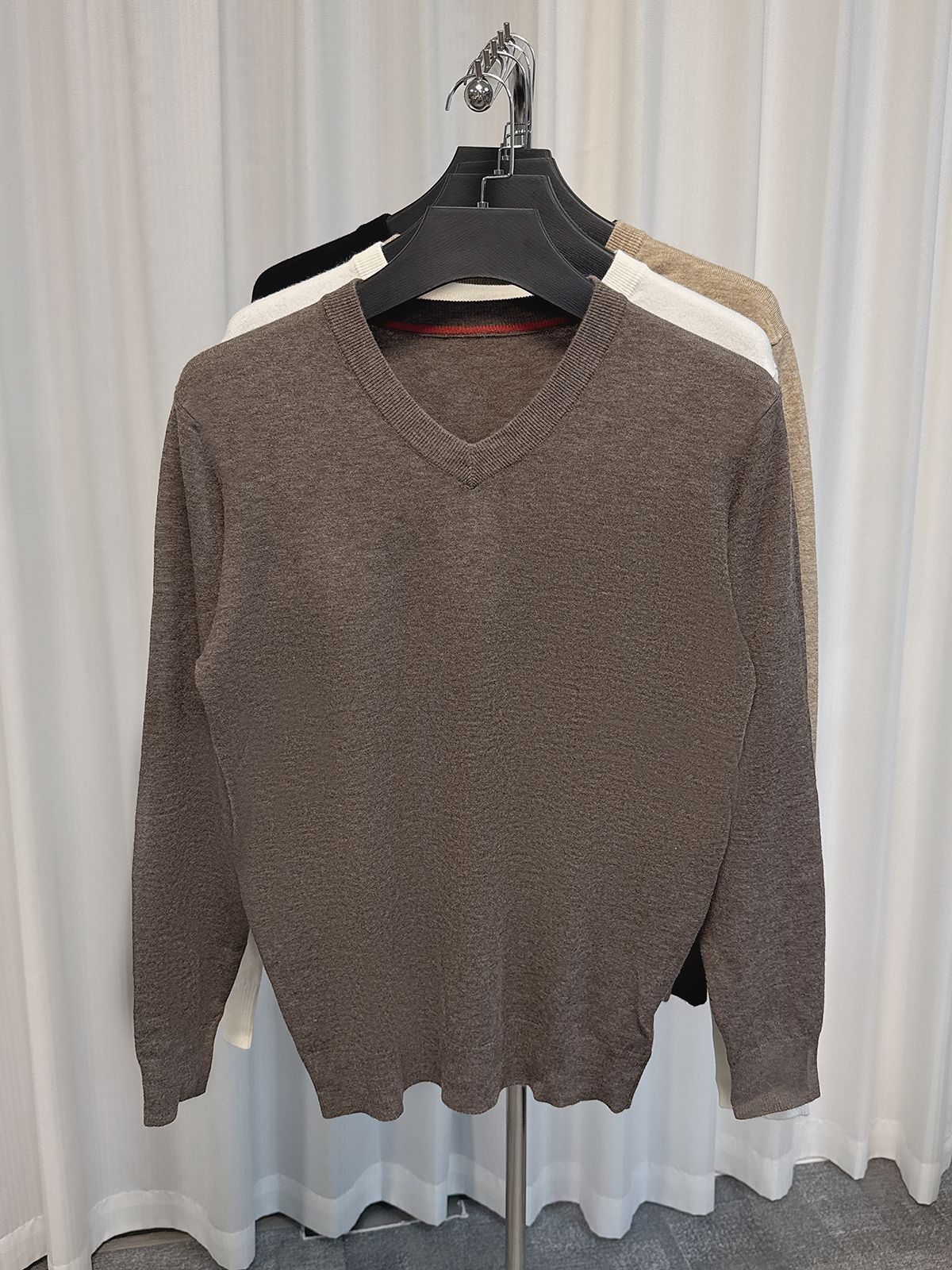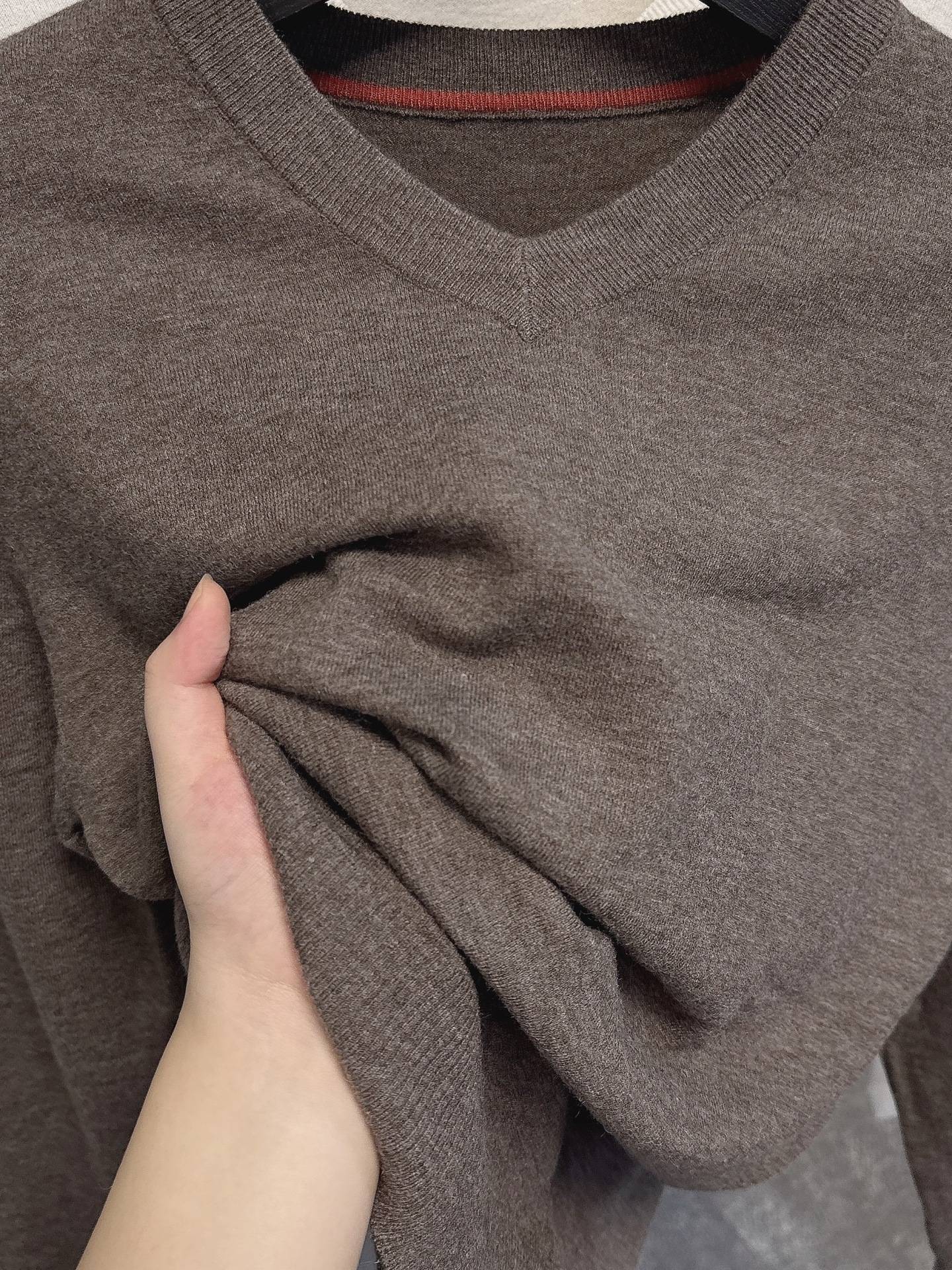 Hombres suéter de lana de cuello en V otoño y invierno nuevo color sólido pullover de punto suéter de fondo camisa casual estilo de moda de hombre