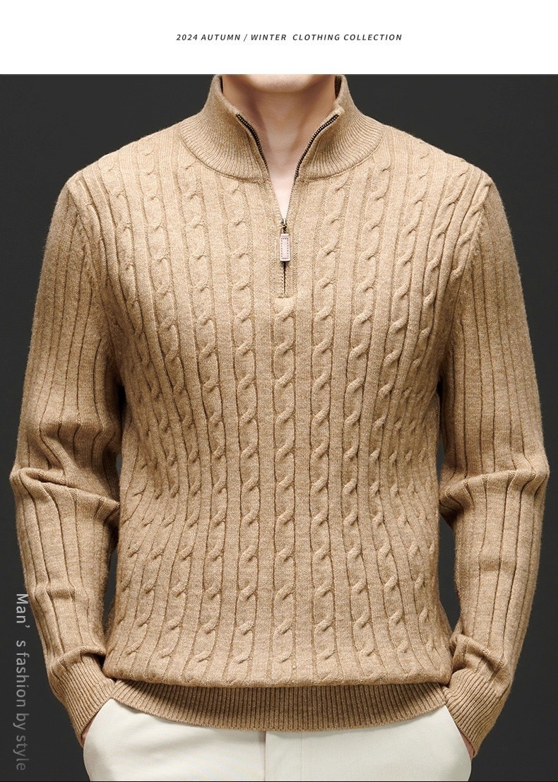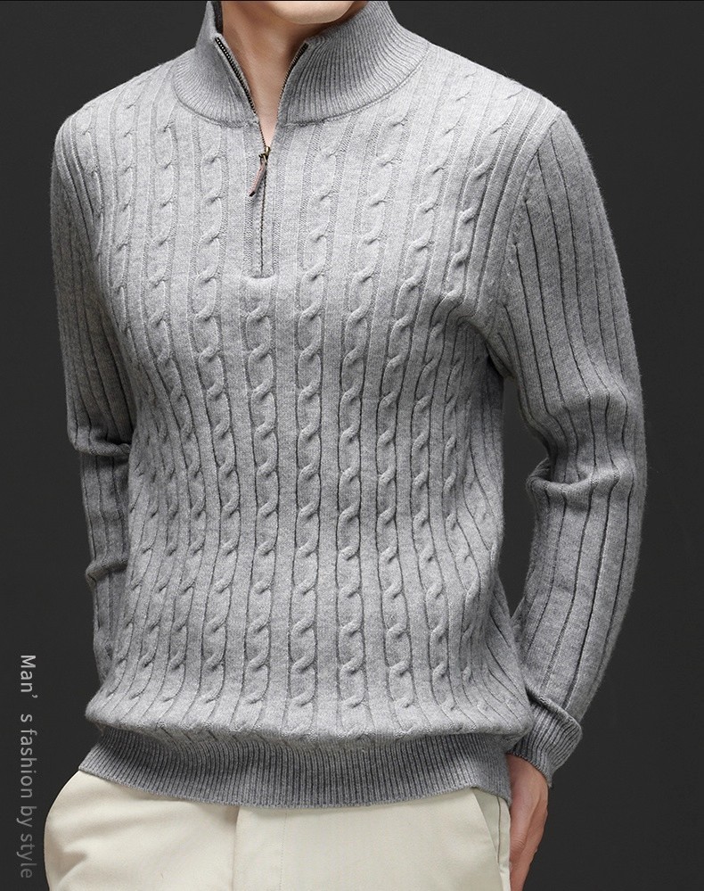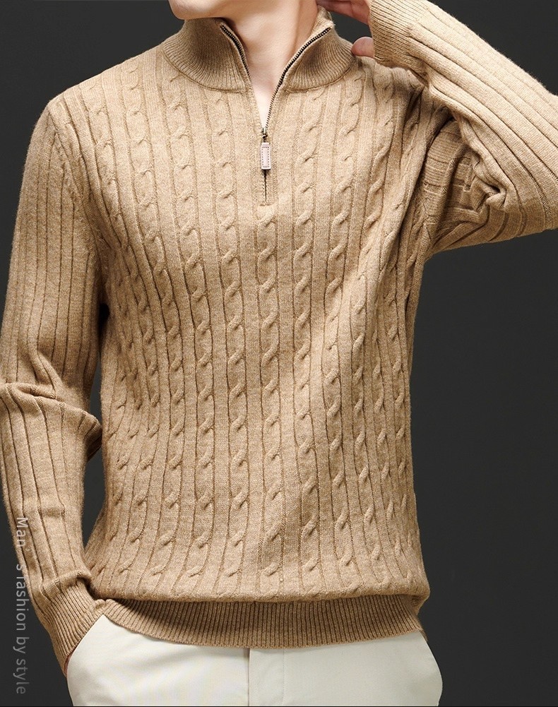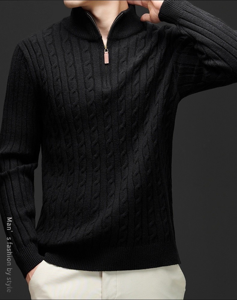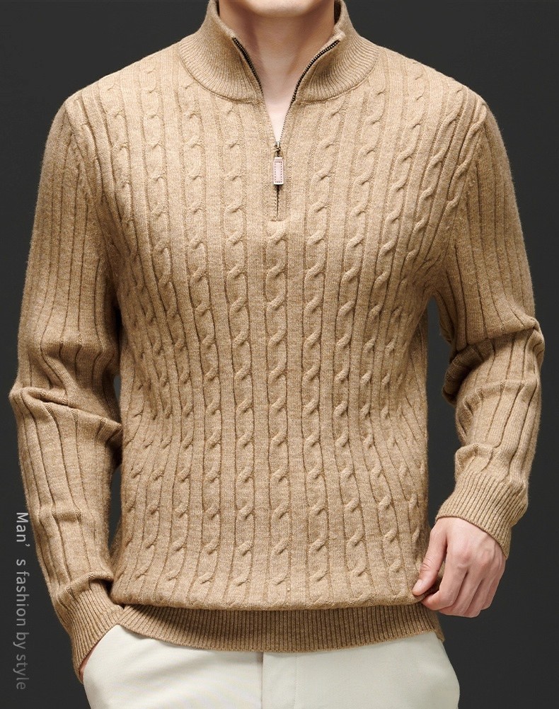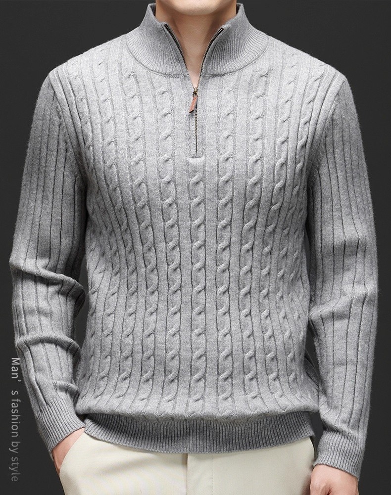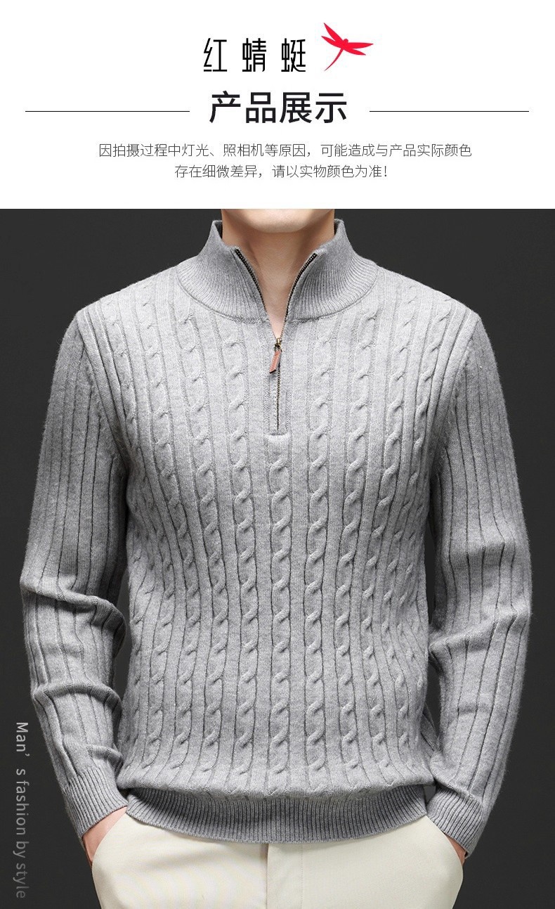 Explosiones transfronterizas de tamaño europeo medio cremallera jersey de hilado suéter hombre viejo viento de negocios otoño invierno fábrica al por mayor