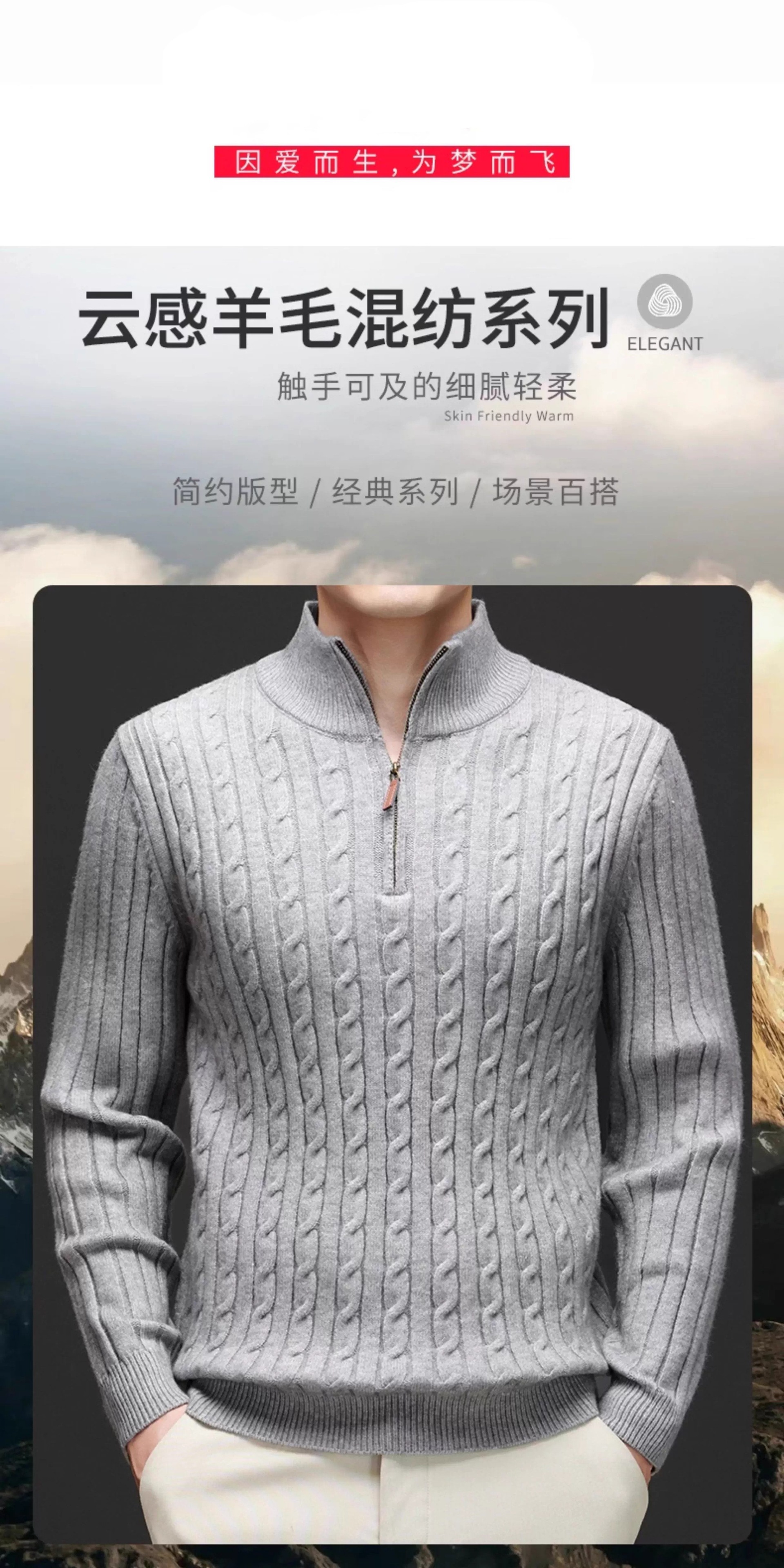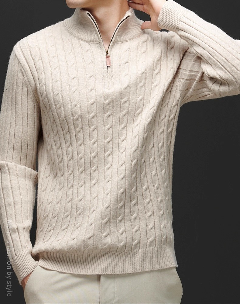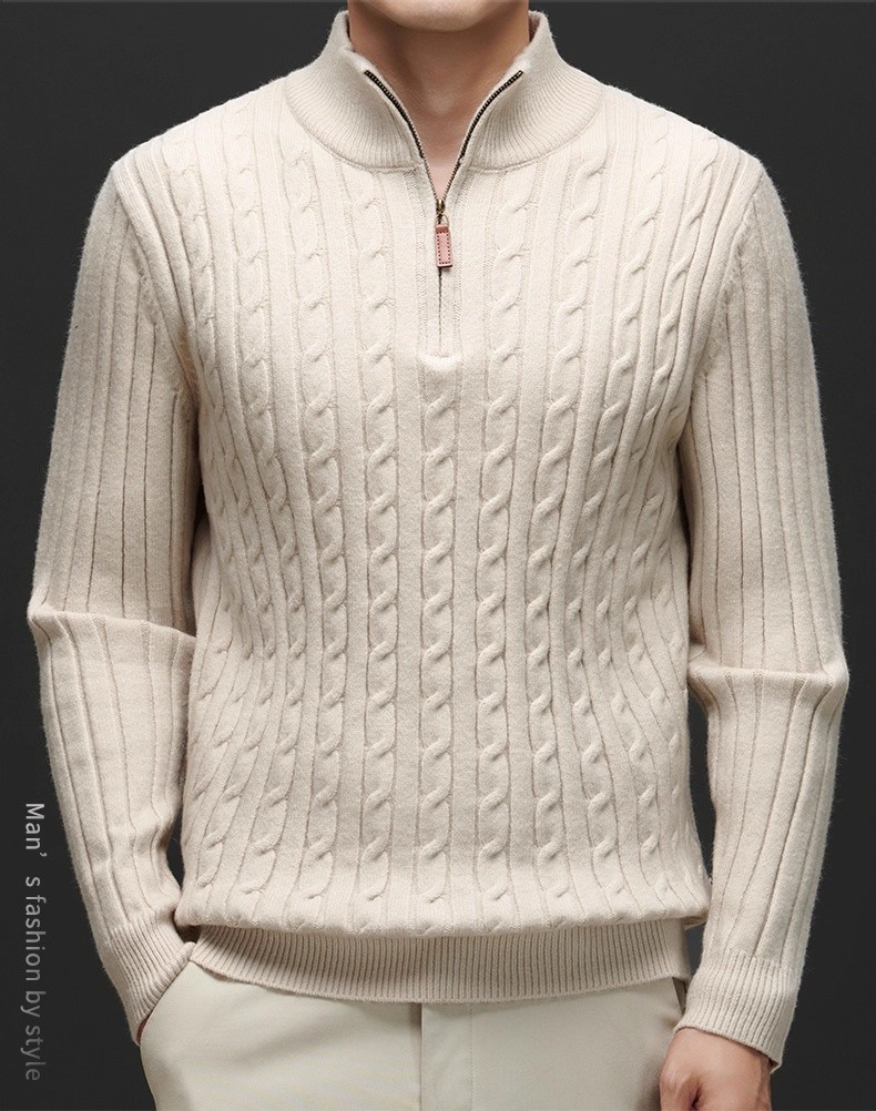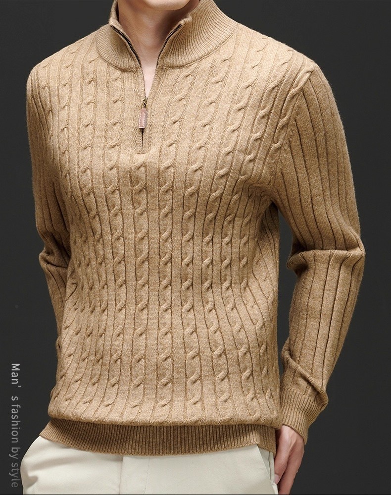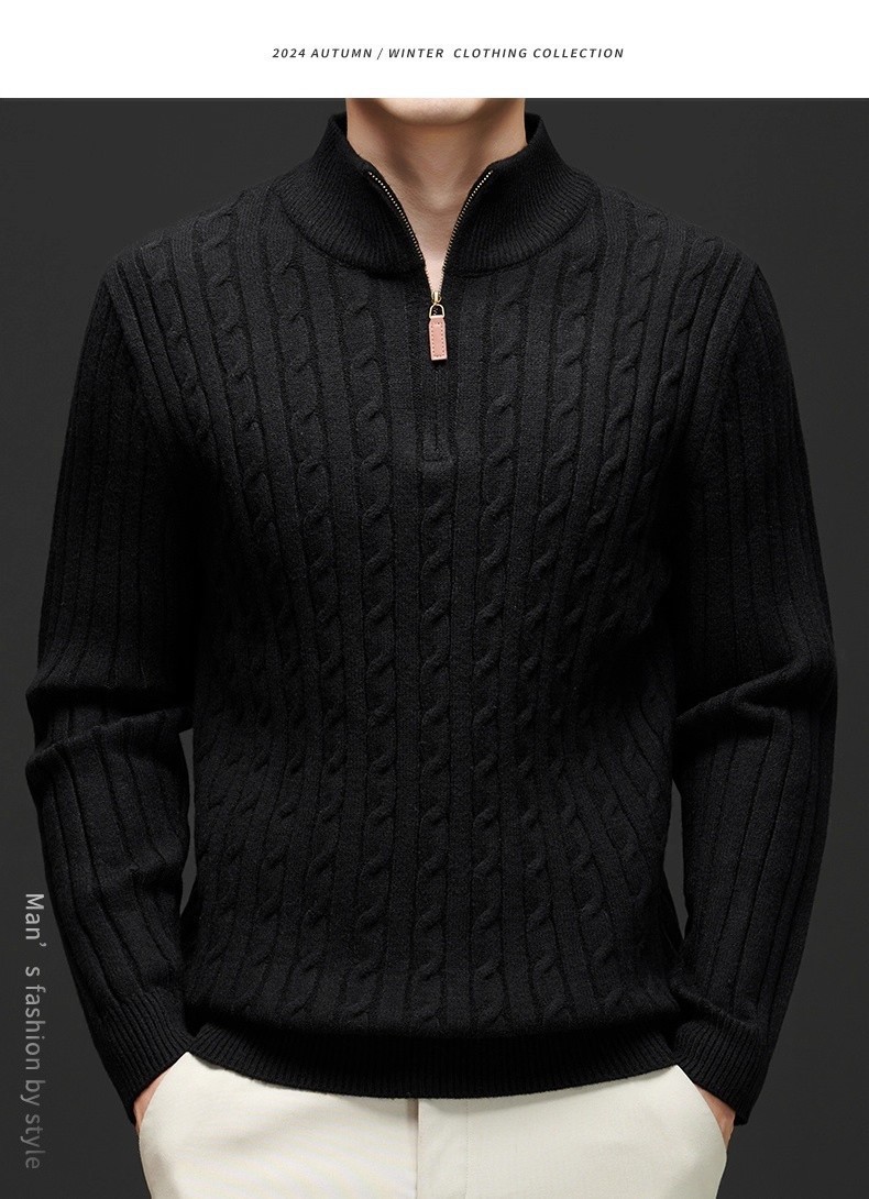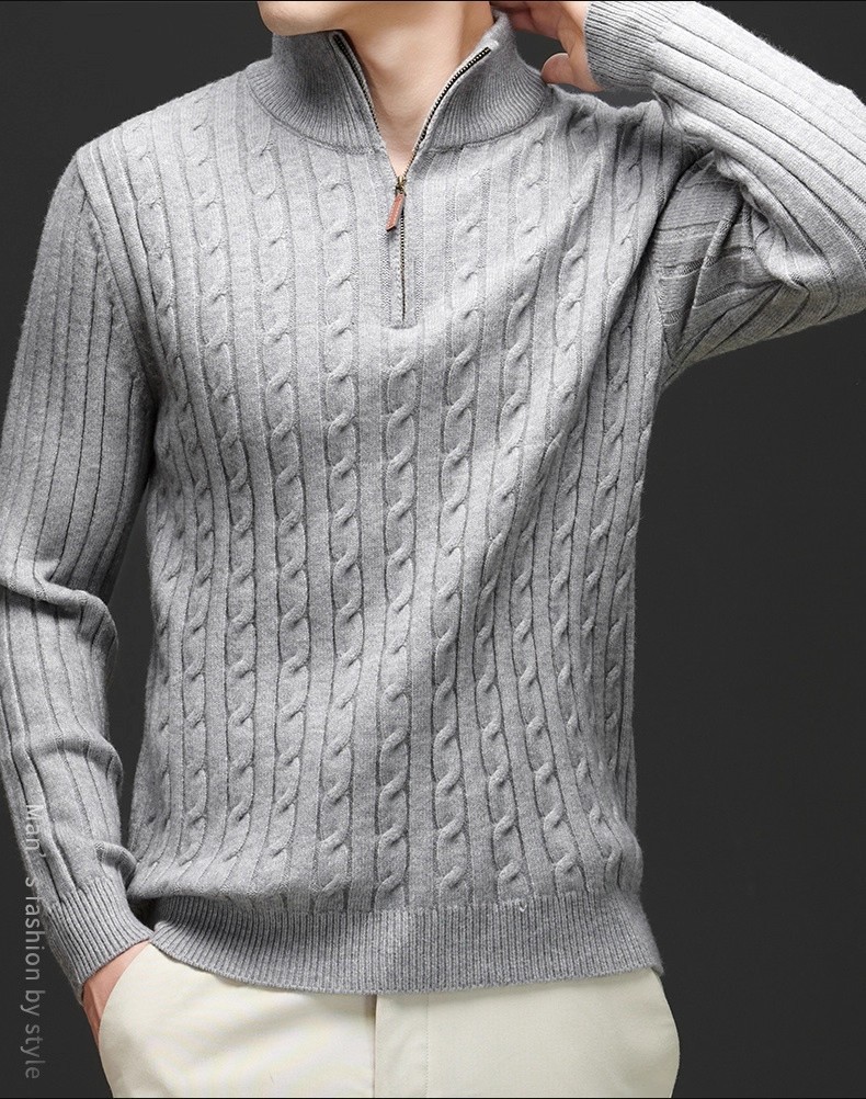Explosiones transfronterizas de tamaño europeo medio cremallera jersey de hilado suéter hombre viejo viento de negocios otoño invierno fábrica al por mayor