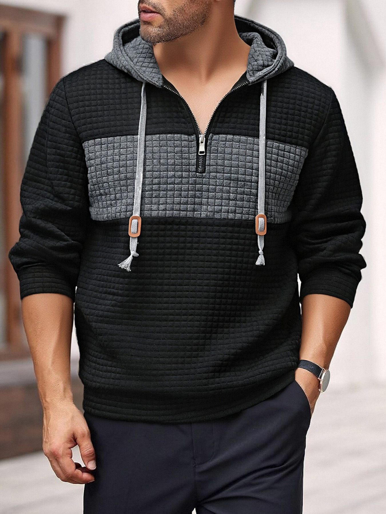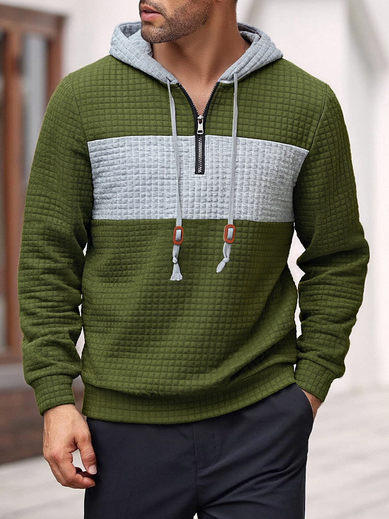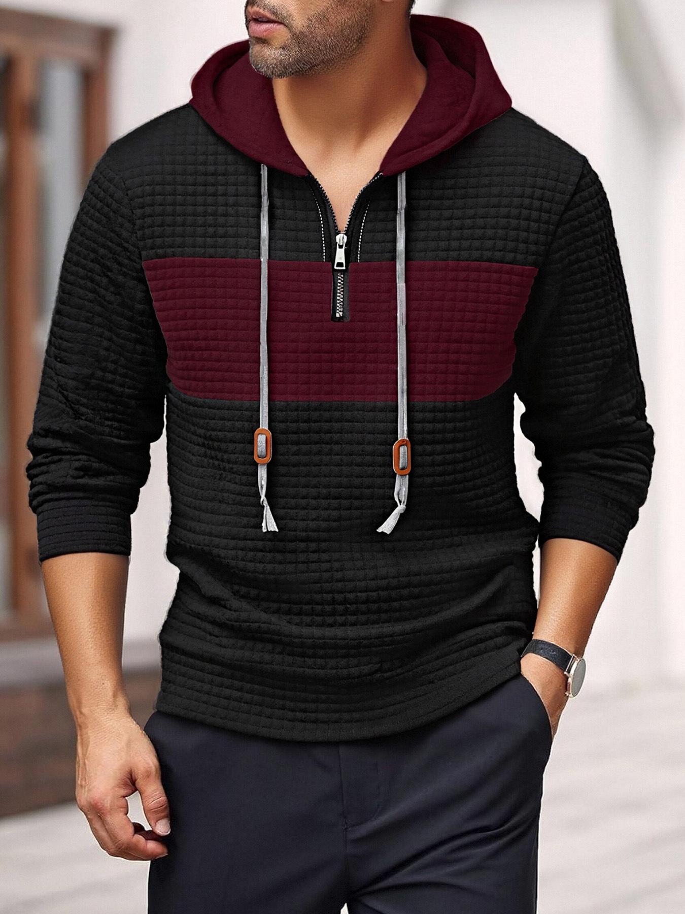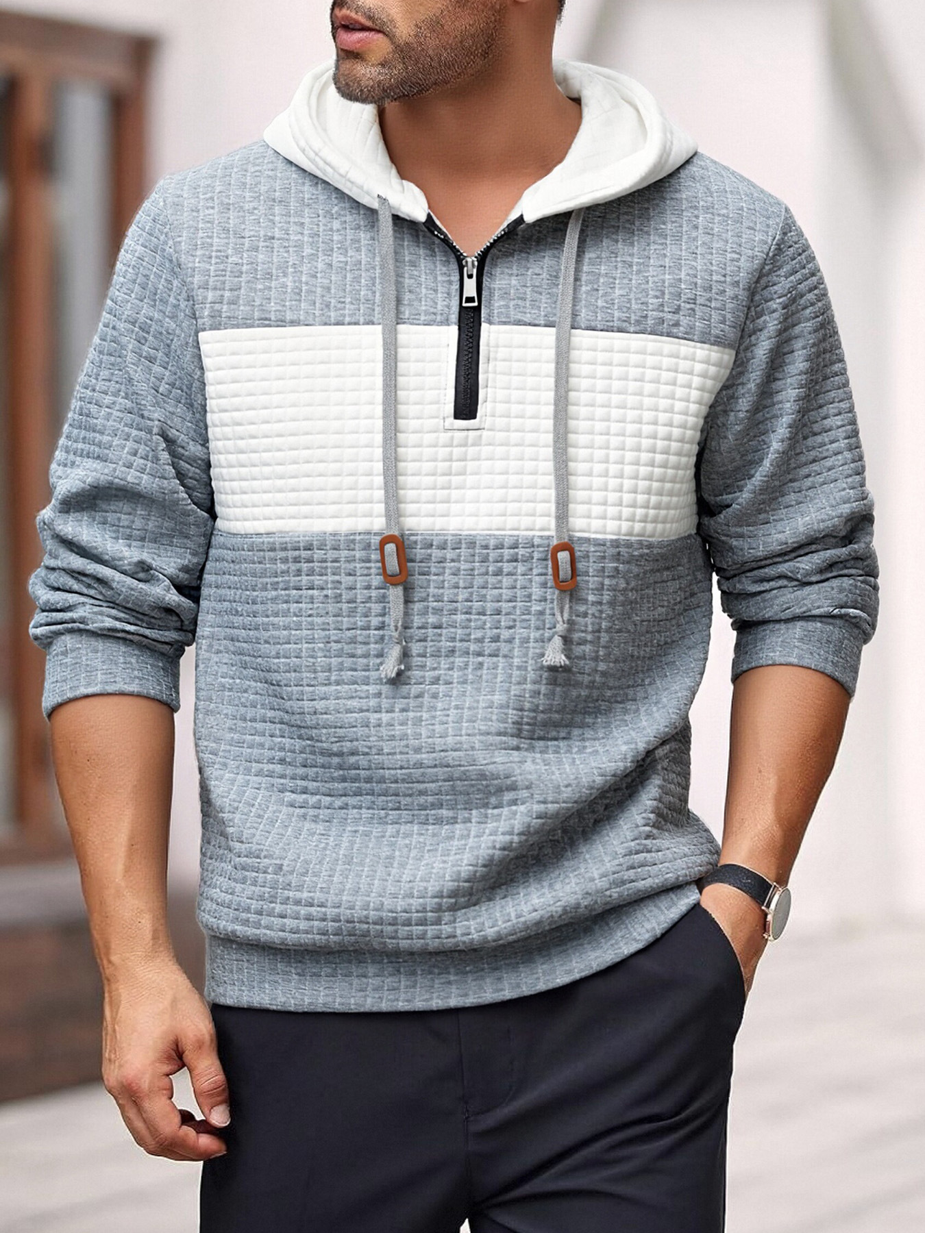 Europa tamaño Amazon primavera y otoño hombre nuevo hombre color cuadrado chaqueta camiseta de mangas largas sudadera deportiva casual