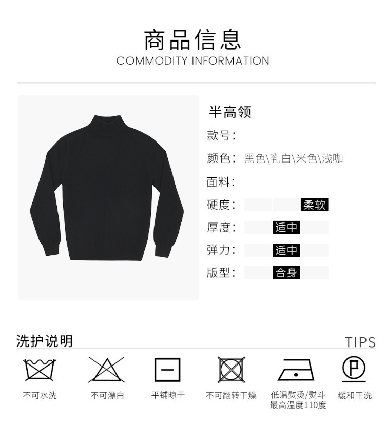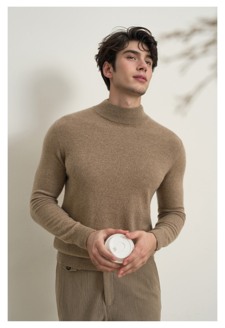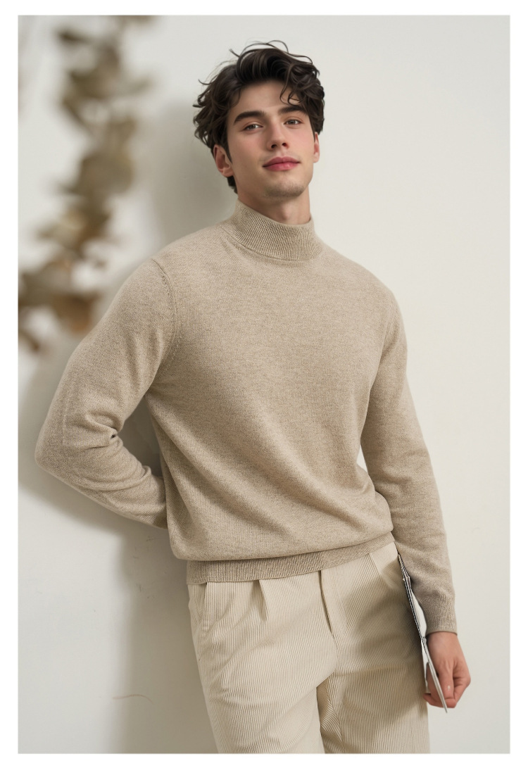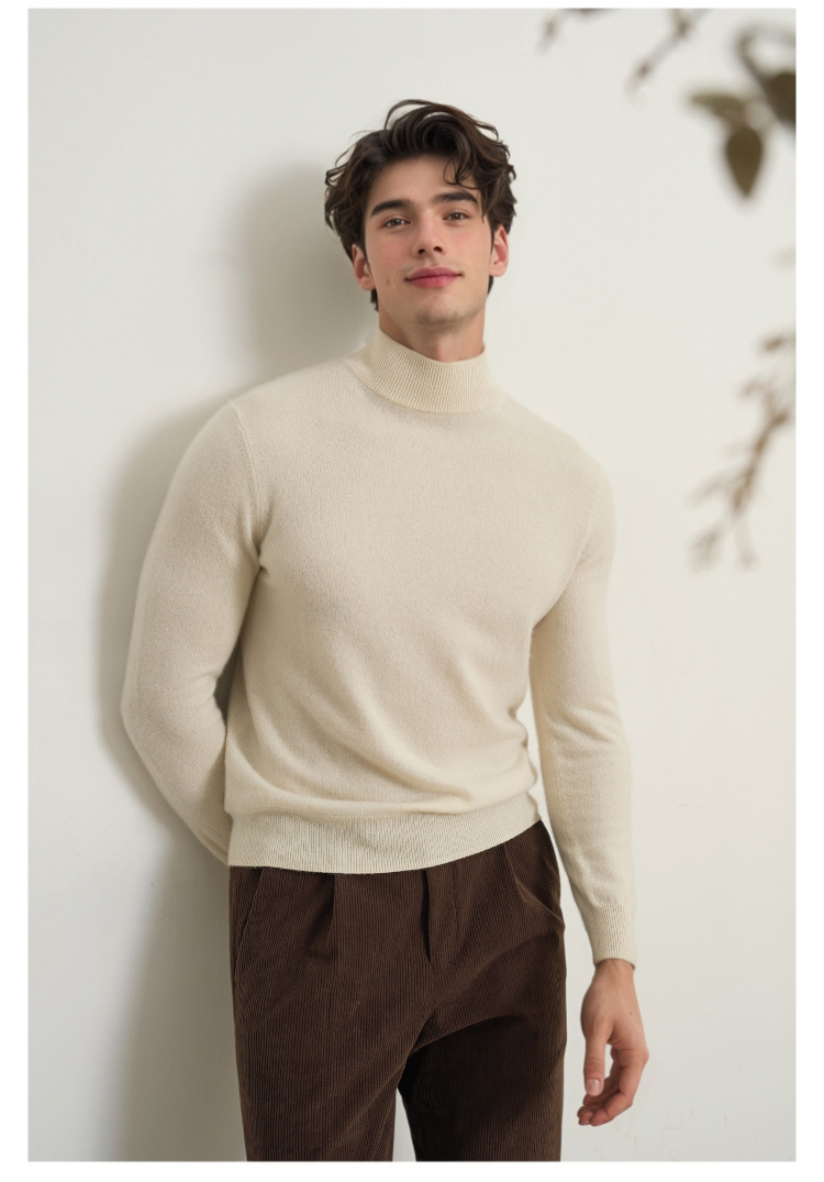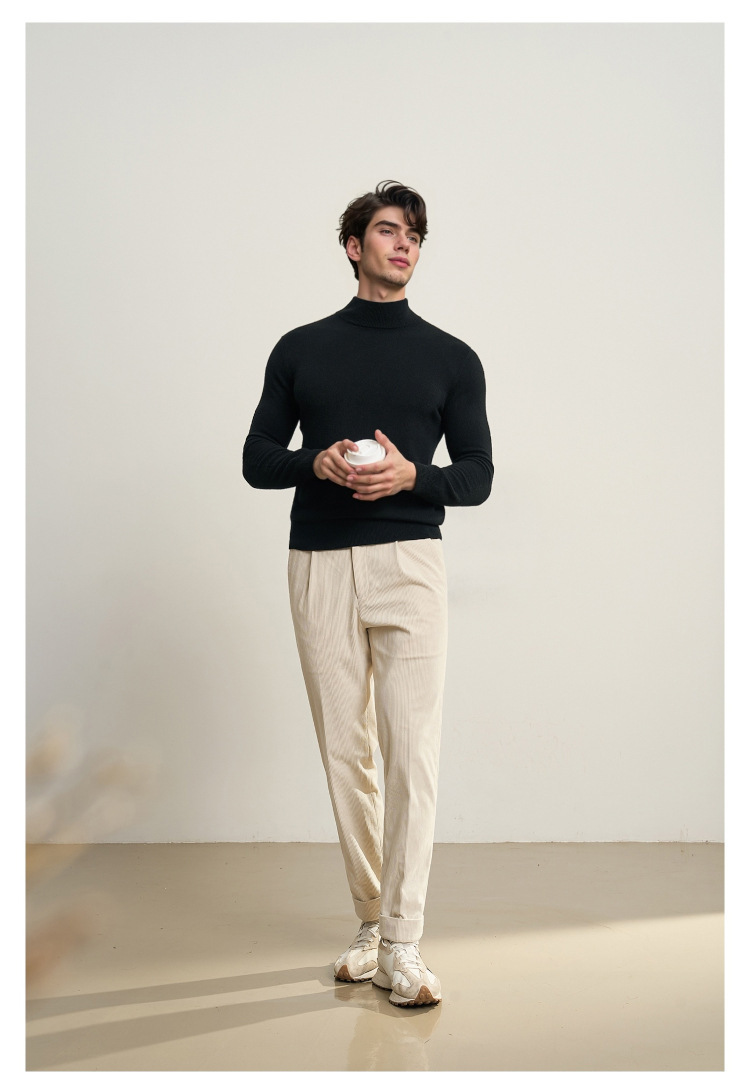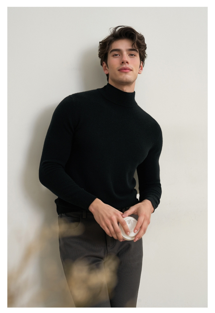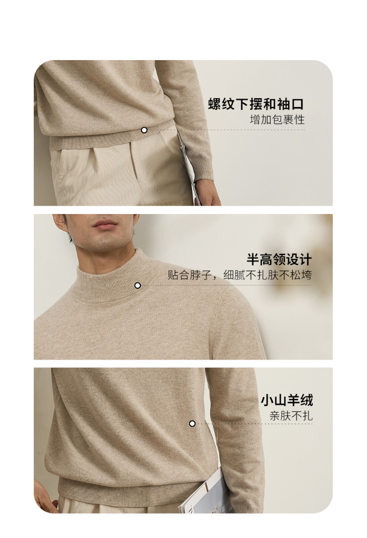 Suéter de hombre de cuello medio alto hoodie de punto de invierno delgado suéter de lana de base de hombre de cuello medio alto suéter de hombre