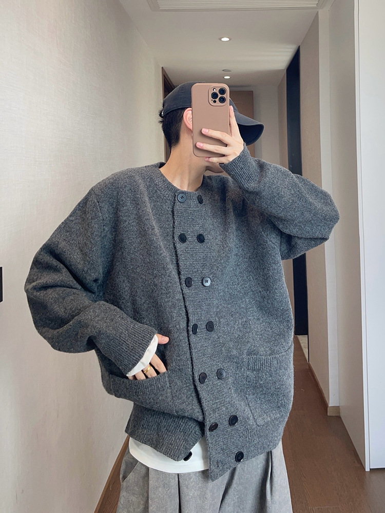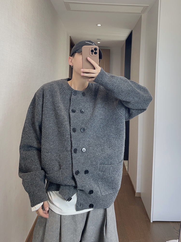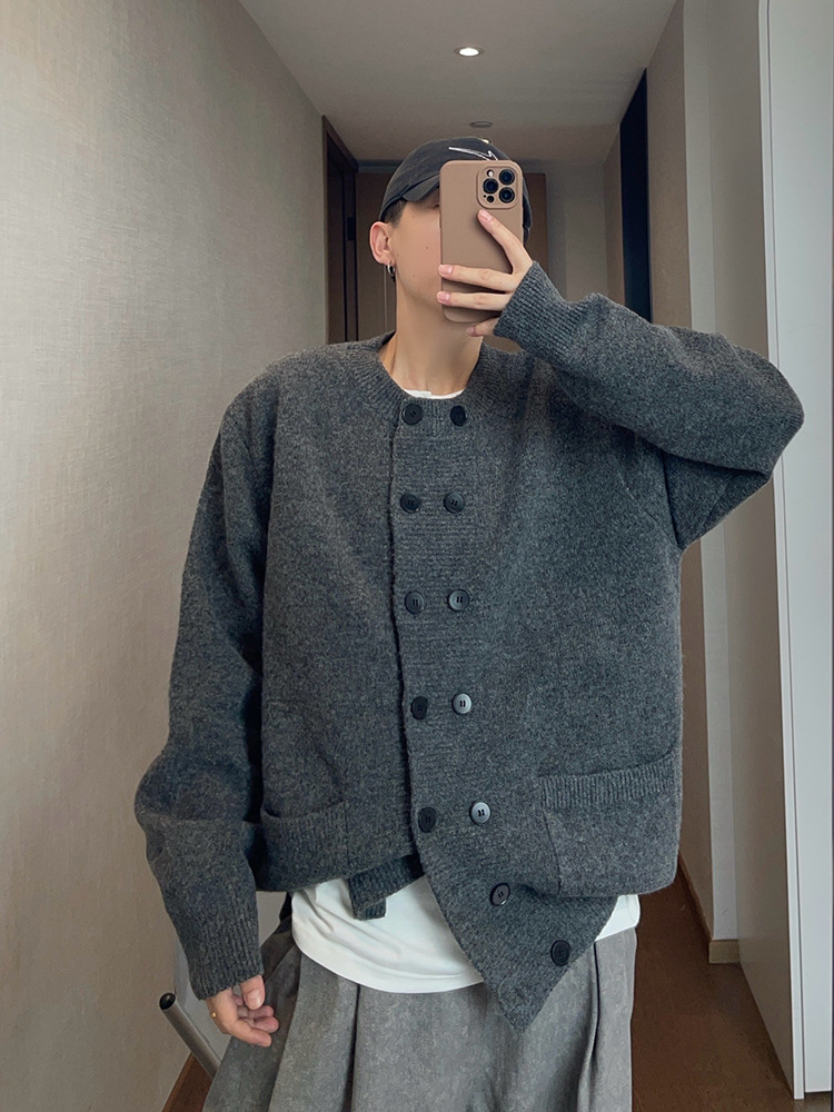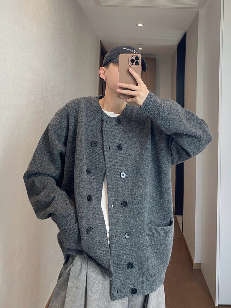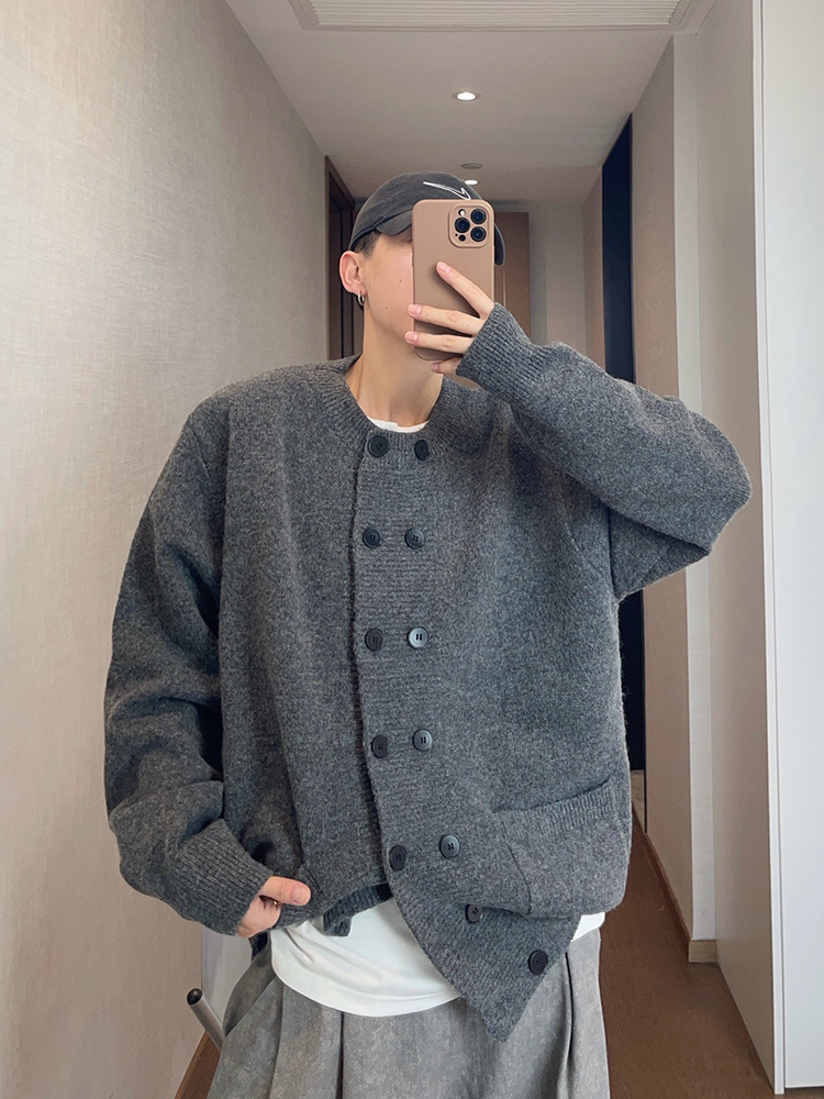 Explosiones transfronterizas de tamaño europeo de doble hebilla cardigan chaqueta suéter de punto hombre viejo viento otoño invierno fábrica al por mayor