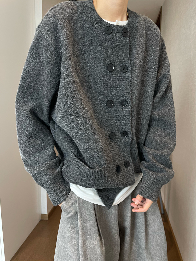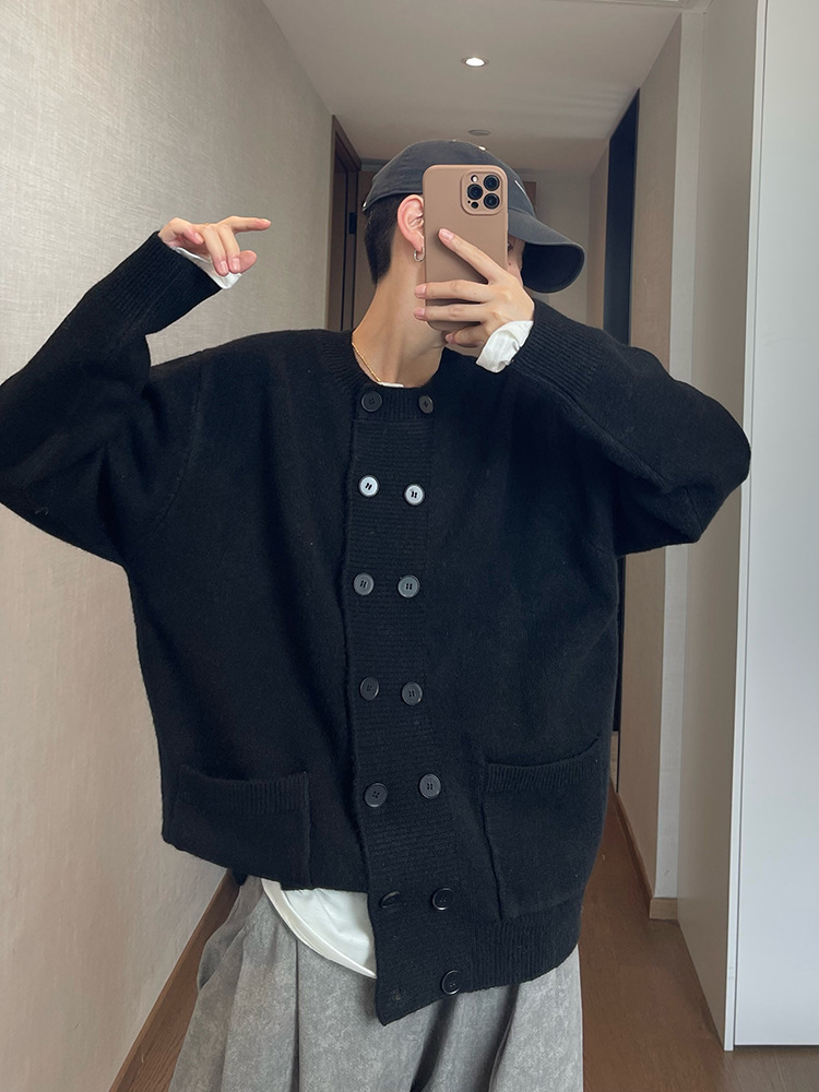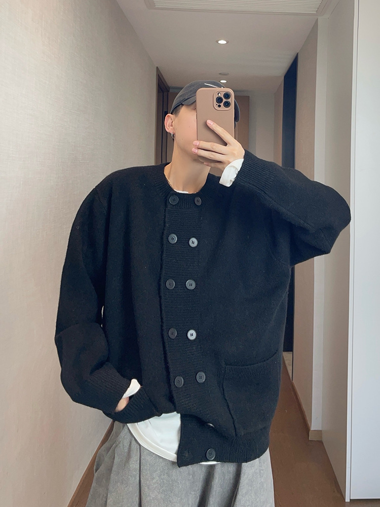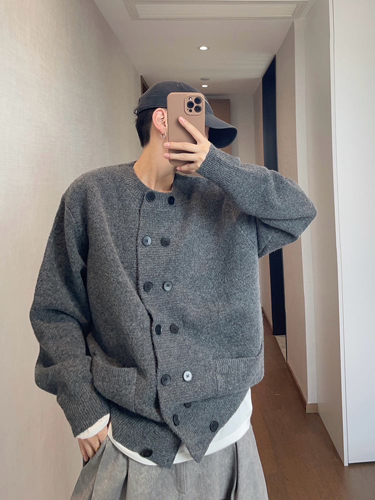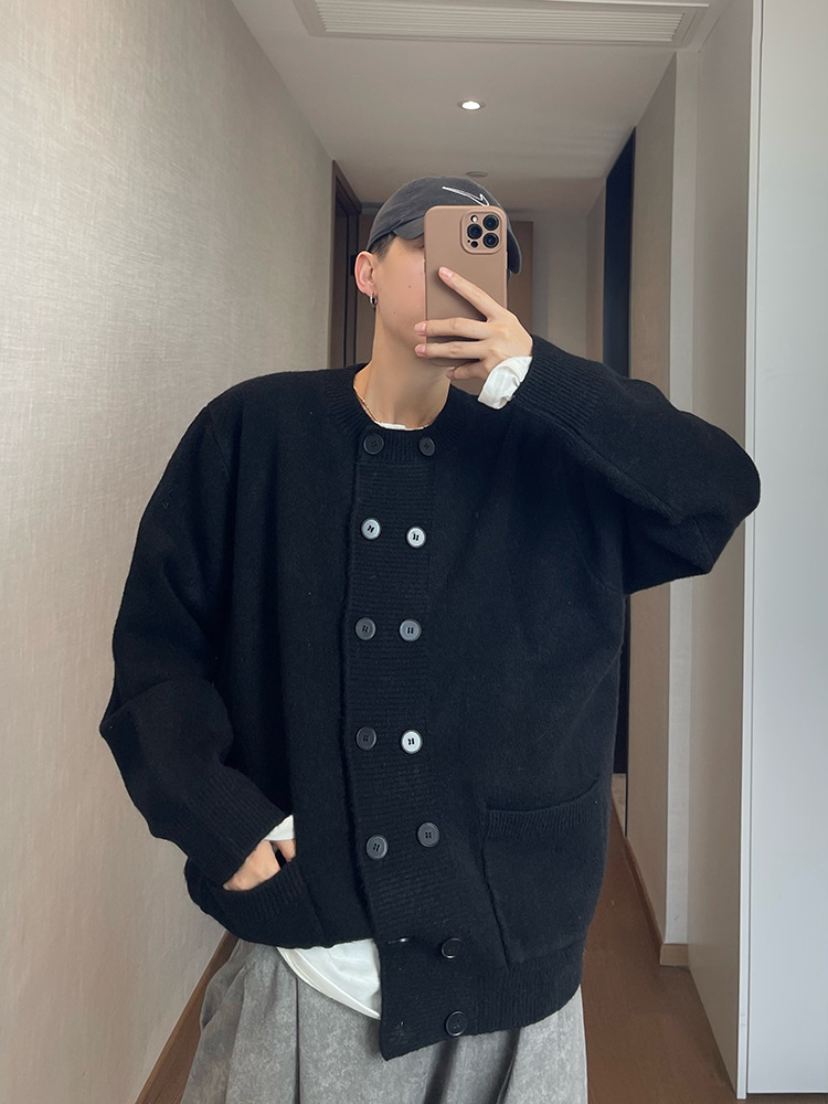 Explosiones transfronterizas de tamaño europeo de doble hebilla cardigan chaqueta suéter de punto hombre viejo viento otoño invierno fábrica al por mayor