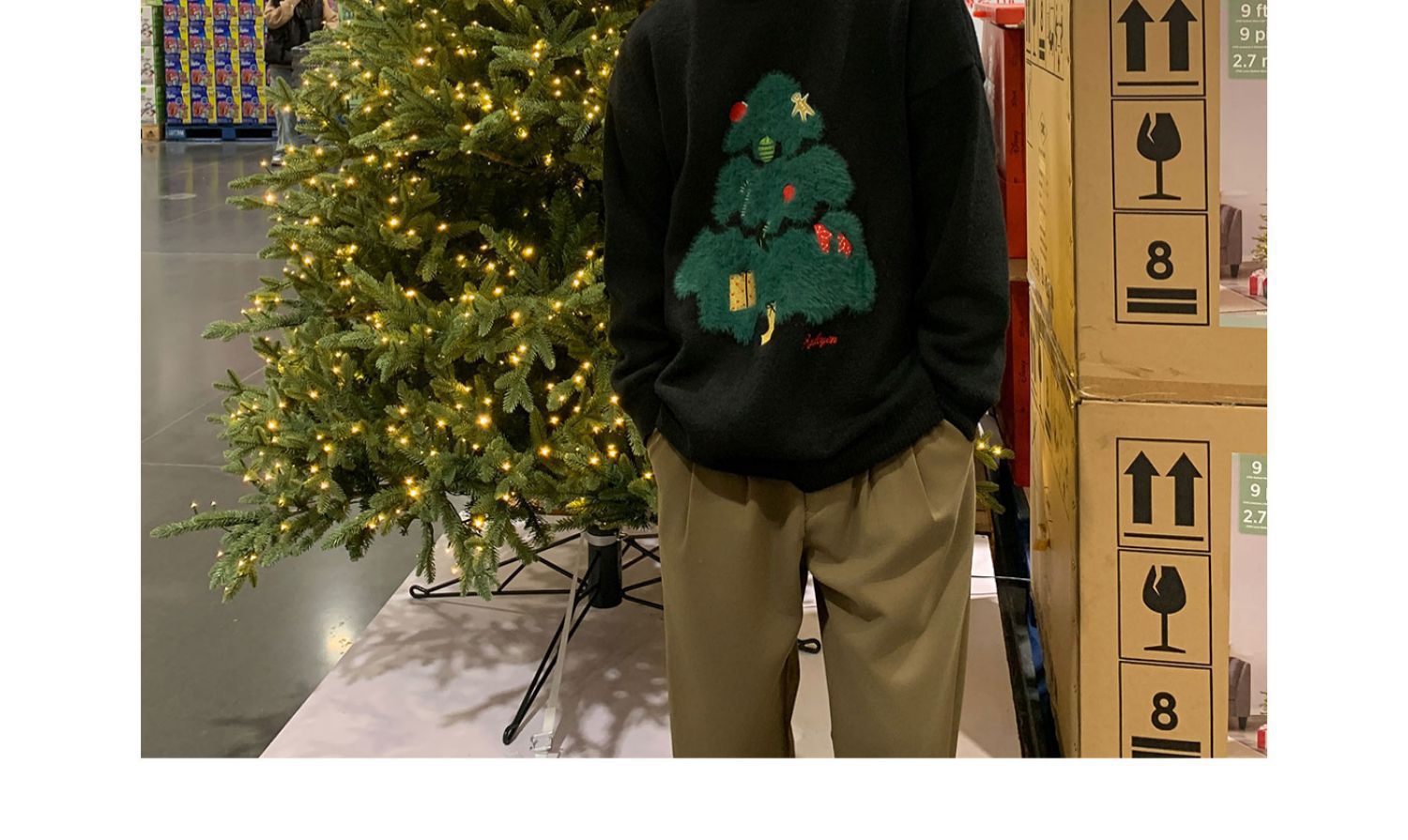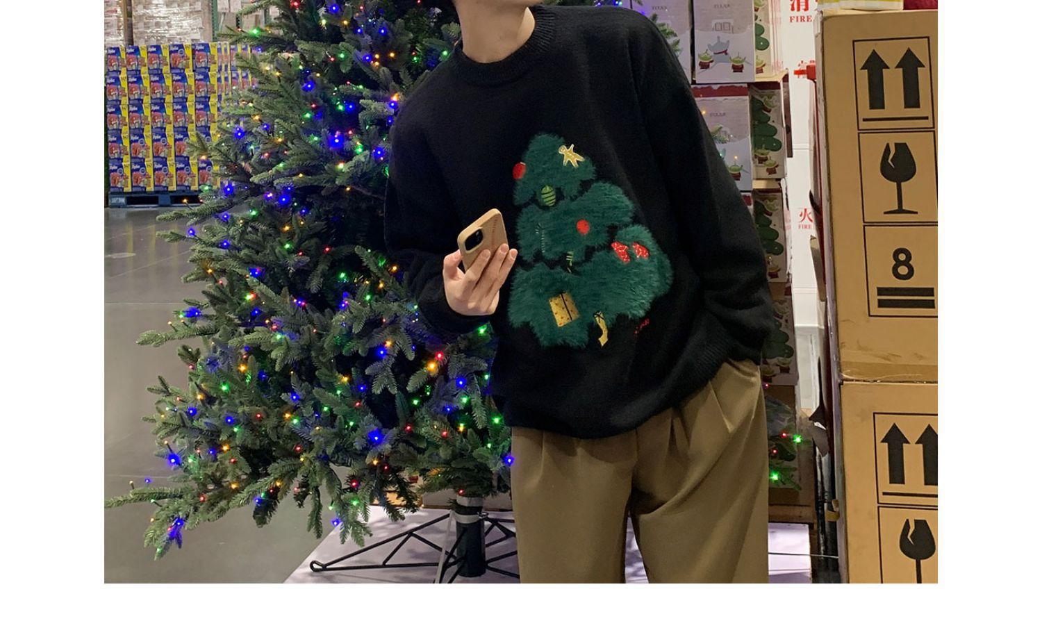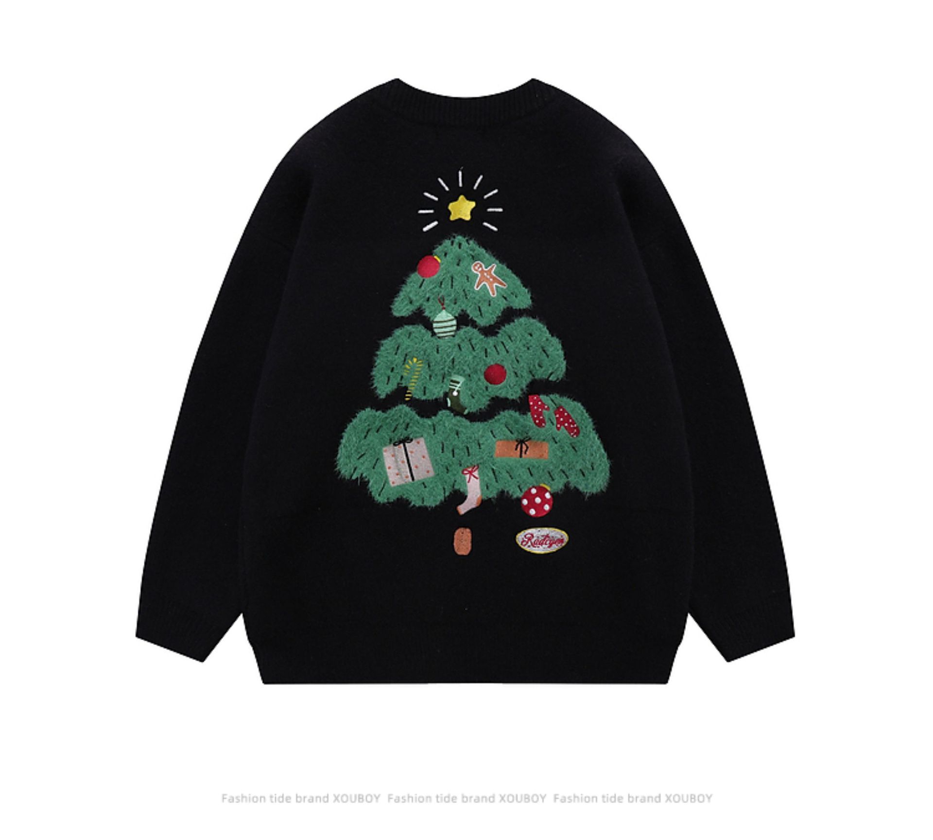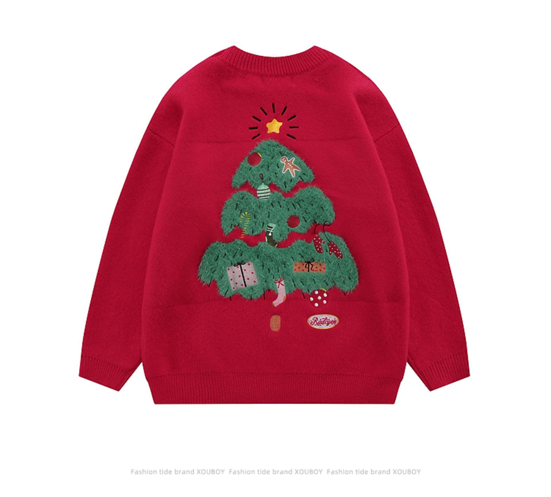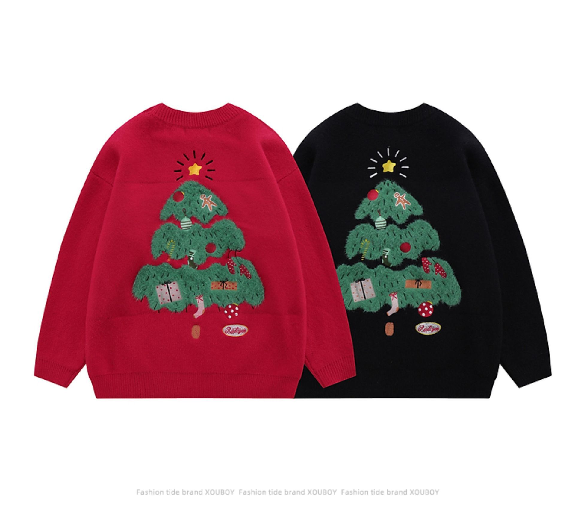 Explosiones transfronterizas de tamaño europeo de tamaño grande árbol de Navidad sensación de atmósfera tridimensional flocado camisetas de punto suéter hombre otoño invierno fábrica mayorista