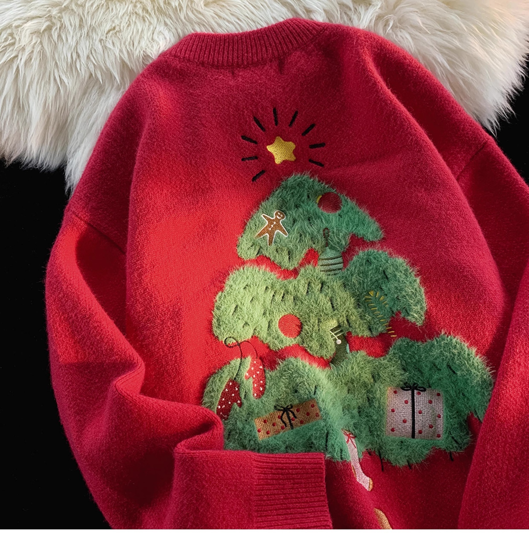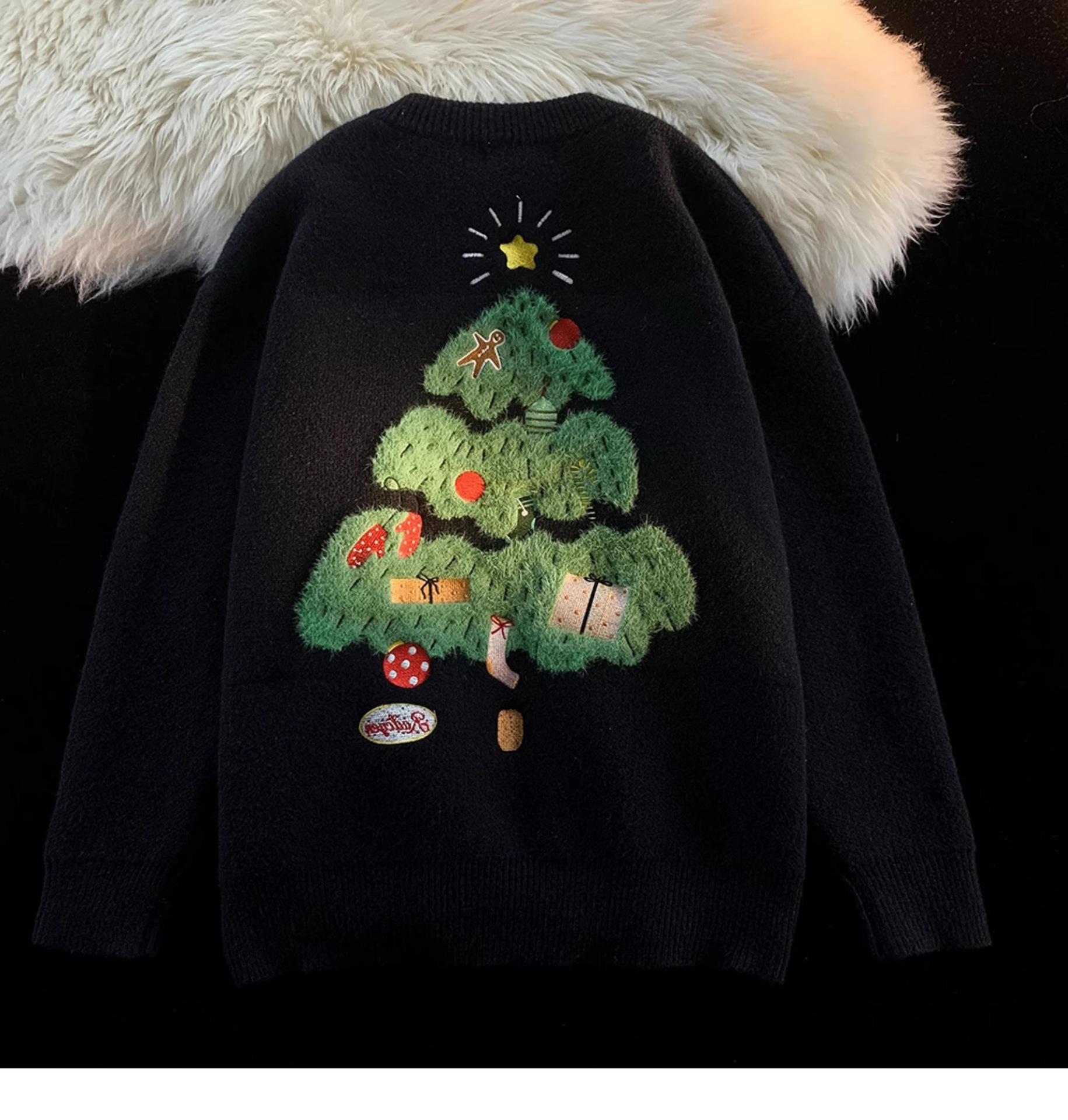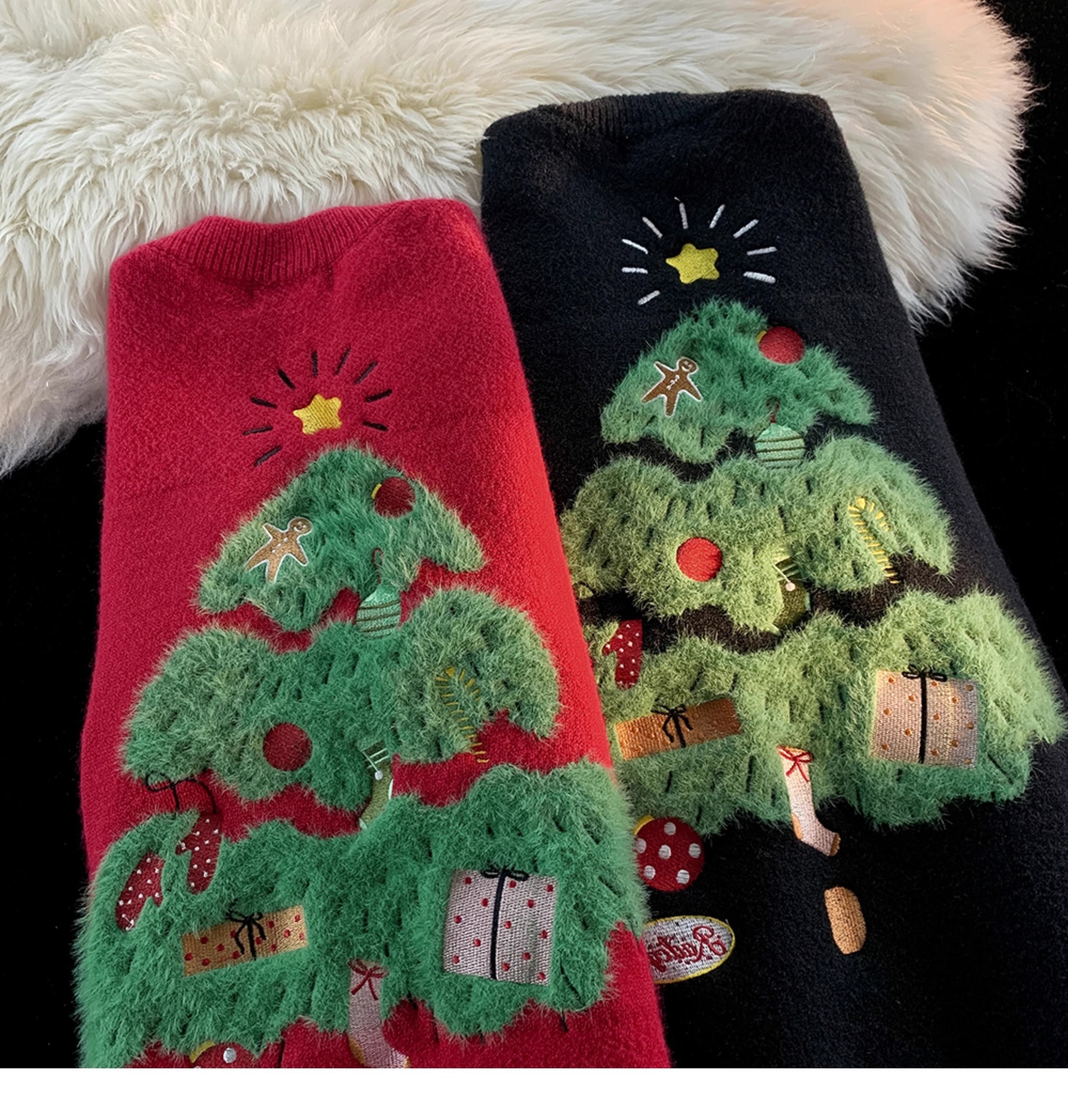 Explosiones transfronterizas de tamaño europeo de tamaño grande árbol de Navidad sensación de atmósfera tridimensional flocado camisetas de punto suéter hombre otoño invierno fábrica mayorista