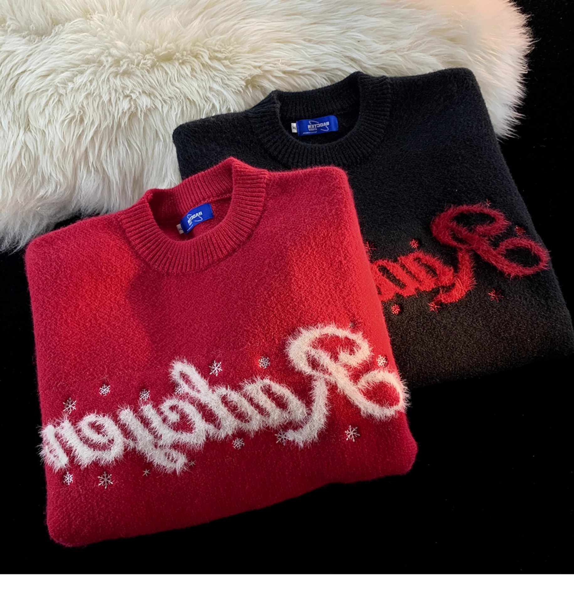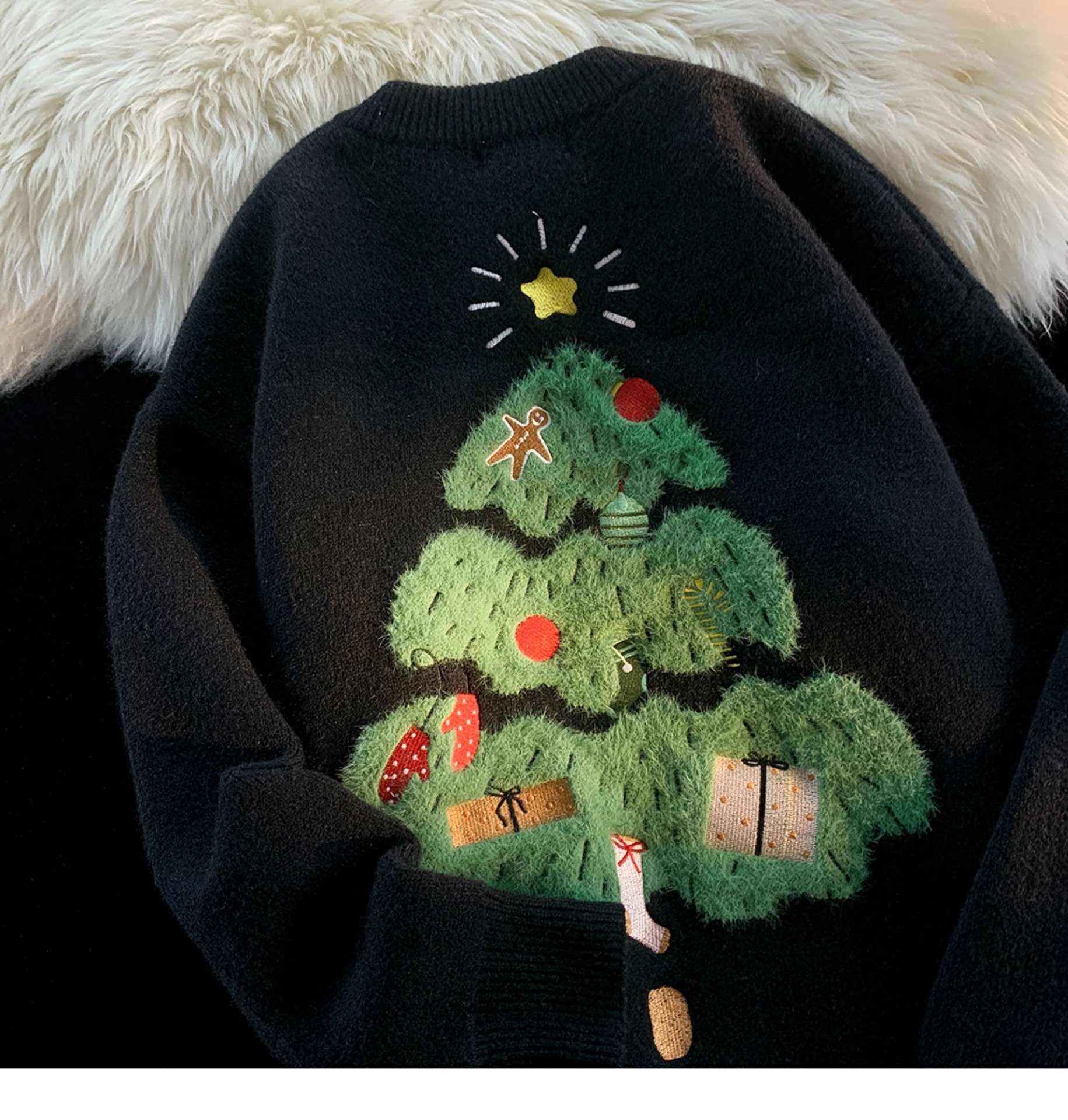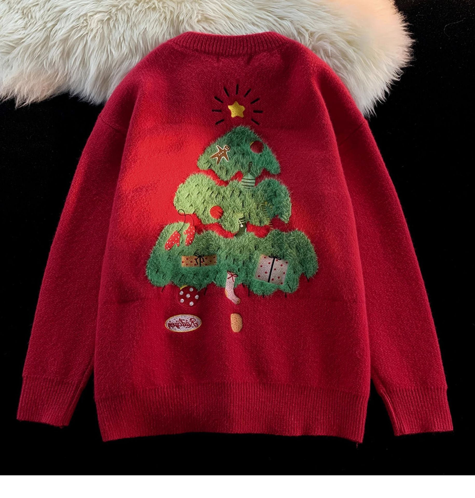 Explosiones transfronterizas de tamaño europeo de tamaño grande árbol de Navidad sensación de atmósfera tridimensional flocado camisetas de punto suéter hombre otoño invierno fábrica mayorista