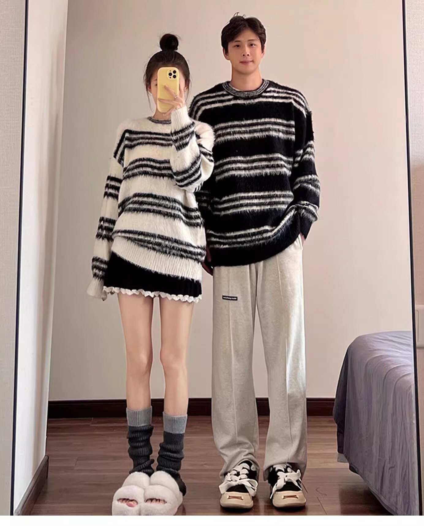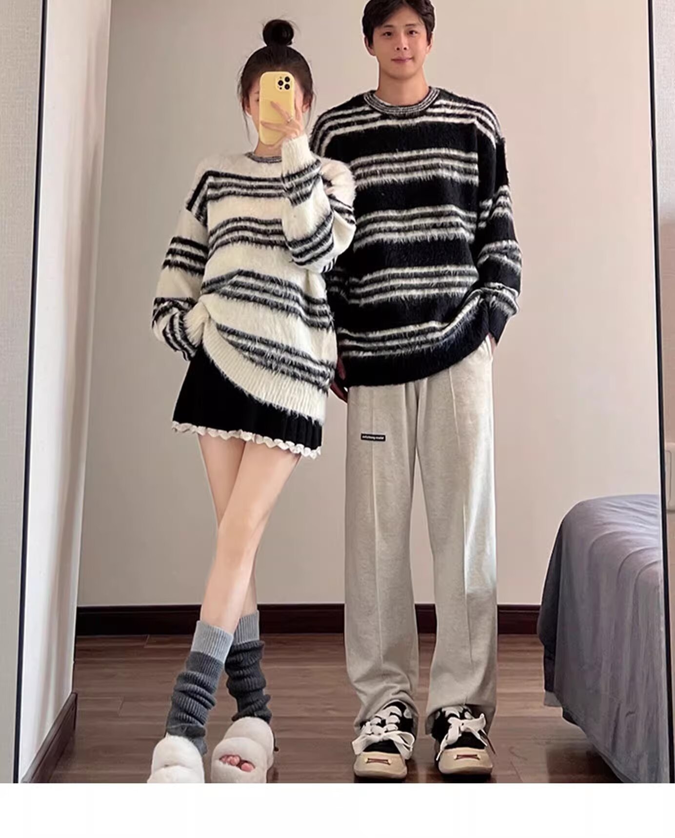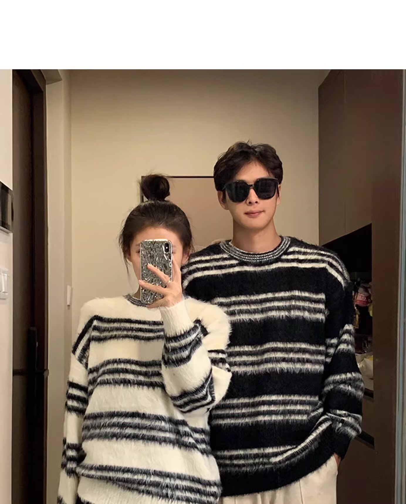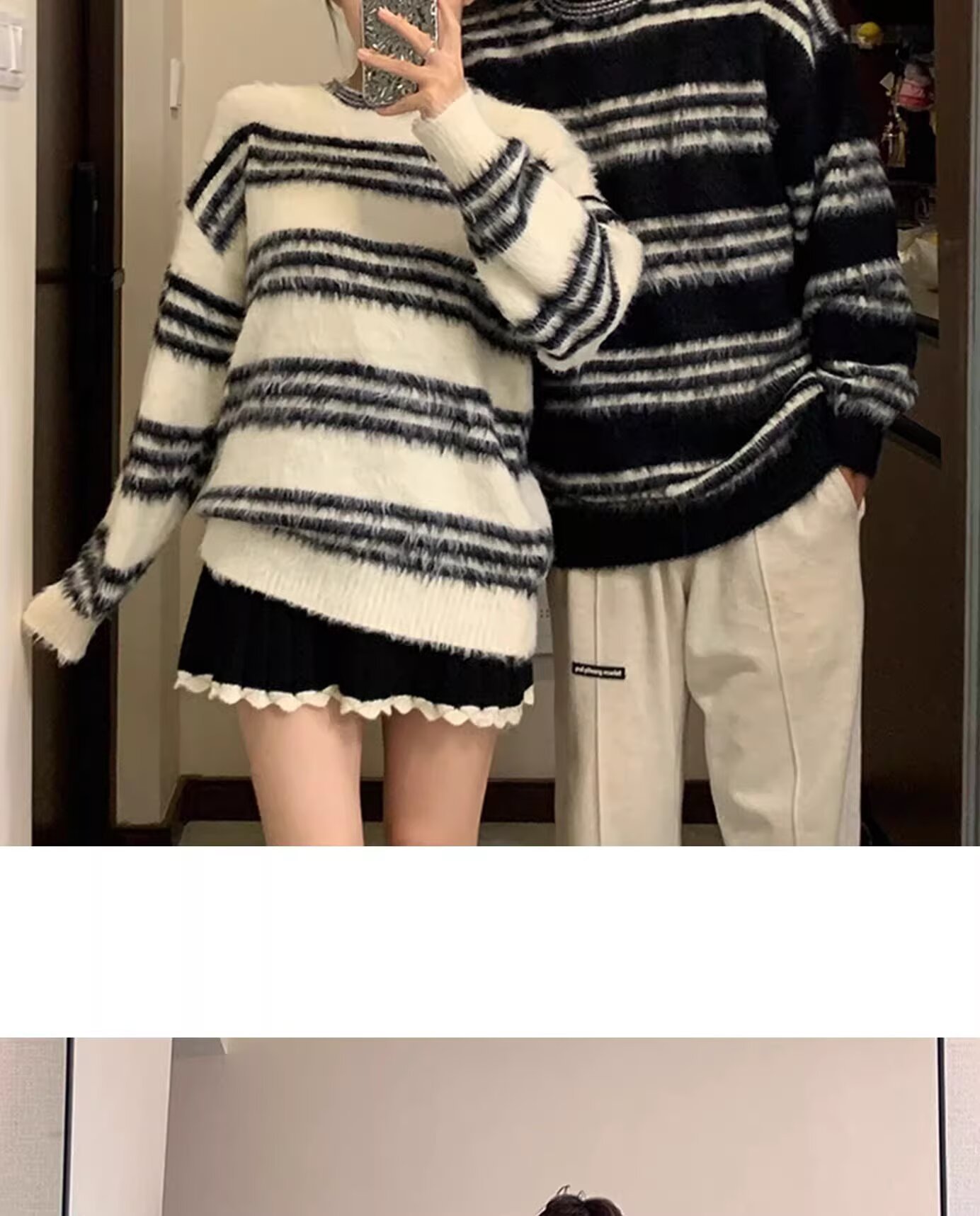 Explosiones transfronterizas de tamaño europeo de tamaño grande jersey peludo a rayas camiseta de punto suéter pareja de hombre otoño invierno fábrica al por mayor