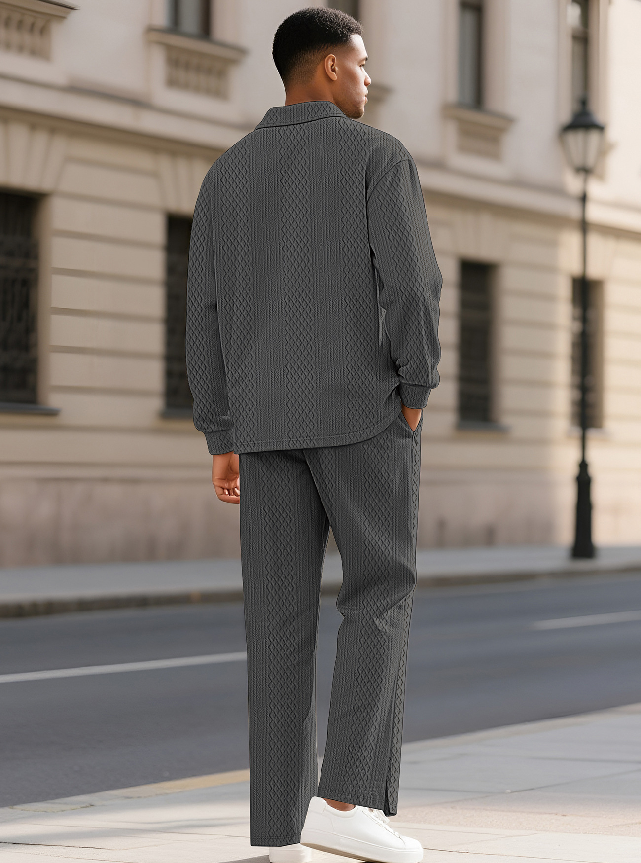 Transfronterizos europeos y americanos temu nuevo color sólido pantalones de polo de mangas largas comercio exterior amazon hombre suelto traje casual hombre