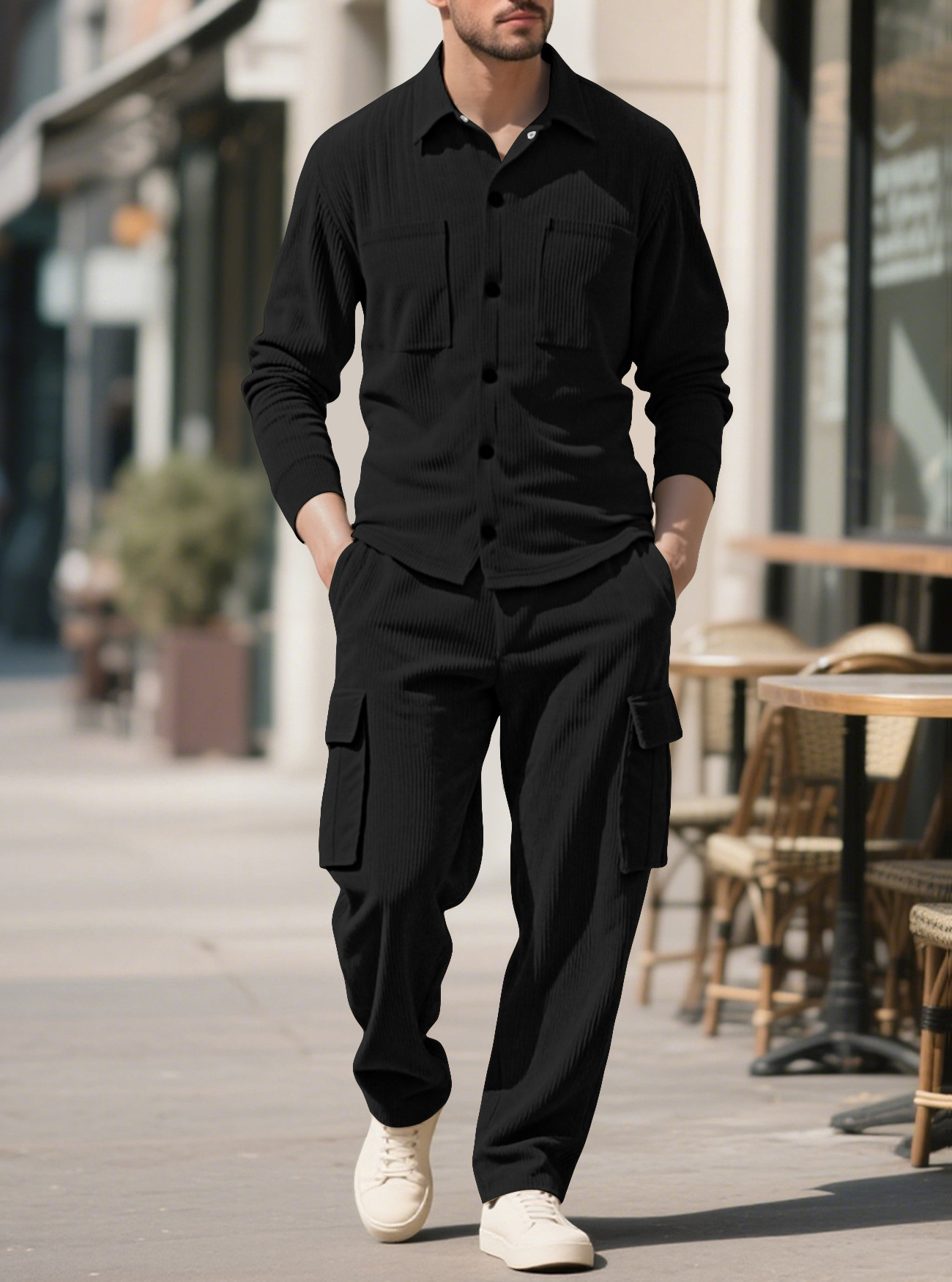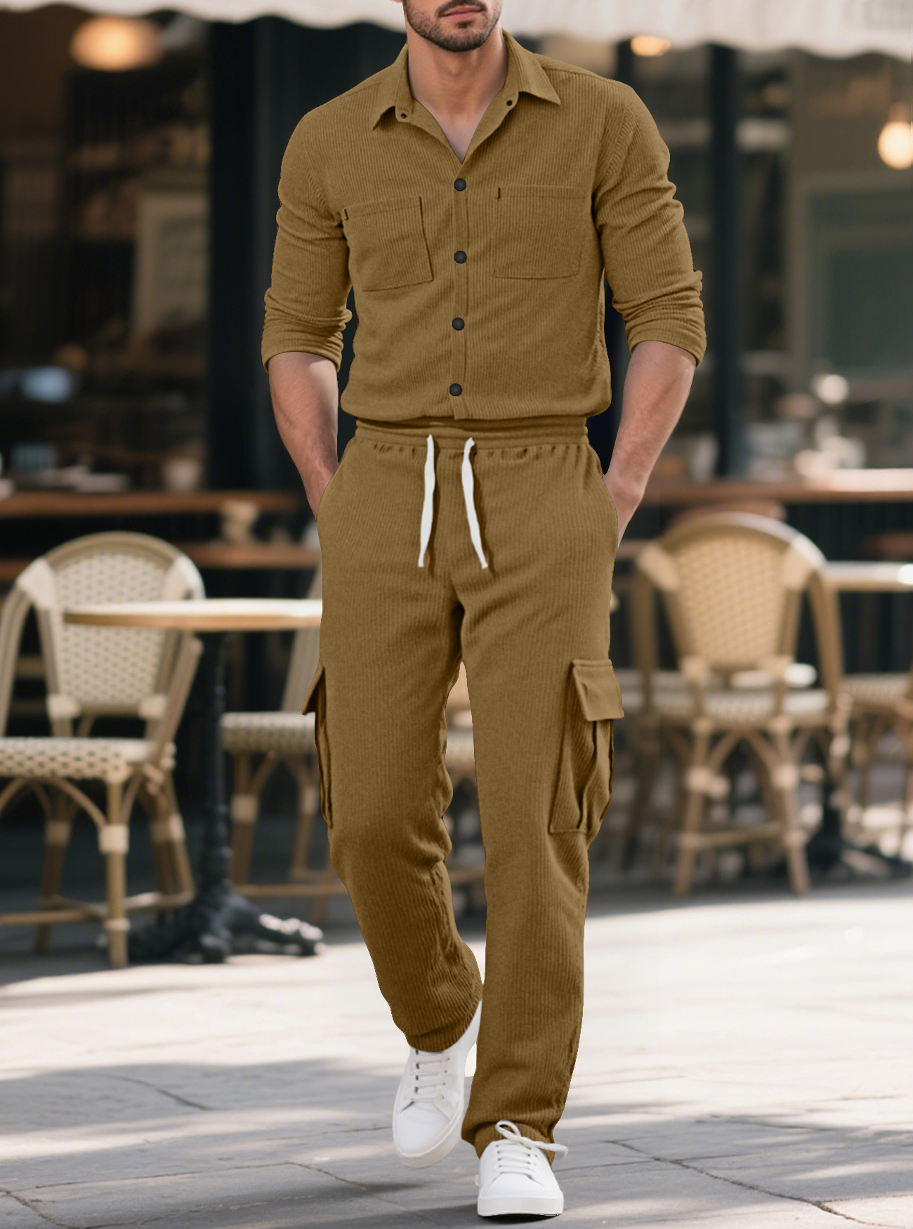Transfronterizo Amazon nueva camisa de mangas largas para viajeros de Detroit, pantalones largos con mecha de lámpara, chaquetas casuales para hombres
