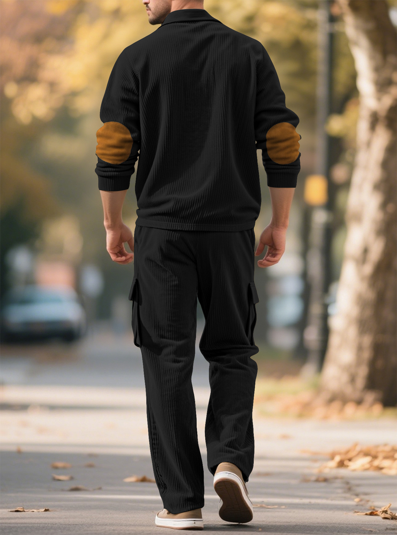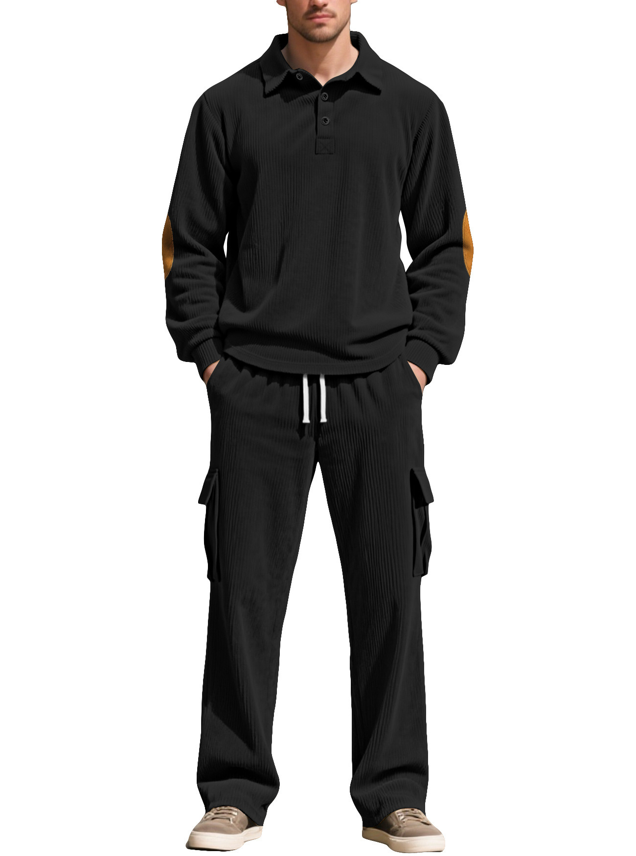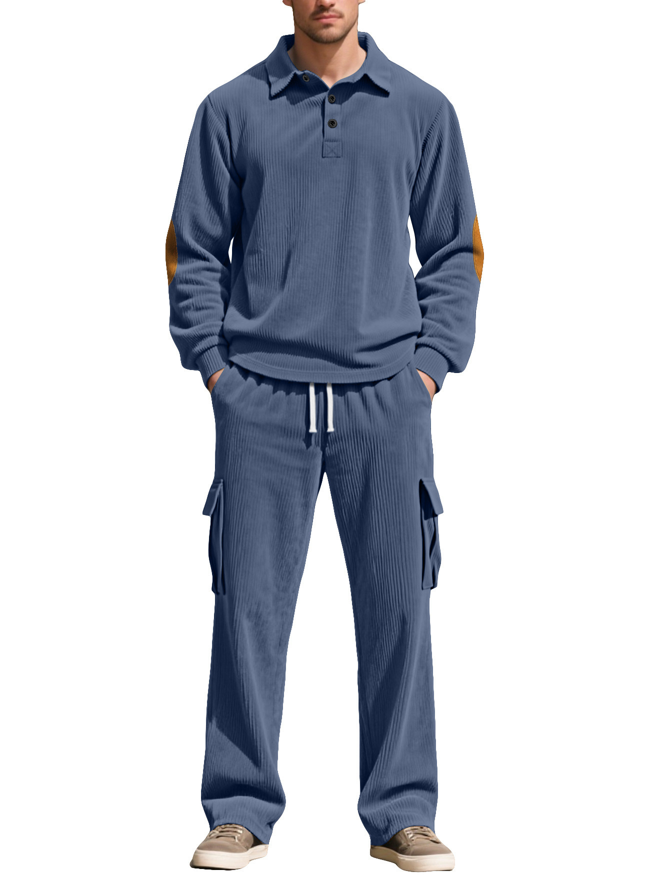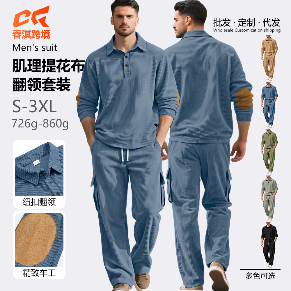 Comercio exterior Amazon transfronterizo Europa y Estados Unidos deportes casuales con solapa de manga larga dos piezas para hombres sueltos set de herramientas de color sólido