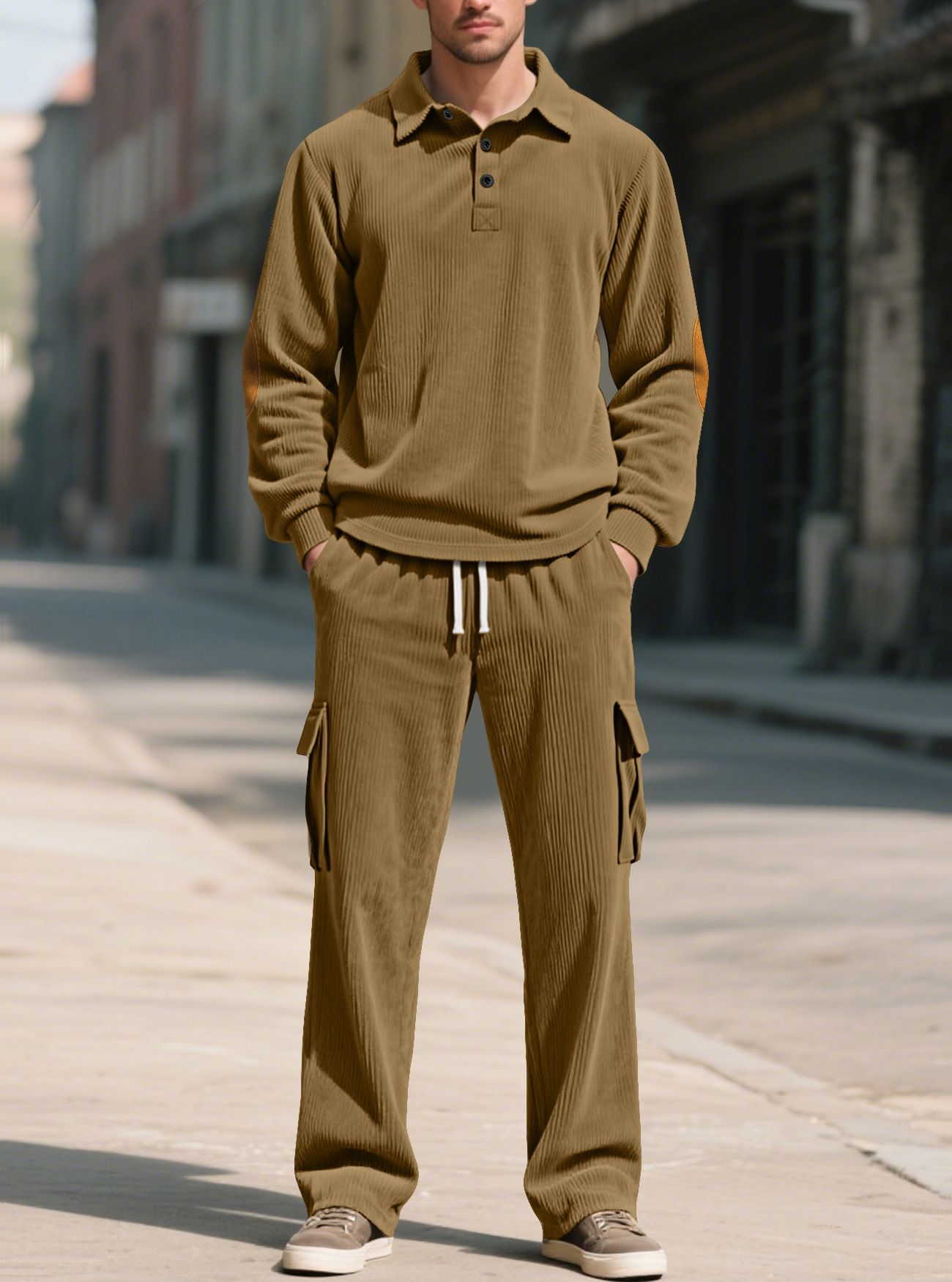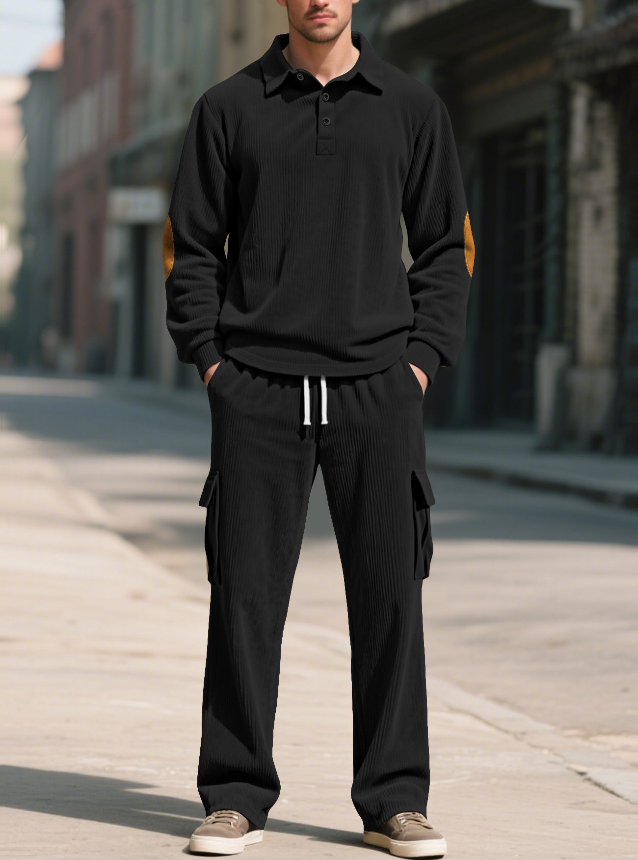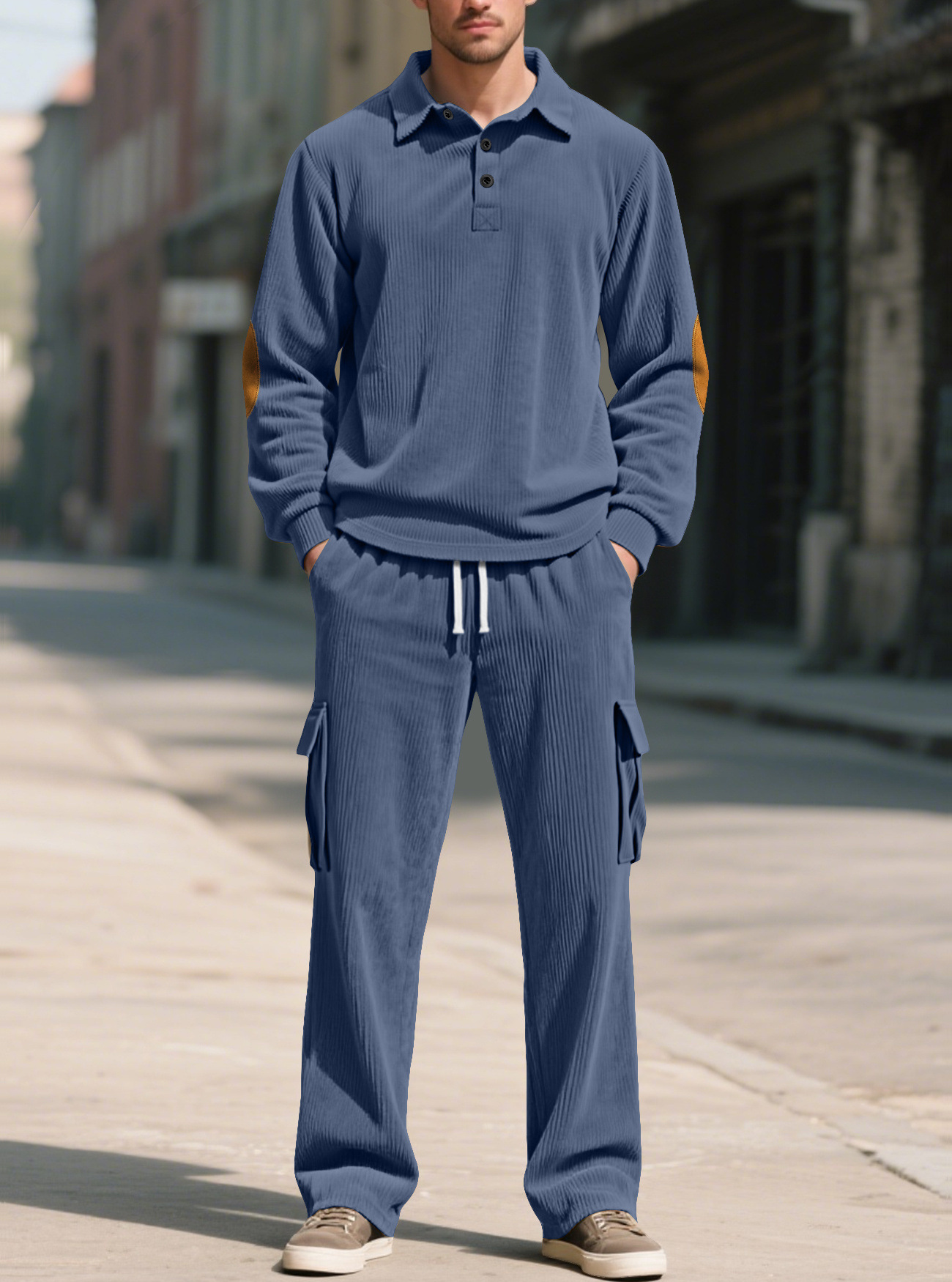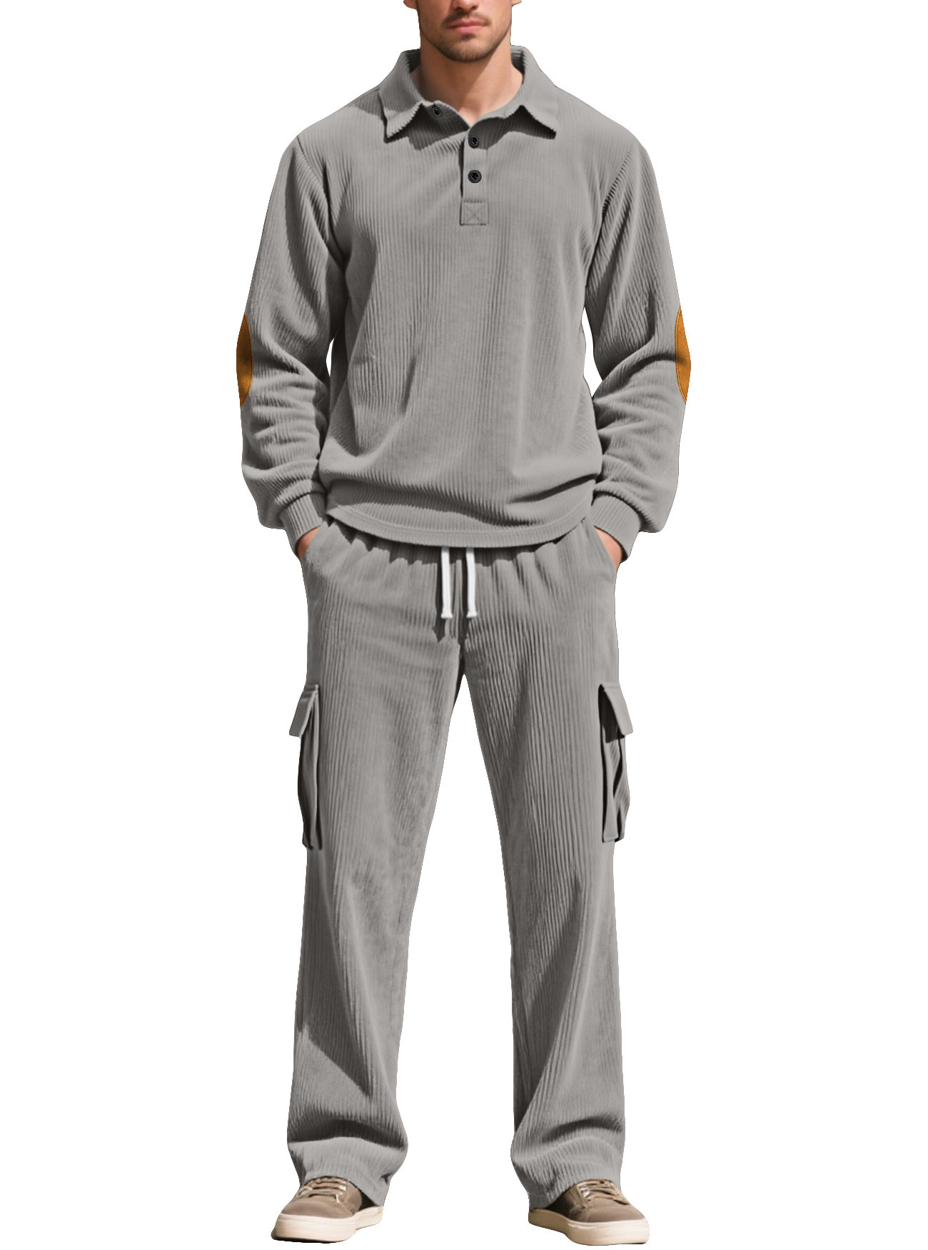 Comercio exterior Amazon transfronterizo Europa y Estados Unidos deportes casuales con solapa de manga larga dos piezas para hombres sueltos set de herramientas de color sólido